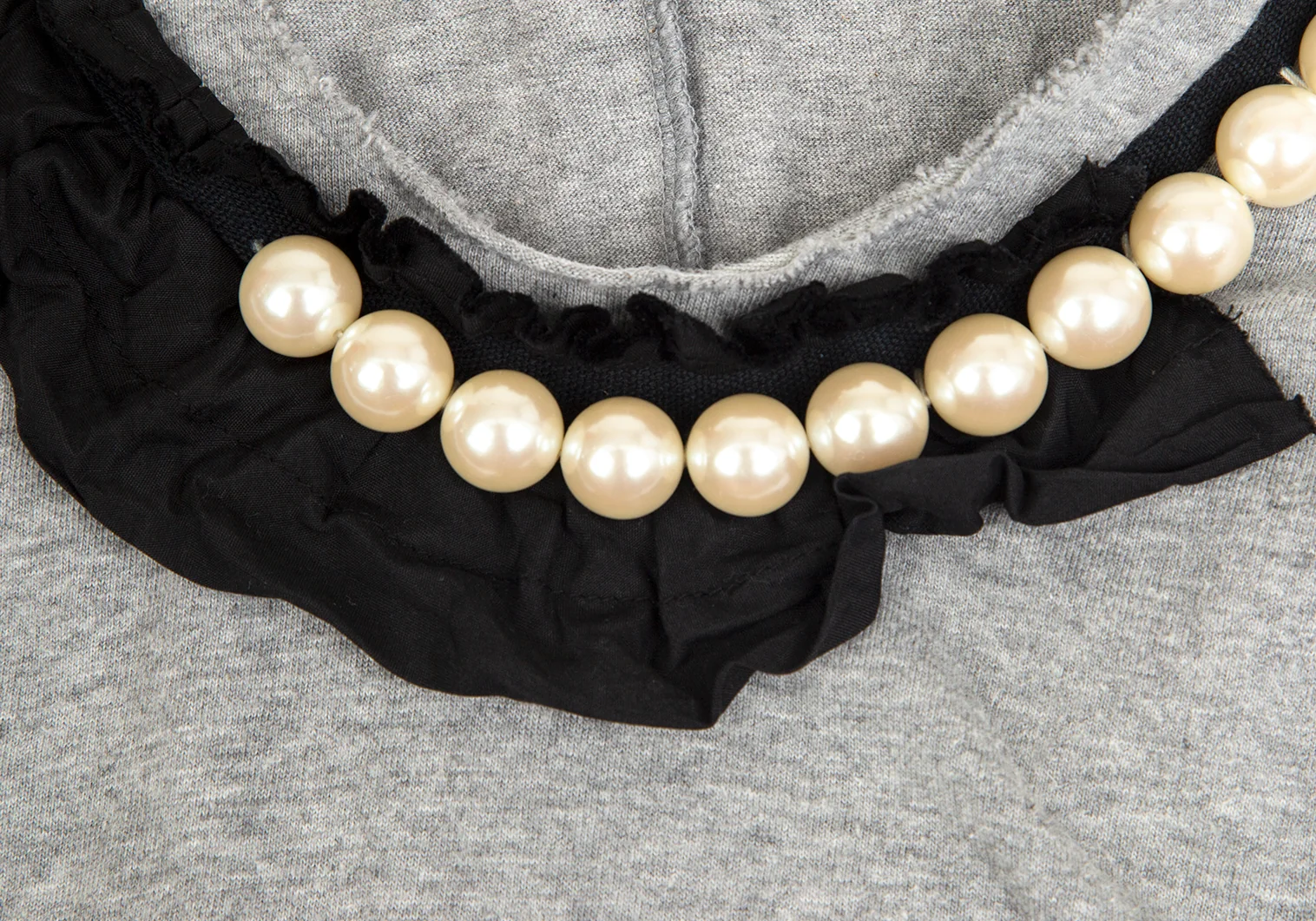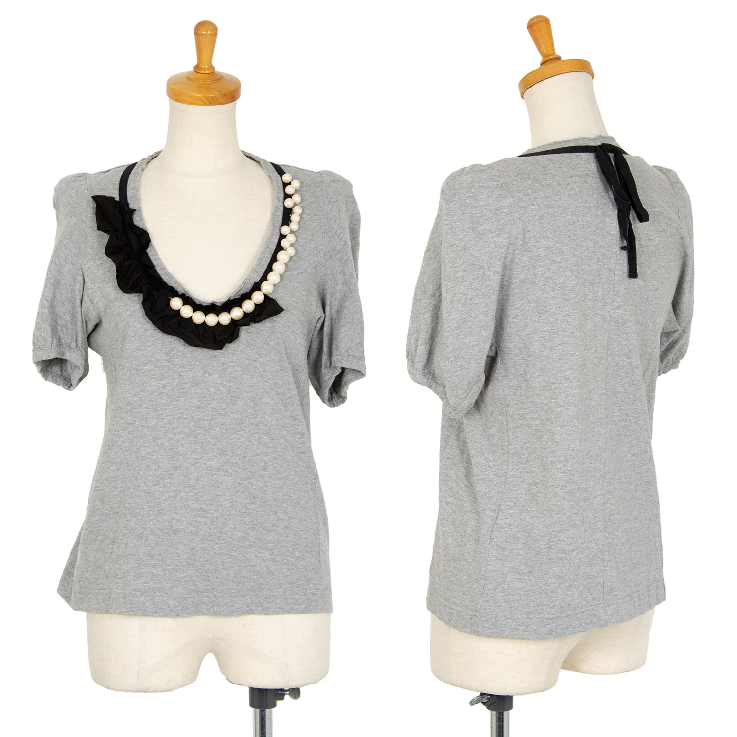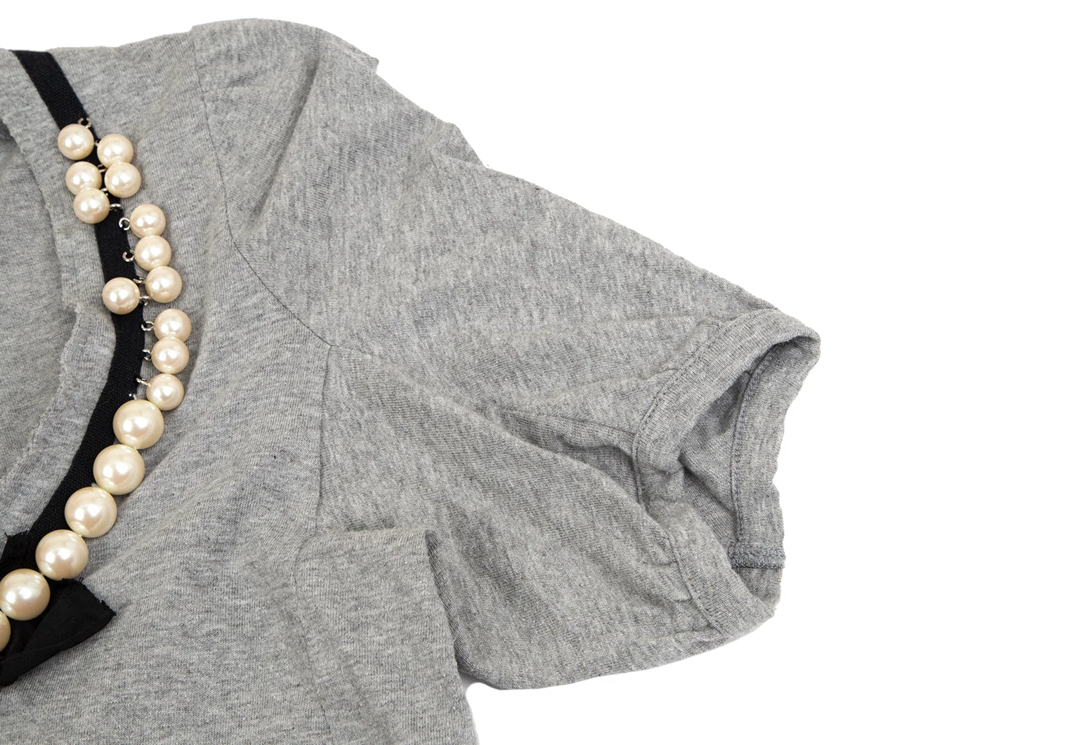 トリココムデギャルソンtricot COMME des GARCONS パールネック装飾UネックTシャツ グレーM位