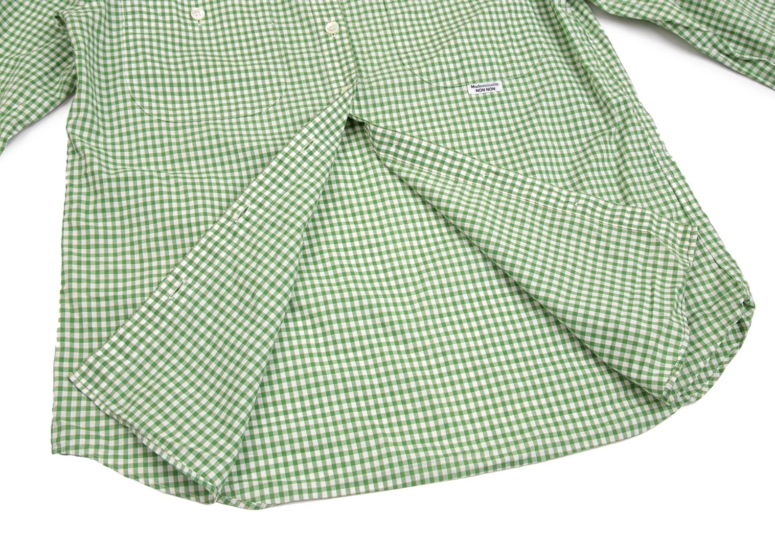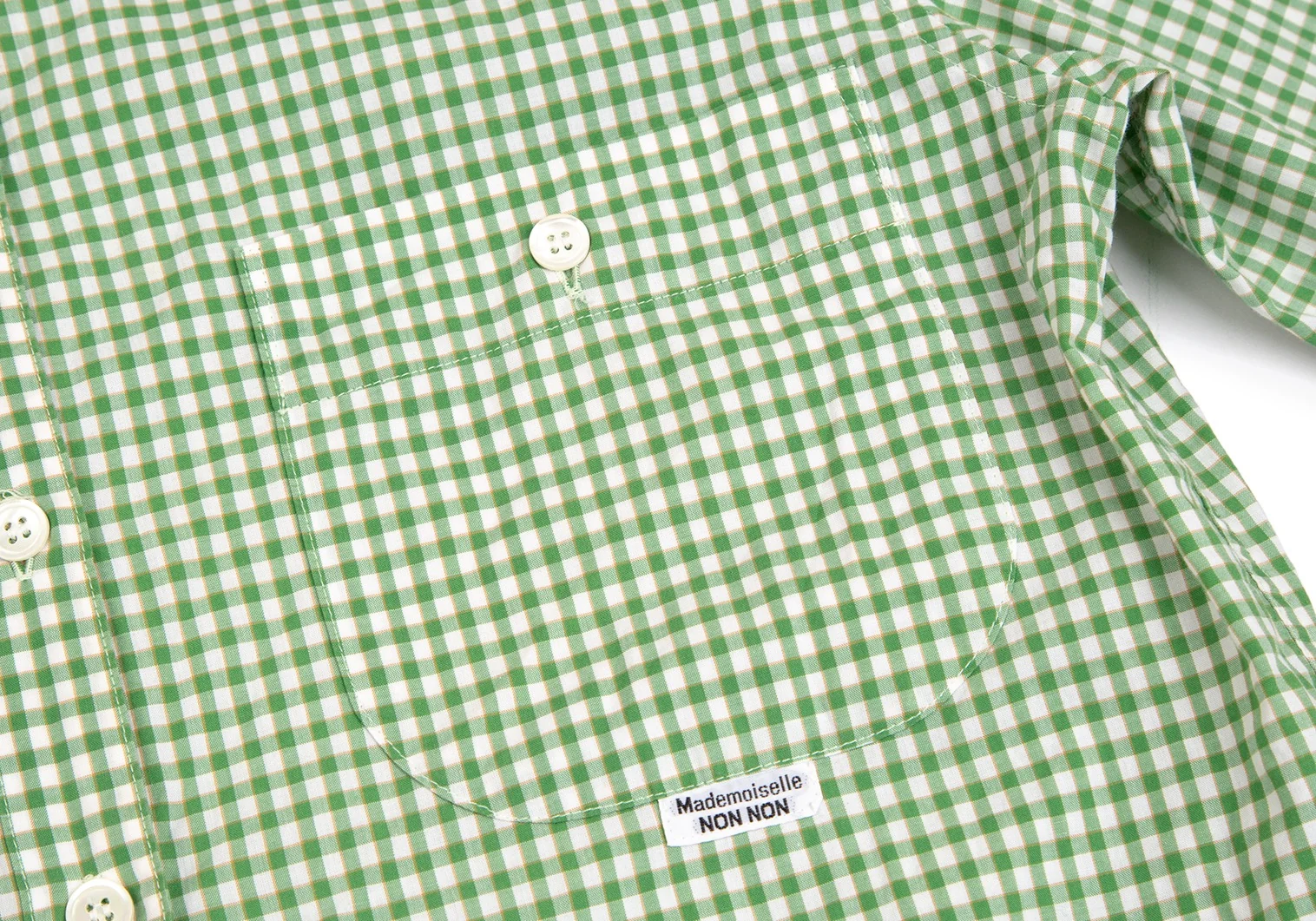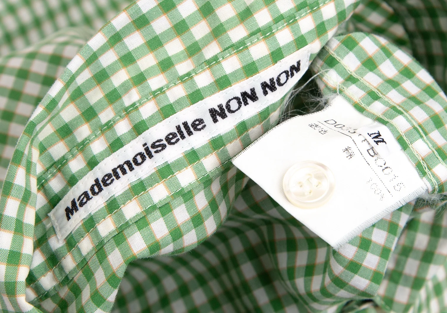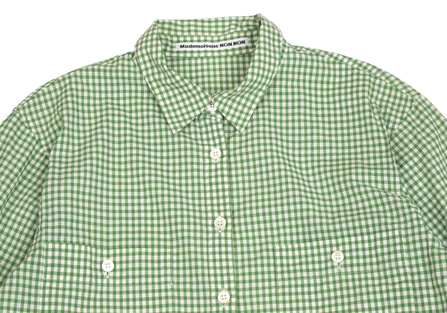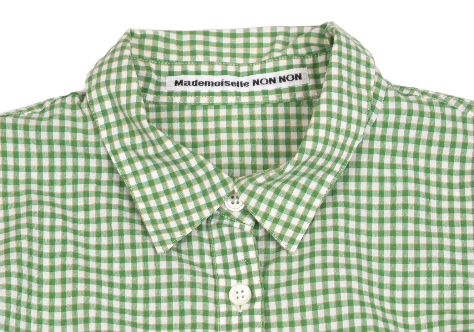 マドモアゼルノンノンMademoiselle NON NONチェックダブルポケット長袖シャツ 白緑M