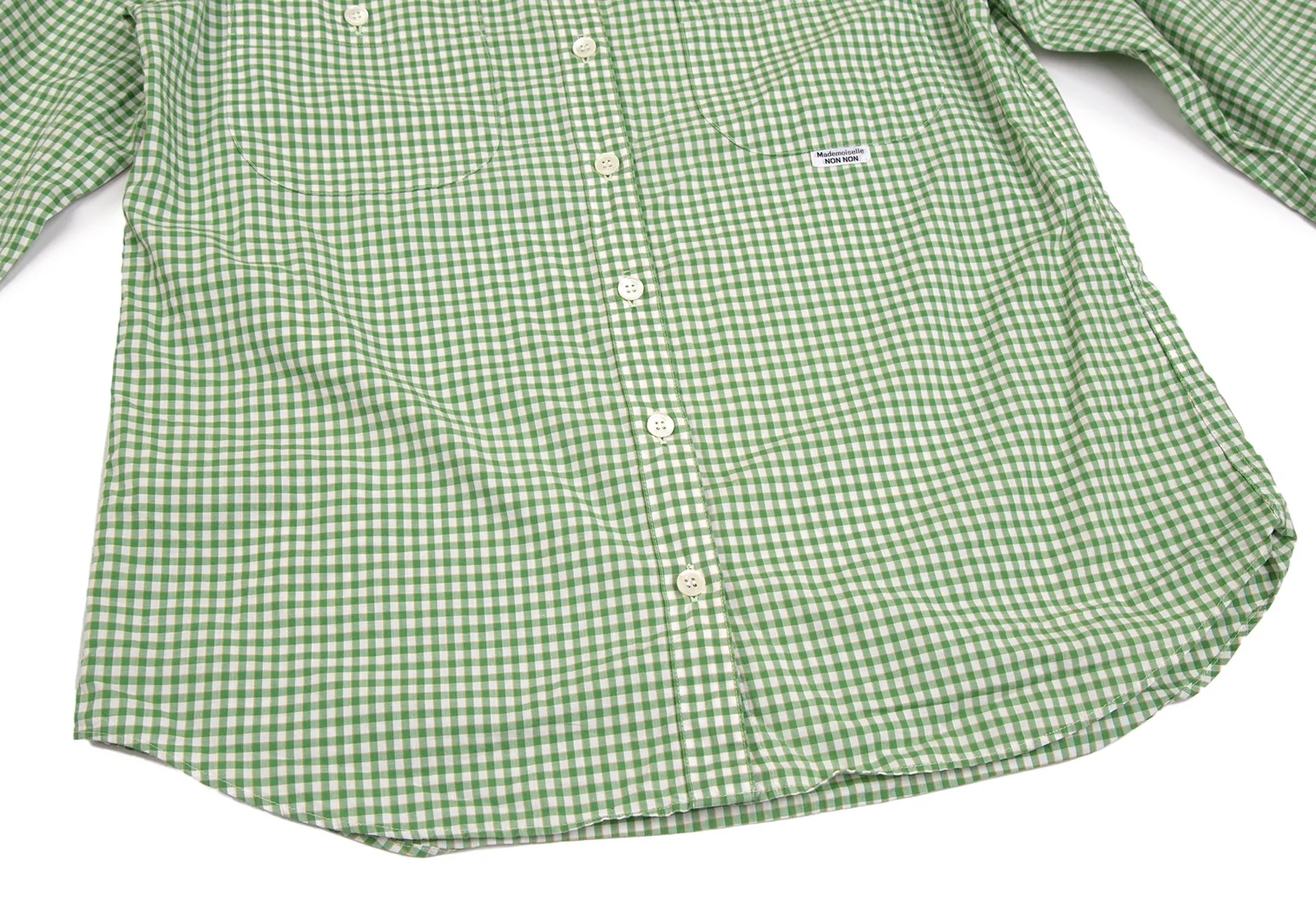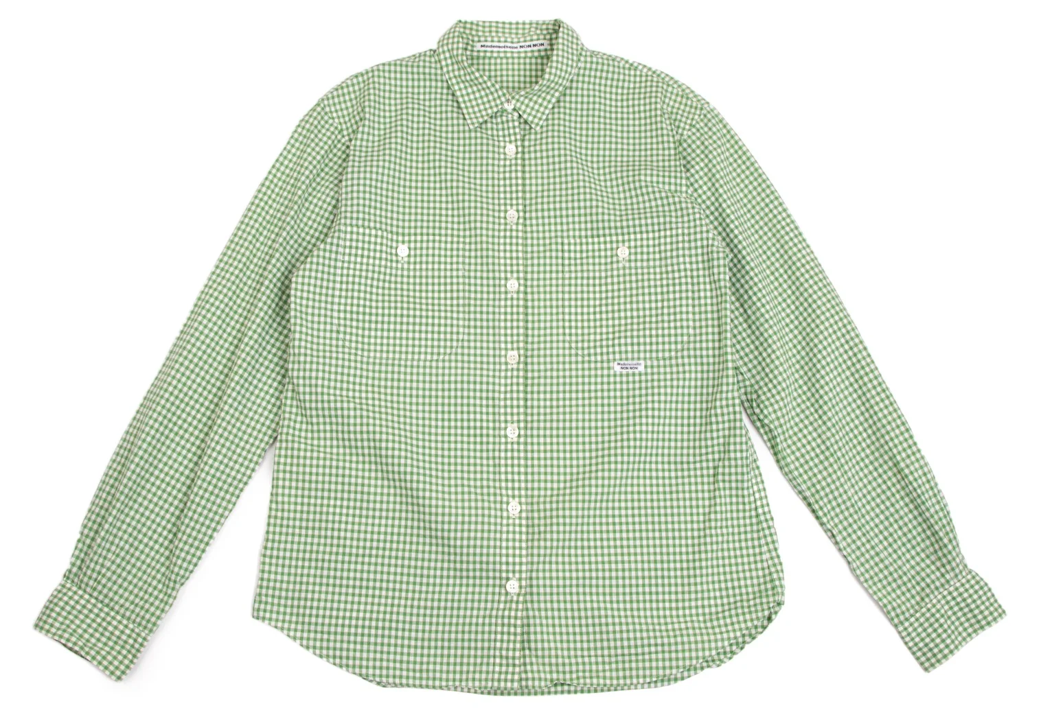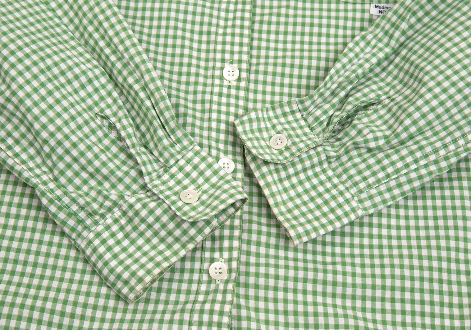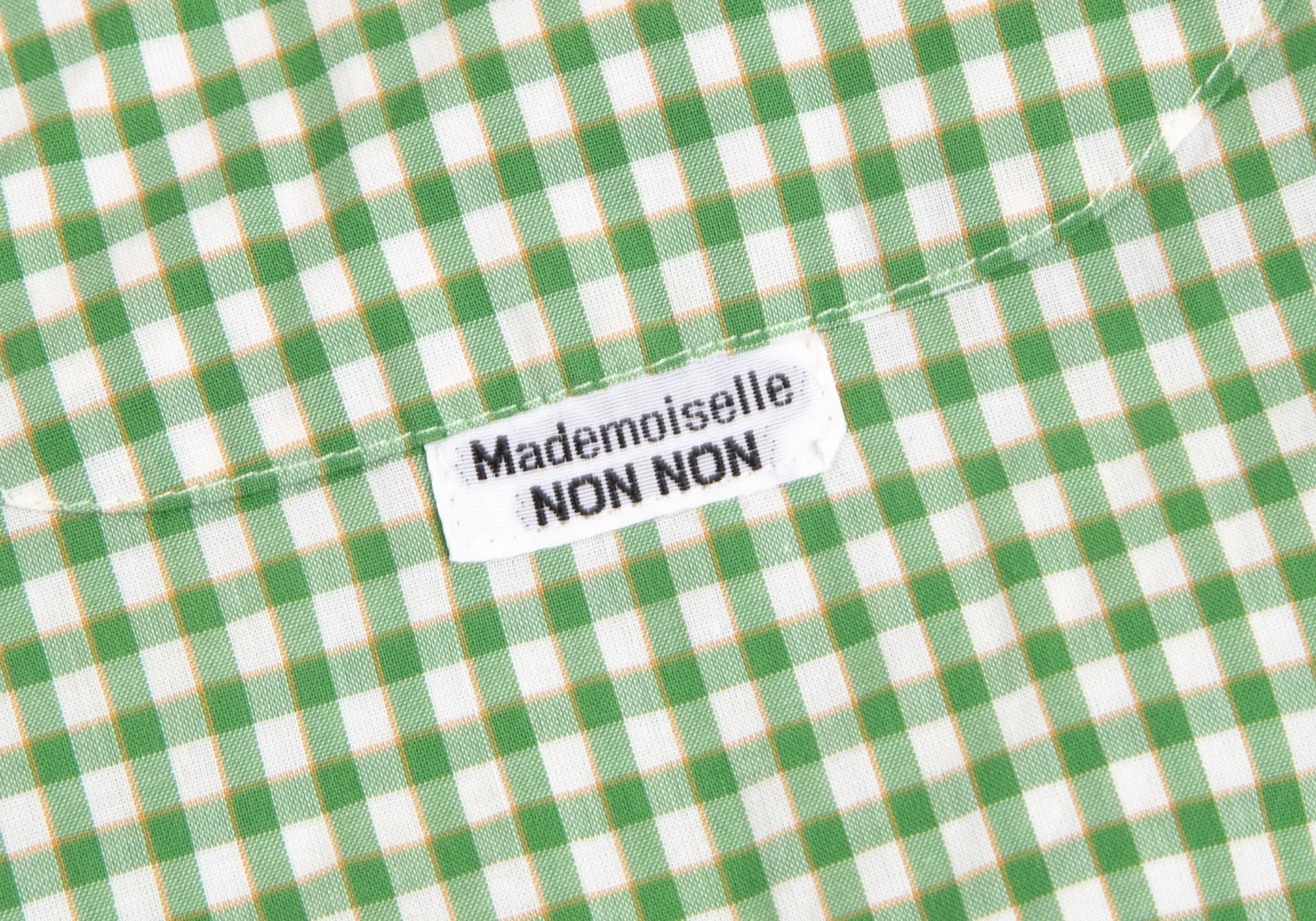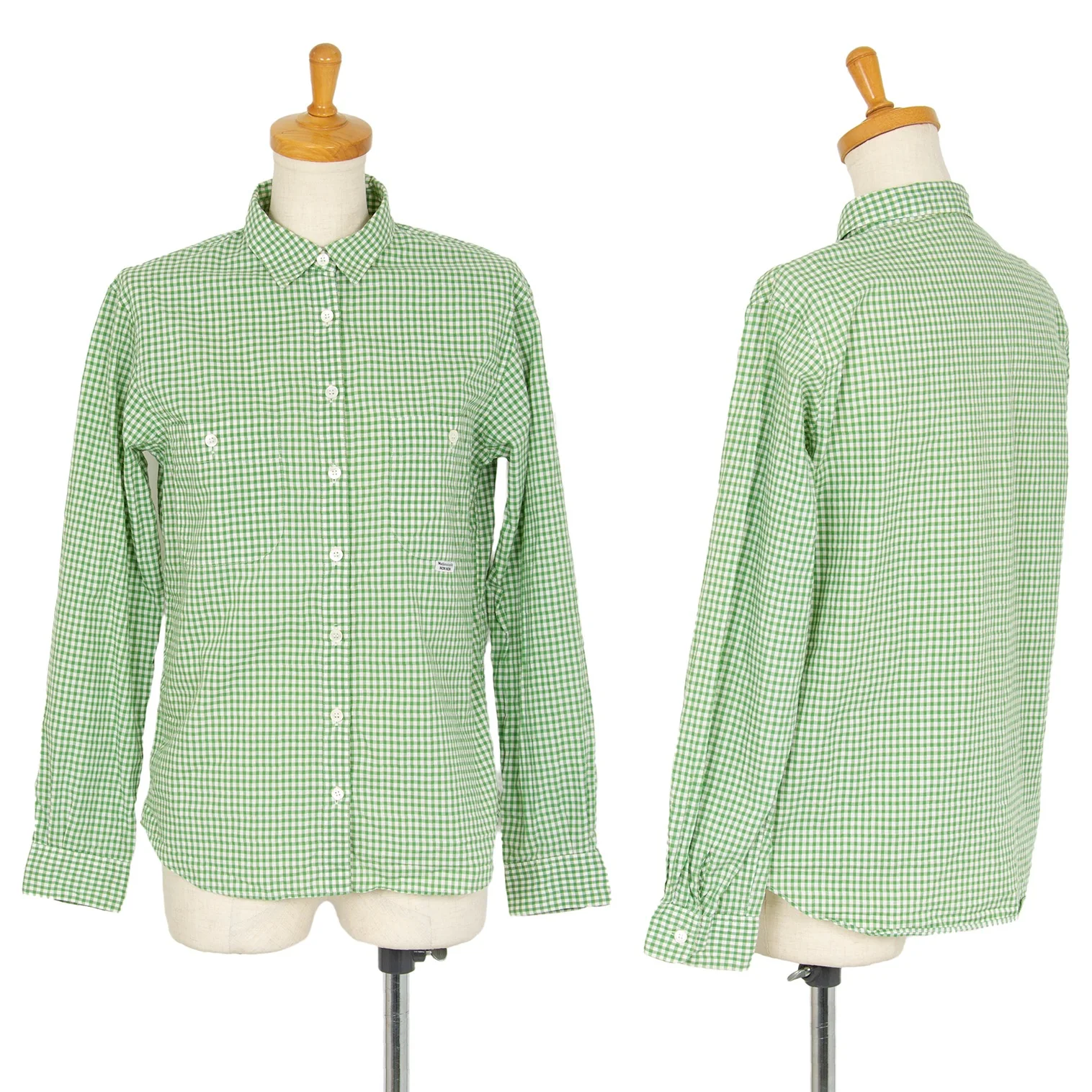 マドモアゼルノンノンMademoiselle NON NONチェックダブルポケット長袖シャツ 白緑M