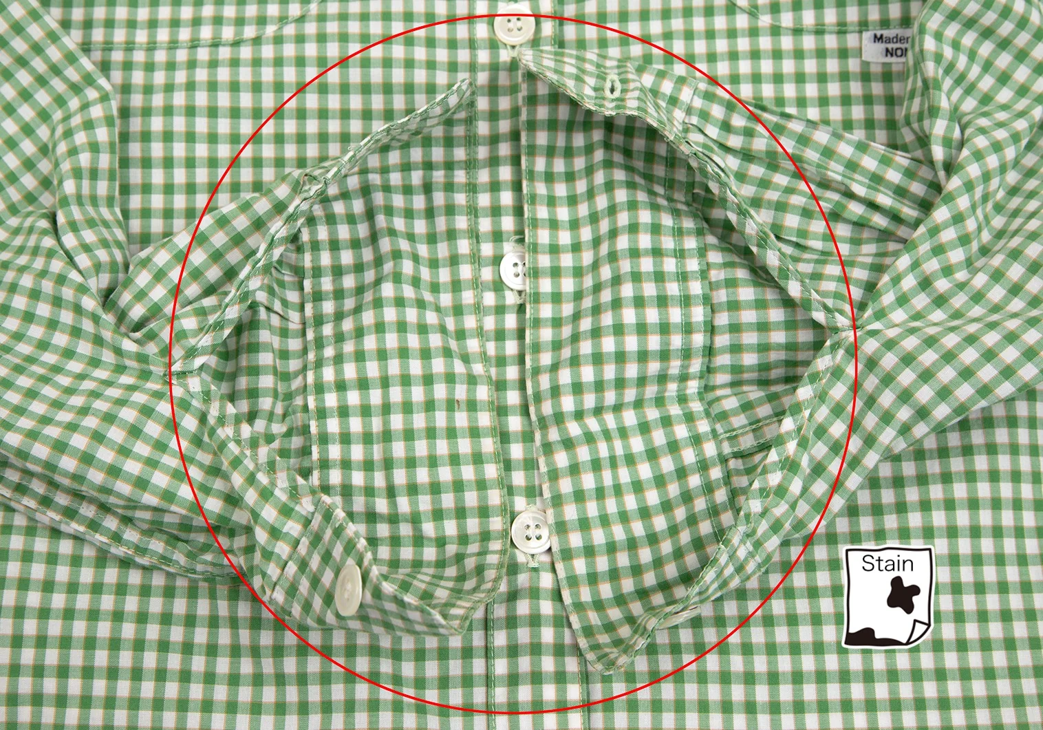 首裏・左袖に薄シミ、袖裏にシミ・汚れがあります(画像参照)。その他目立ったシミ、汚れ、ほつれ等なくいい状態です。クリーニング済み