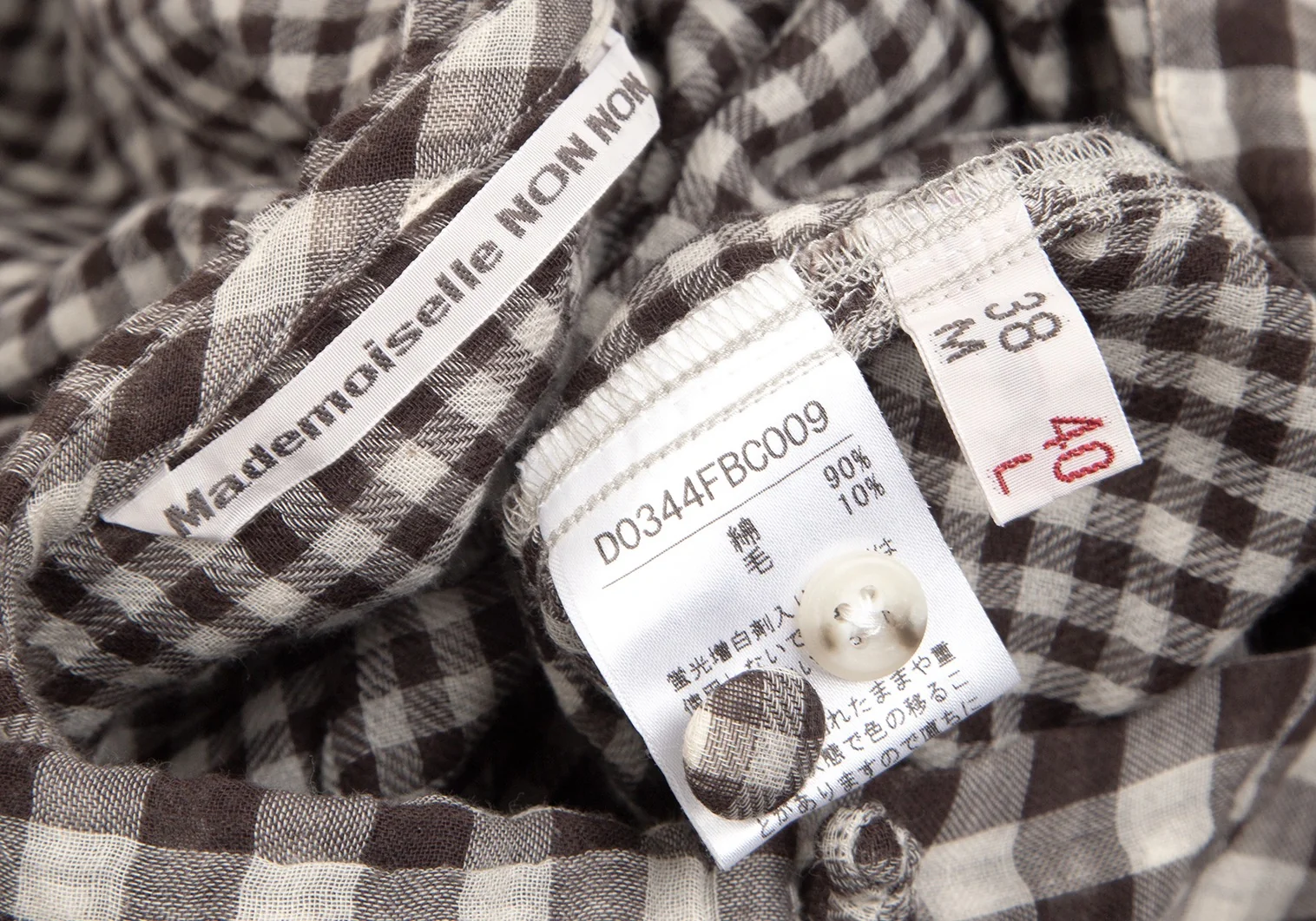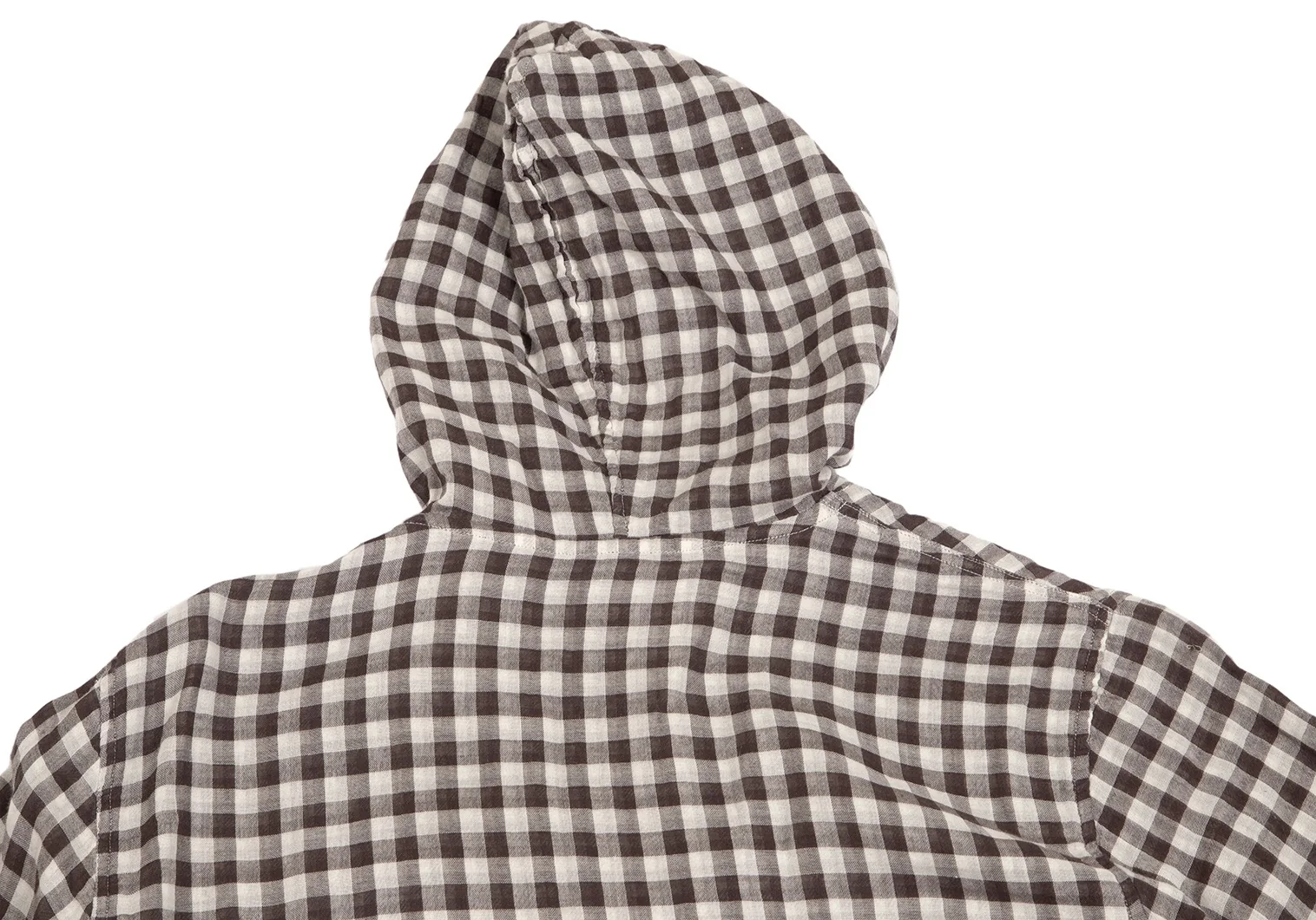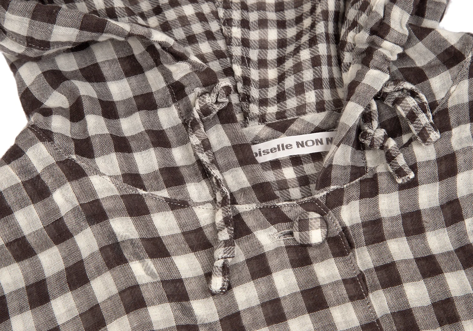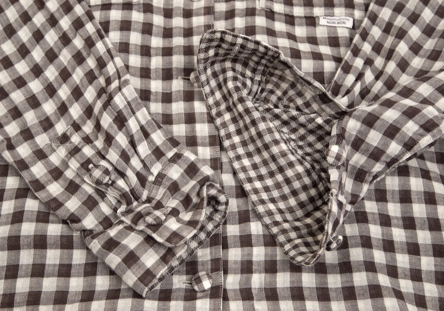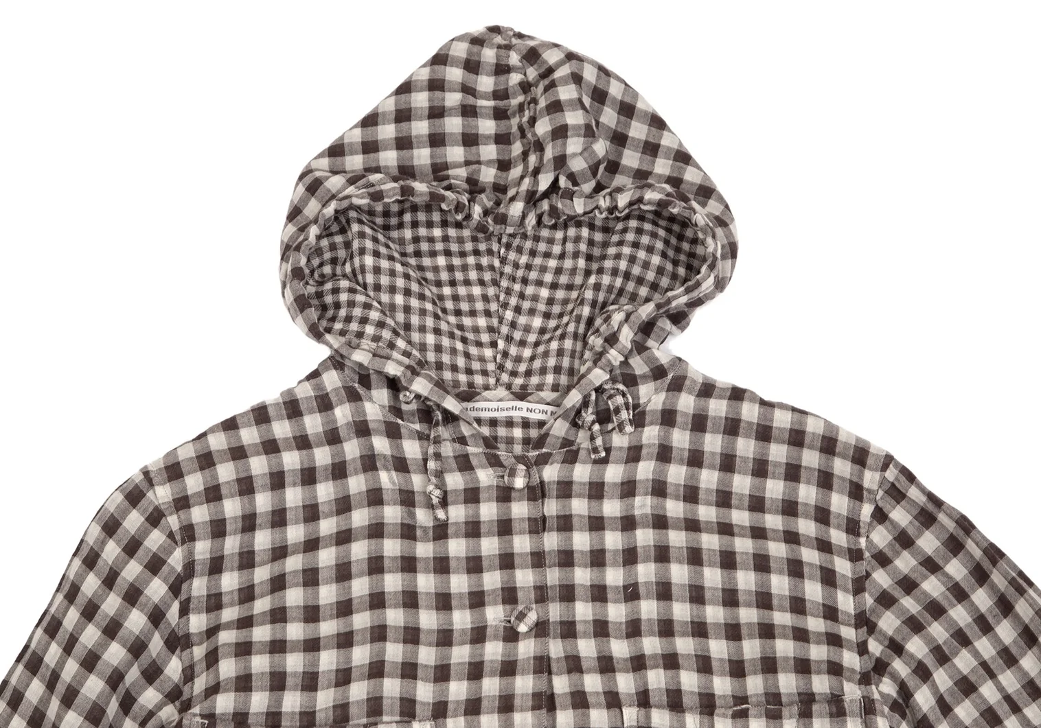 マドモアゼルノンノンMademoiselle NON NON ギンガムチェックダブルガーゼフードシャツ 茶オフ40L