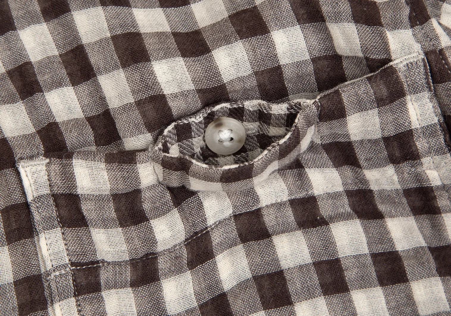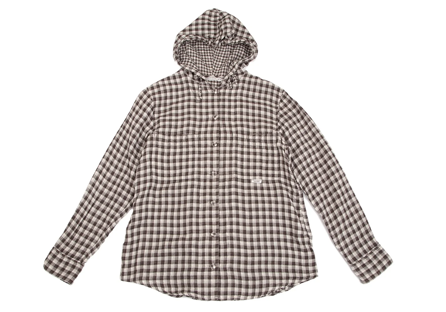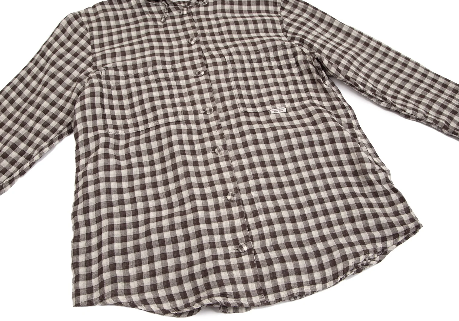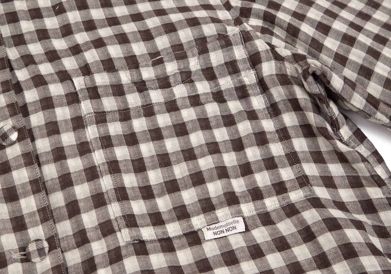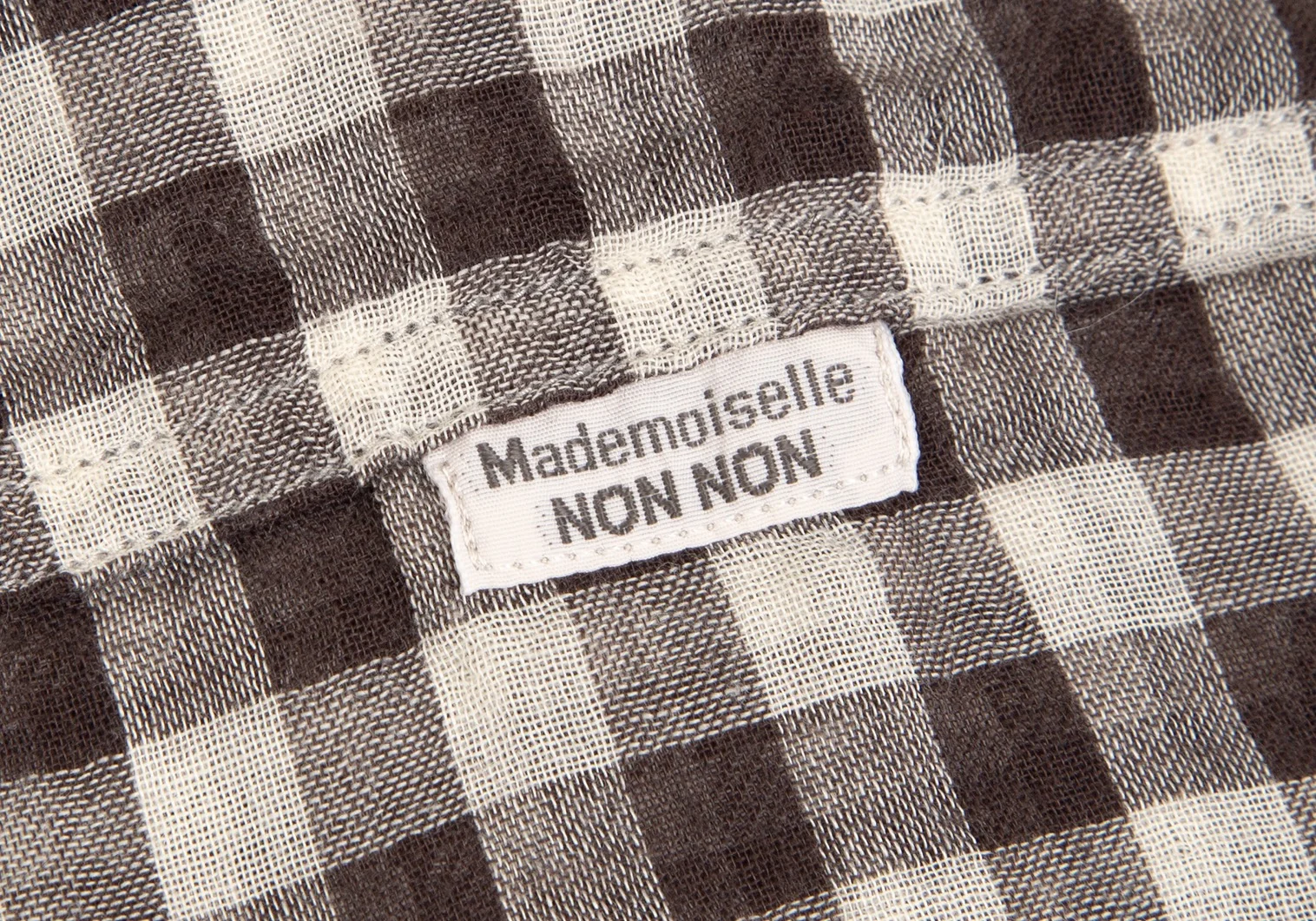 マドモアゼルノンノンMademoiselle NON NON ギンガムチェックダブルガーゼフードシャツ 茶オフ40L
