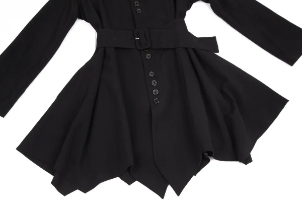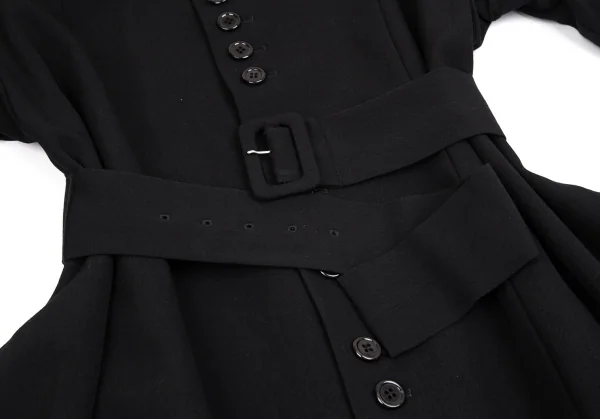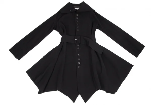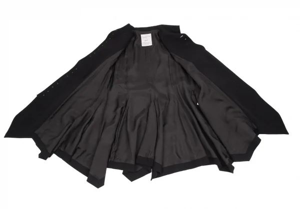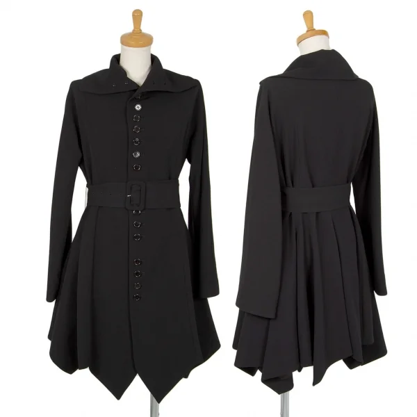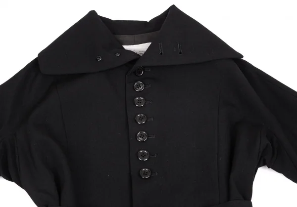 ヨウジヤマモト ファムYohji Yamamoto FEMME ウールギャバ多ボタハイネックセーラーカラーロングフレアコート 黒S