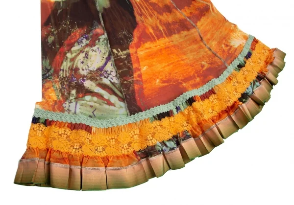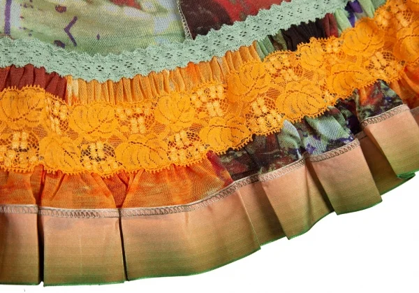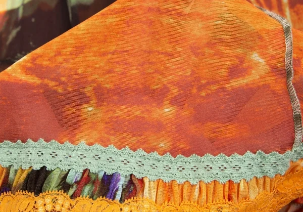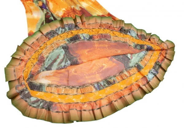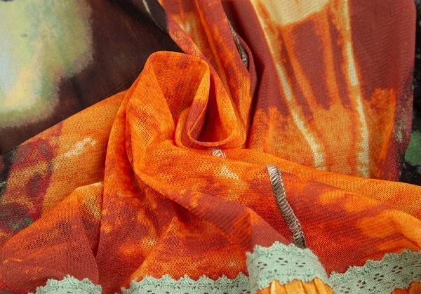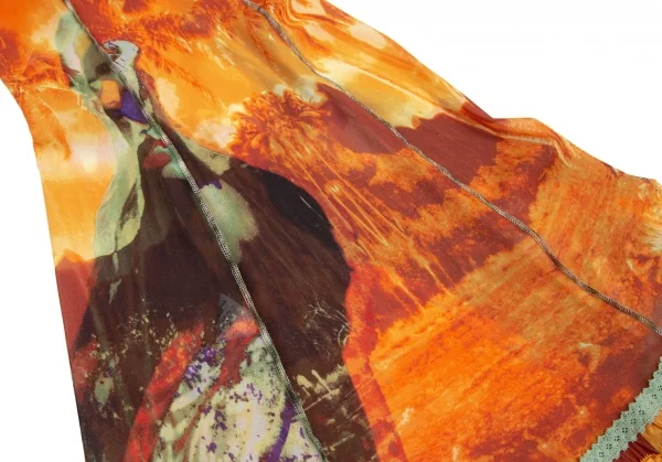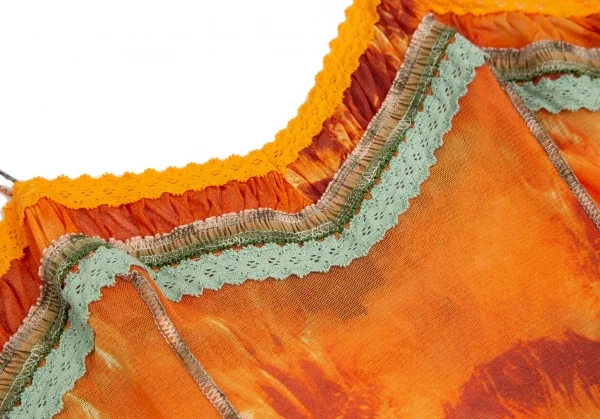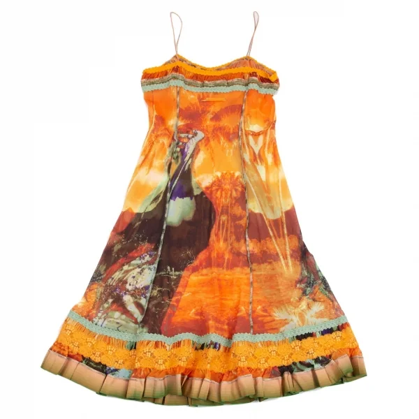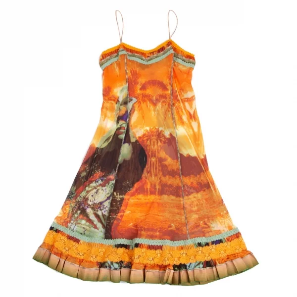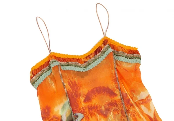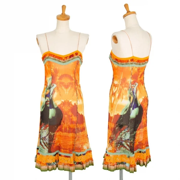 ジャンポールゴルチエ ファムJean Paul GAULTIER FEMME トロピカルプリントレース切替パワーネットキャミソールワンピース オレンジ40