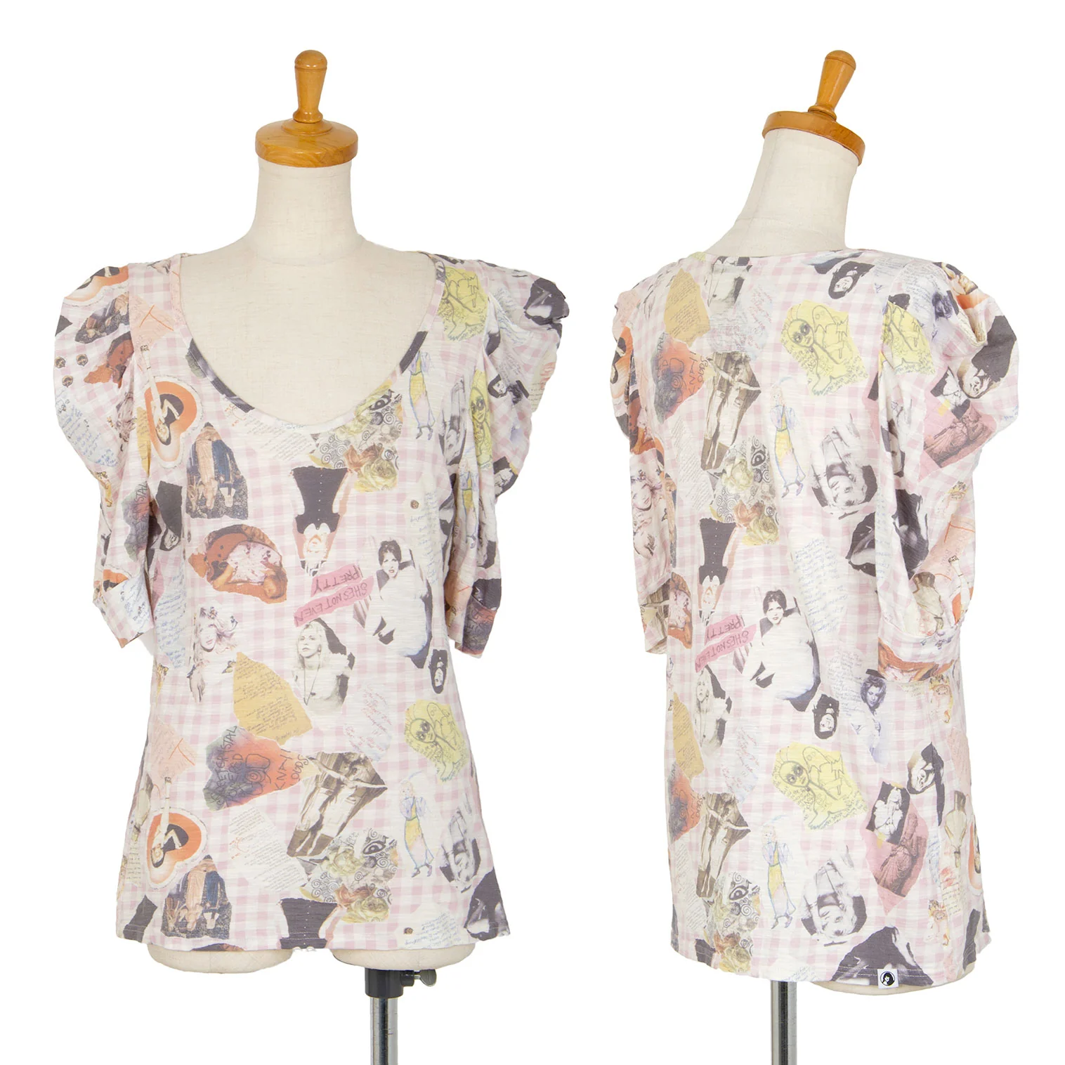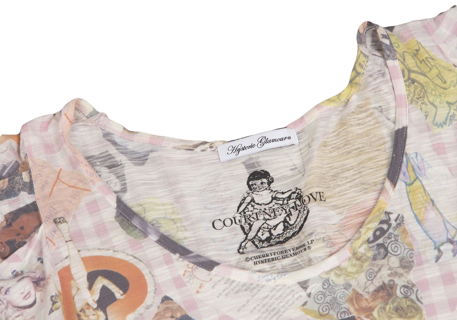 ヒステリックグラマー×コートニーラブHYSTERIC GLAMOUR×COURTNEY LOVE ガールギンガムチェックプリントパワーショルダー5分袖トップス マルチフリー