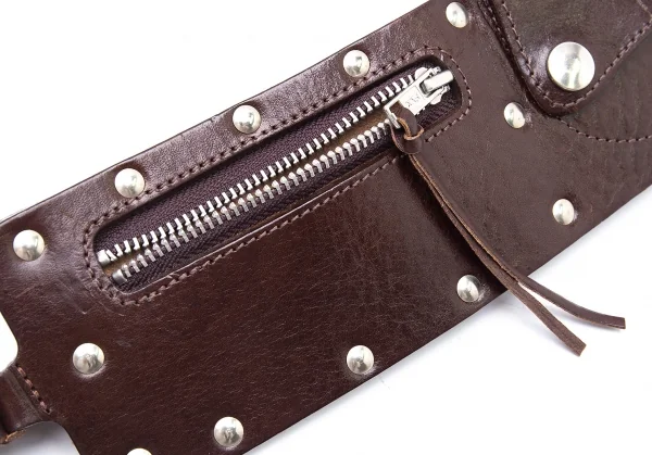 クレメンツリベイロCLEMENTS RIBEIRO レザースタッズポーチラップベルト 茶
