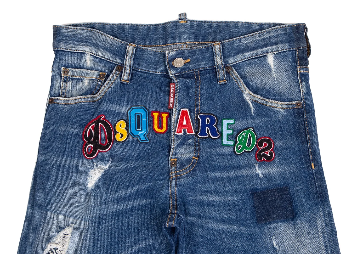 ディースクエアードDSQUARED2 Cool guy jean クールガイフロントワッペンストレッチスキニーデニムパンツ インディゴ46