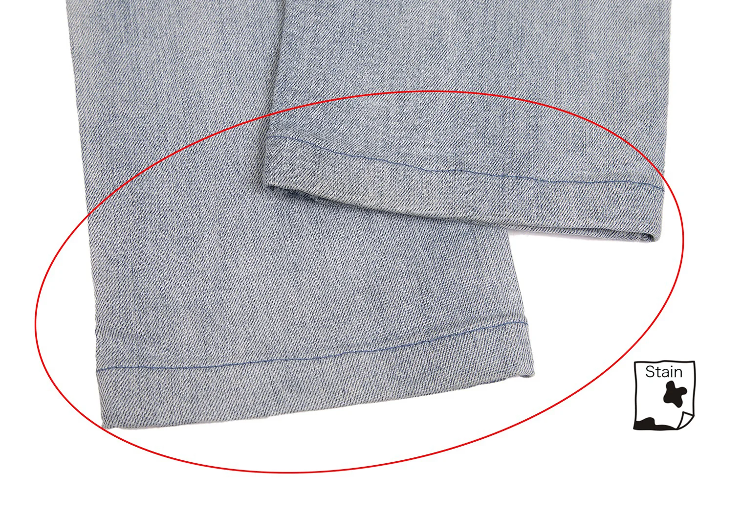 ワッペンフチにほつれがあり補修跡、文字ほつれ、後ろ裾先・裾裏に薄汚れ、前左腿に薄シミがあります(画像参照)。その他前目立ったシミ、汚れ、ほつれ等ありません。クリーニング済み