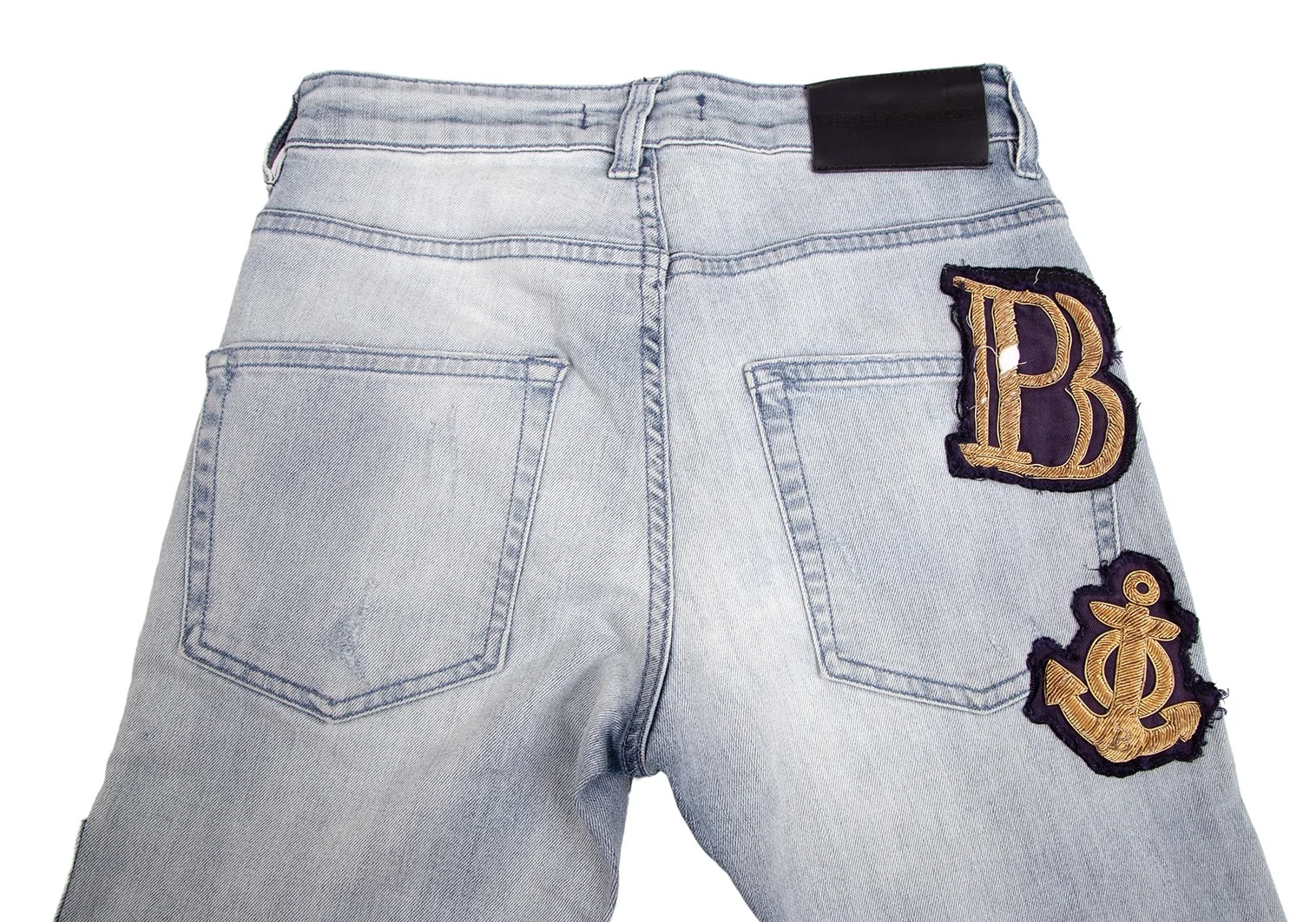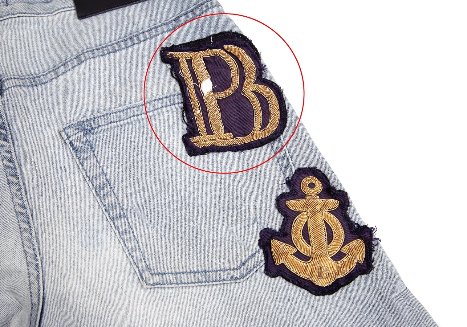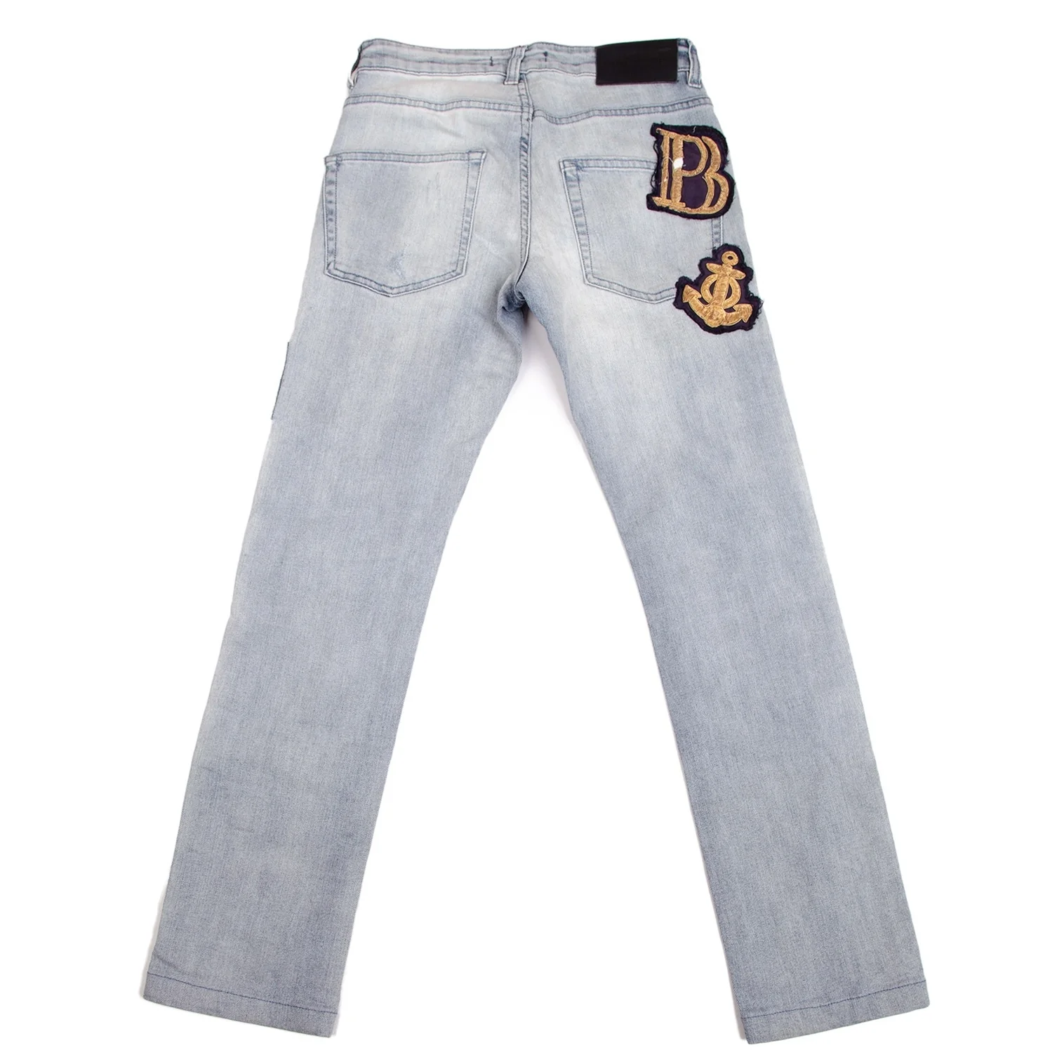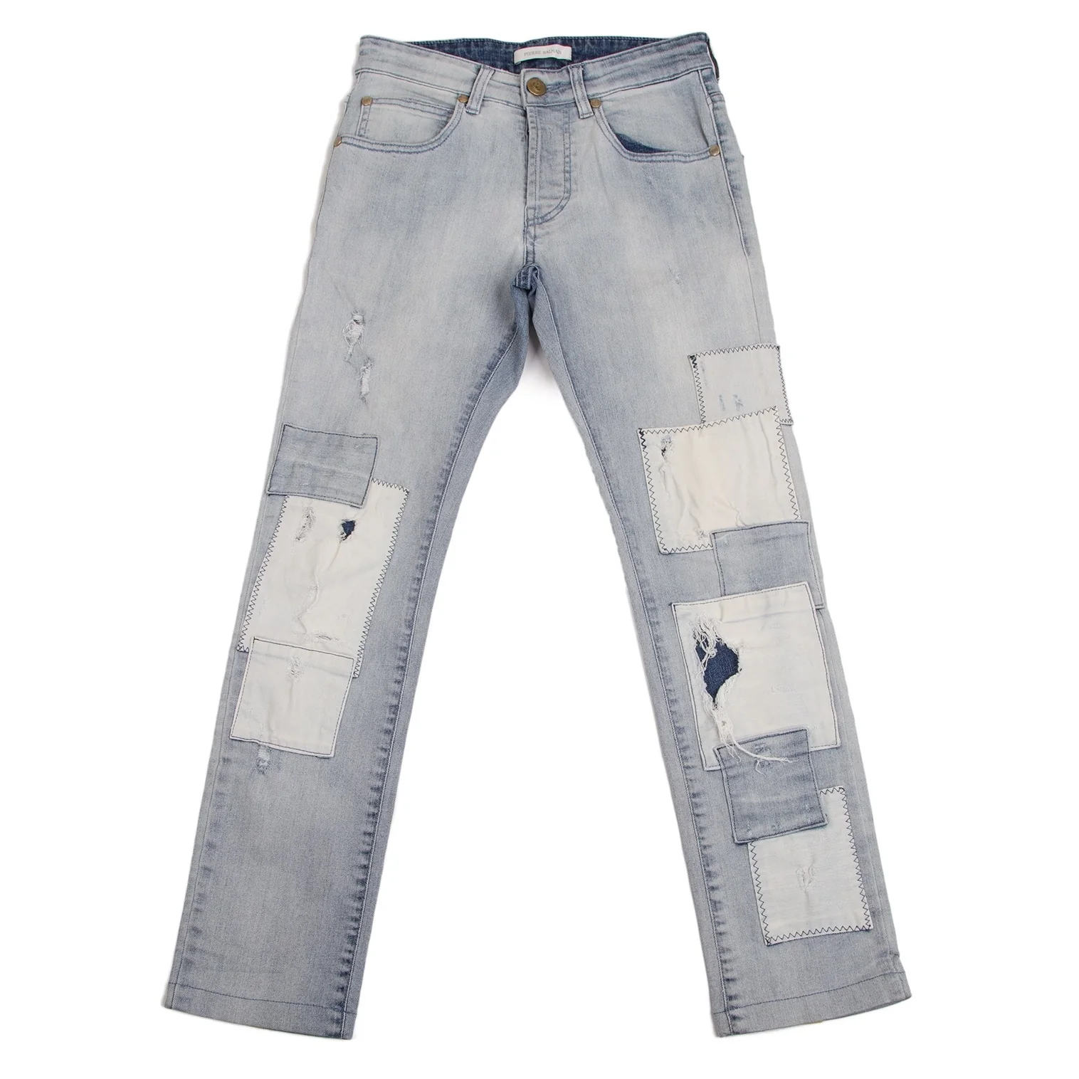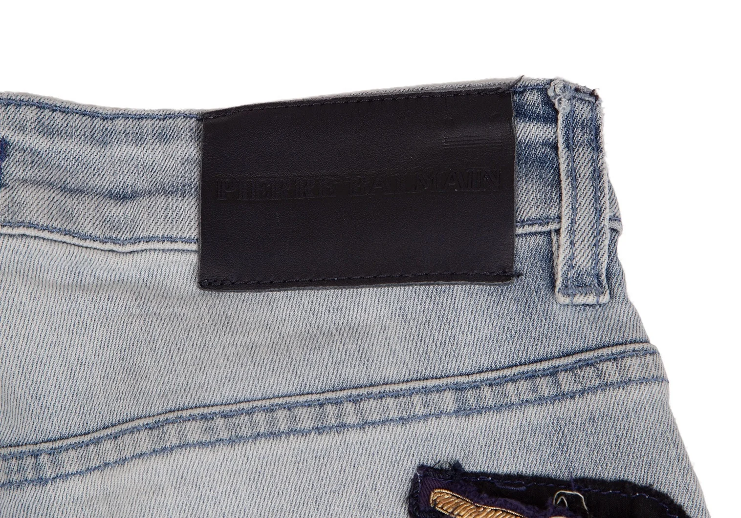 ピエールバルマンPIERRE BALMAIN モールワッペンパッチワークスキニーデニムパンツ 淡インディゴ29