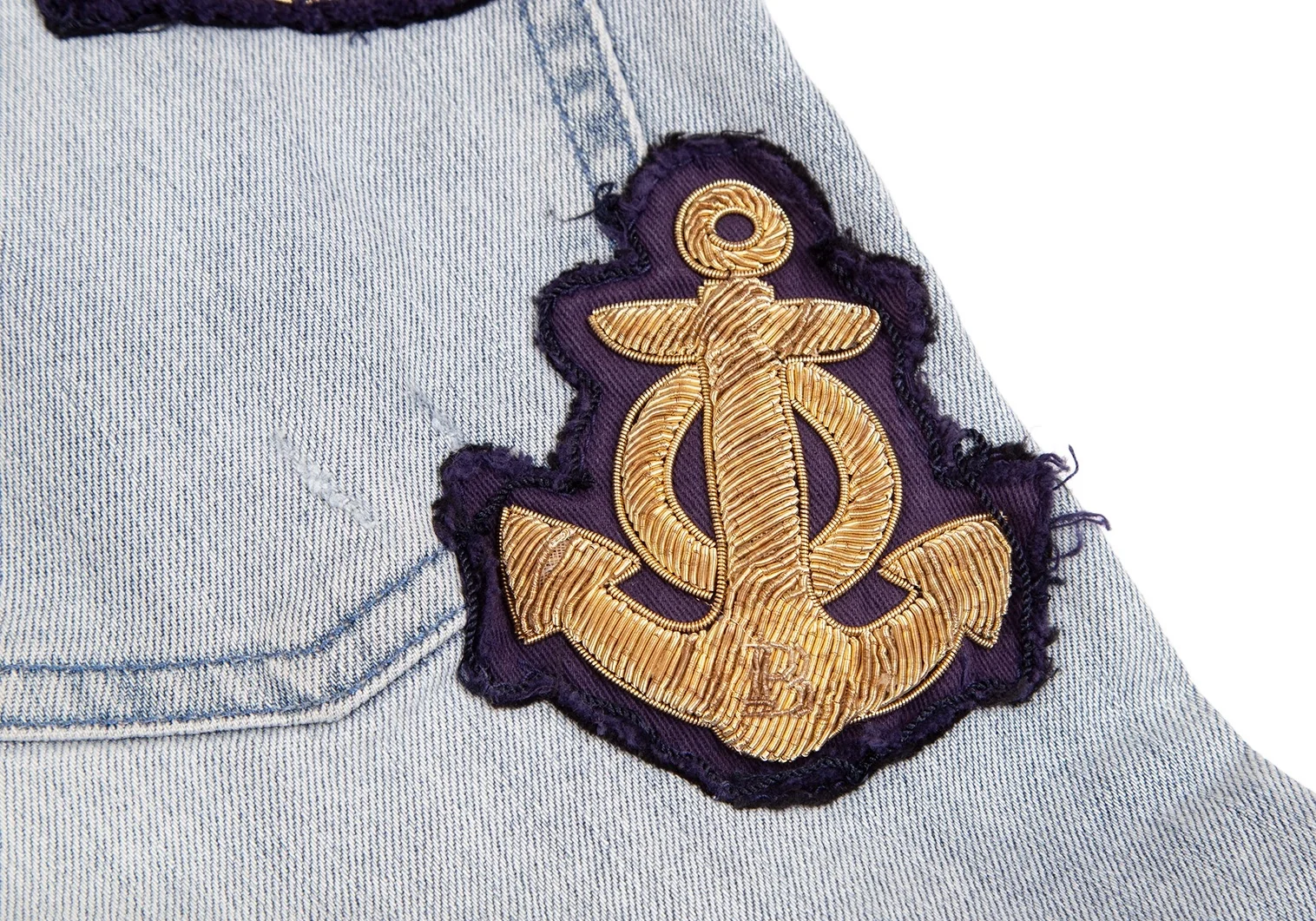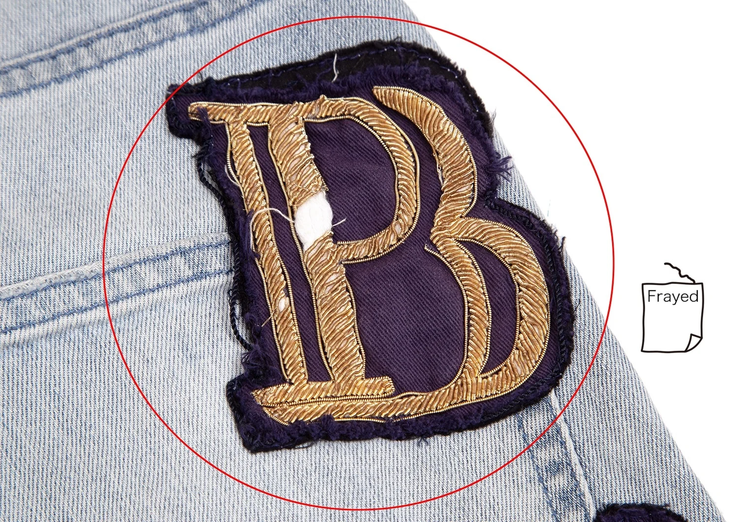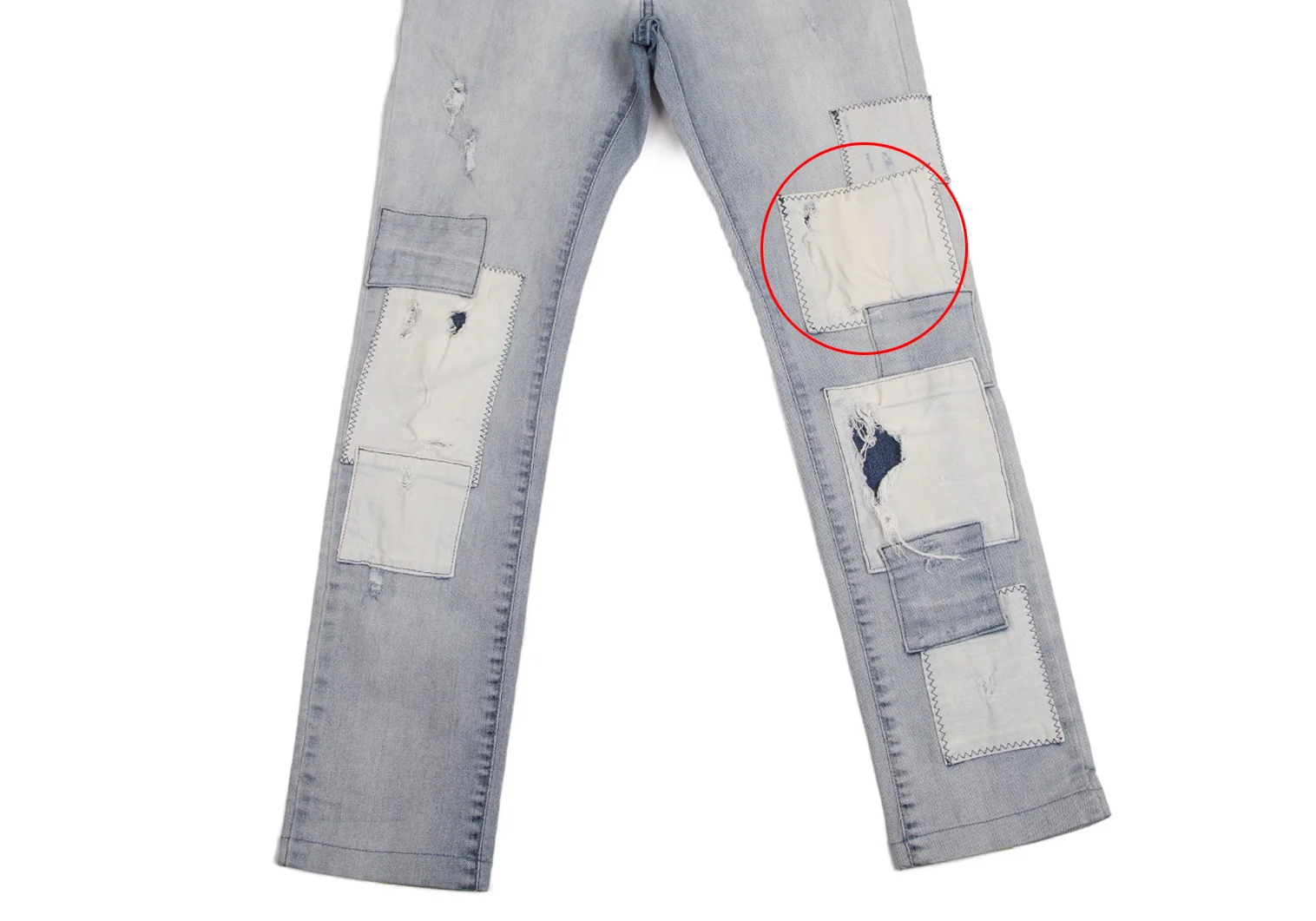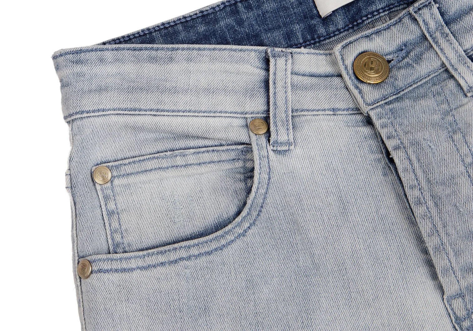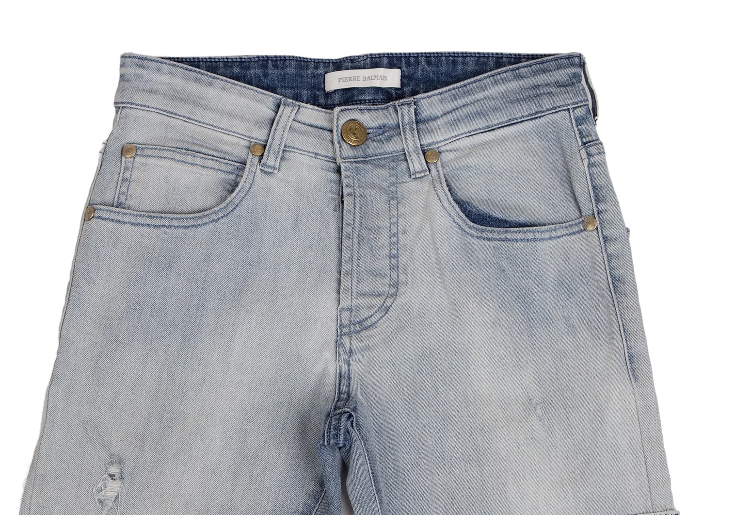 ピエールバルマンPIERRE BALMAIN モールワッペンパッチワークスキニーデニムパンツ 淡インディゴ29