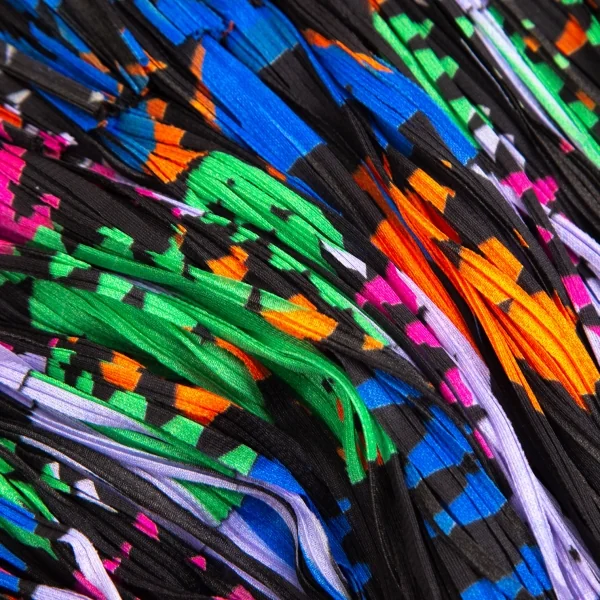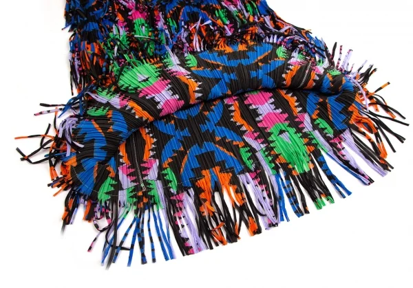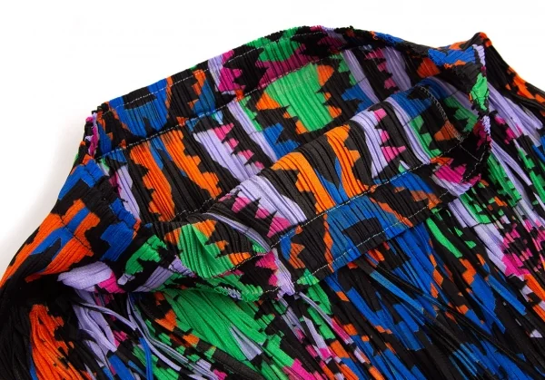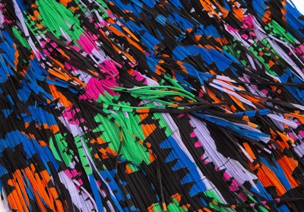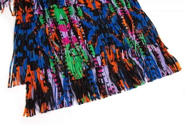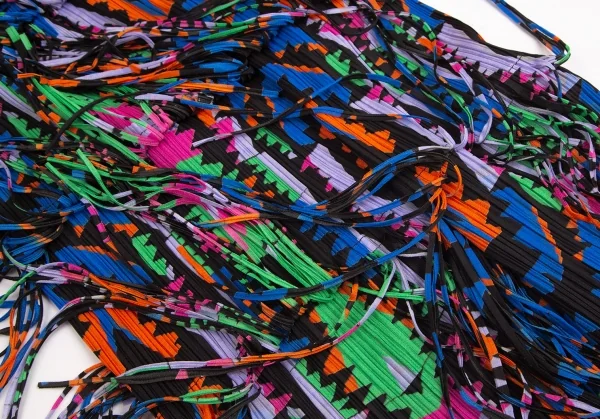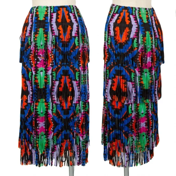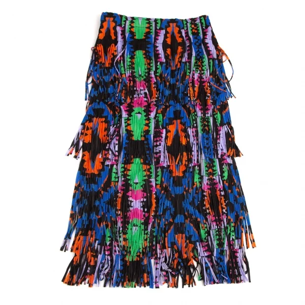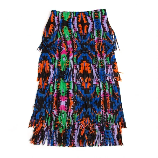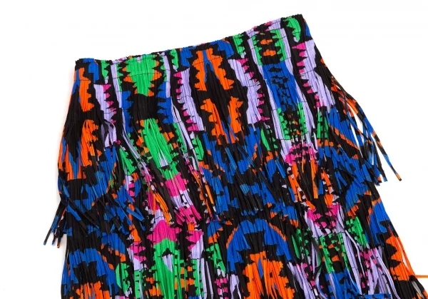 プリーツプリーズPLEATS PLEASE カラフルプリントフリンジスカート 黒マルチM位