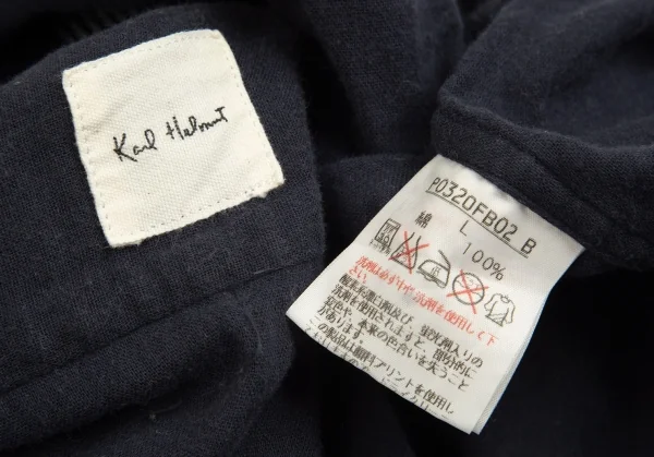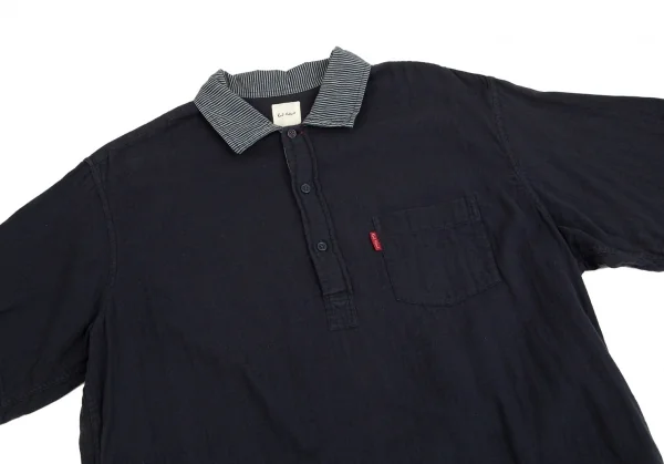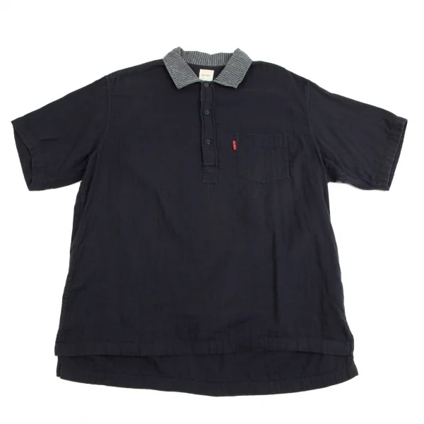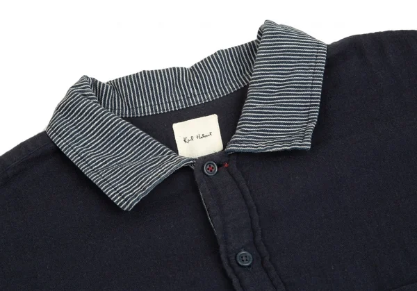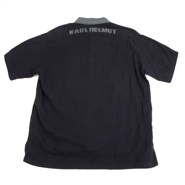 カールヘルムKarl Helmut 襟ストライプ切替プルオーバー半袖シャツ 紺L