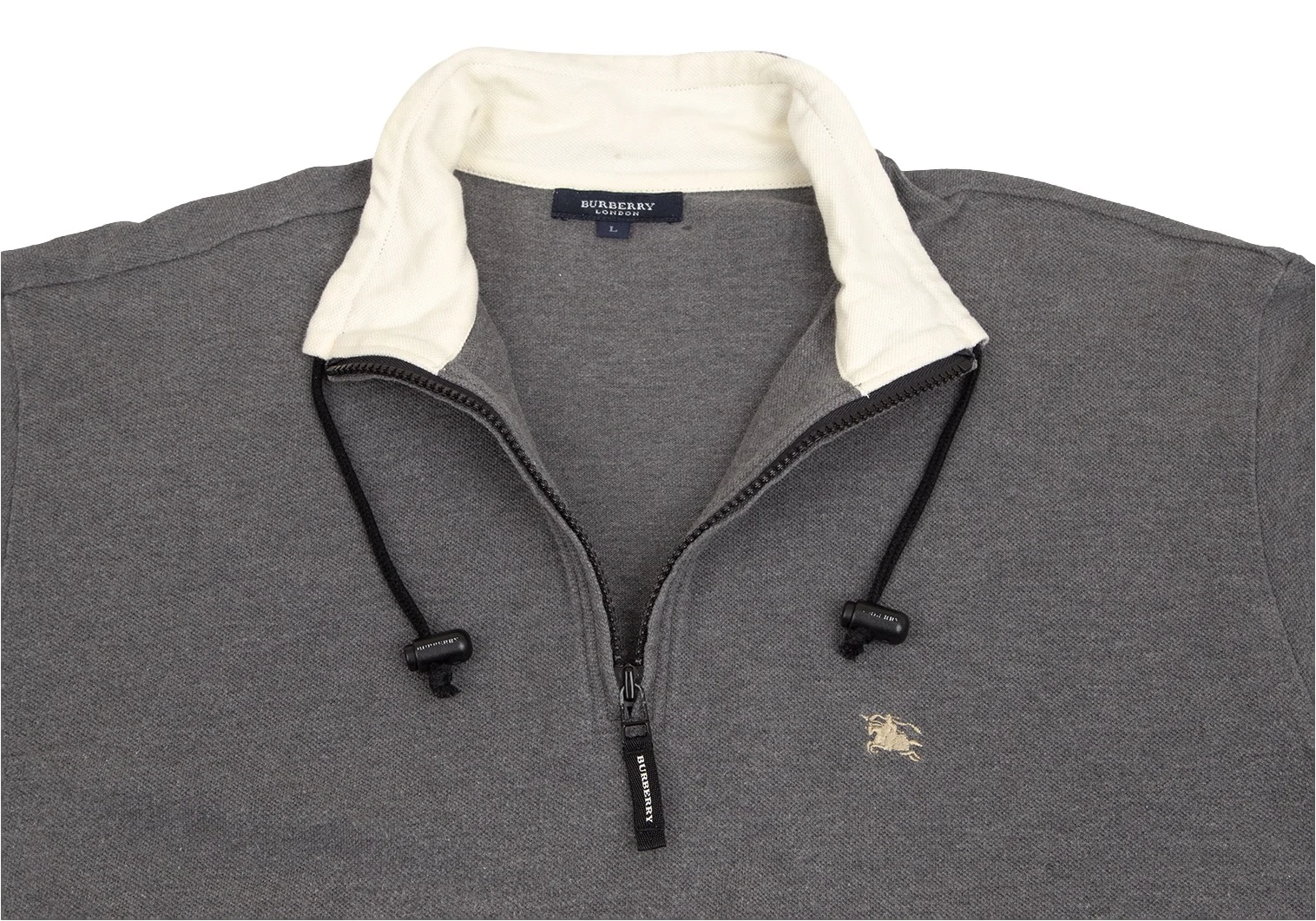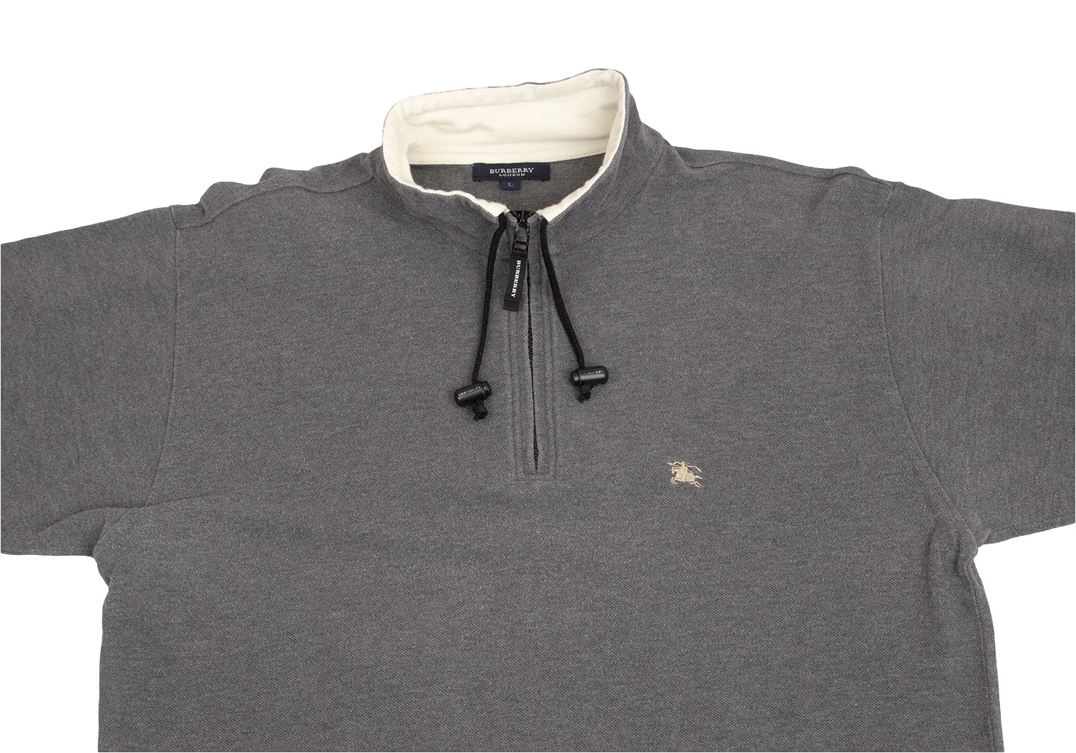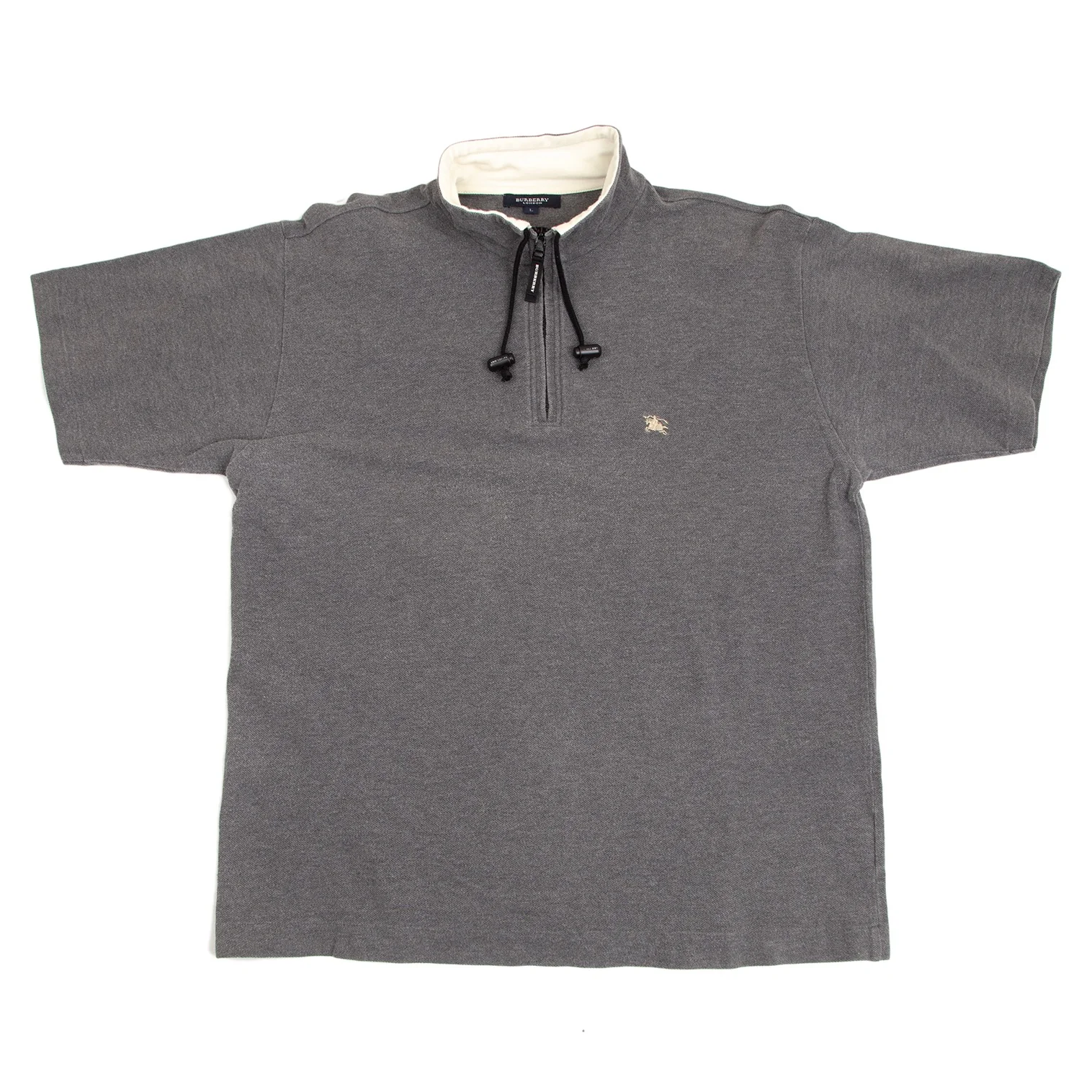 バーバリーロンドンBURBERRY LONDON 鹿の子ハーフジップ半袖トップス グレーL
