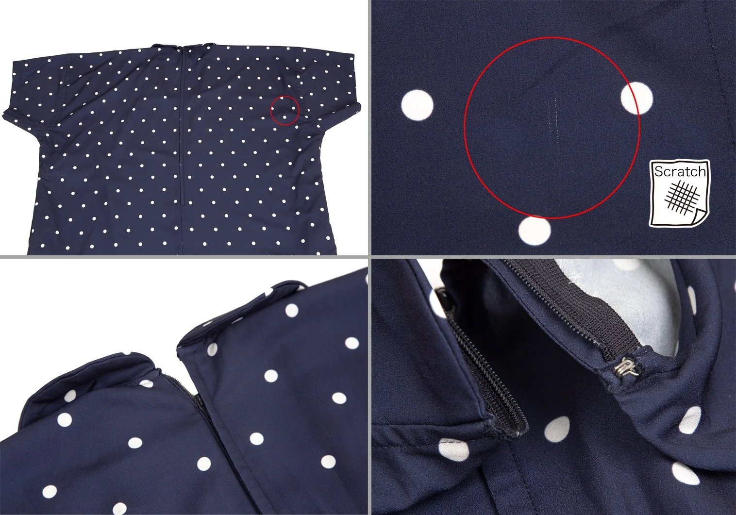 左袖・前後裾・後ろ右脇など全体的に糸引きが多数あります(画像参照)。その他目立ったシミ、汚れ、ほつれ等ありません。クリーニング済み