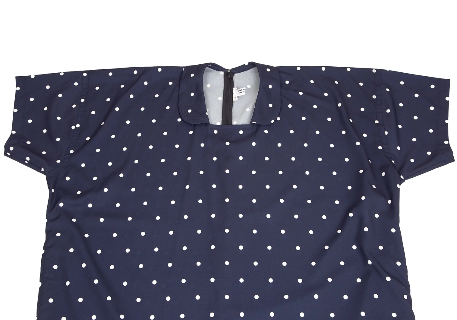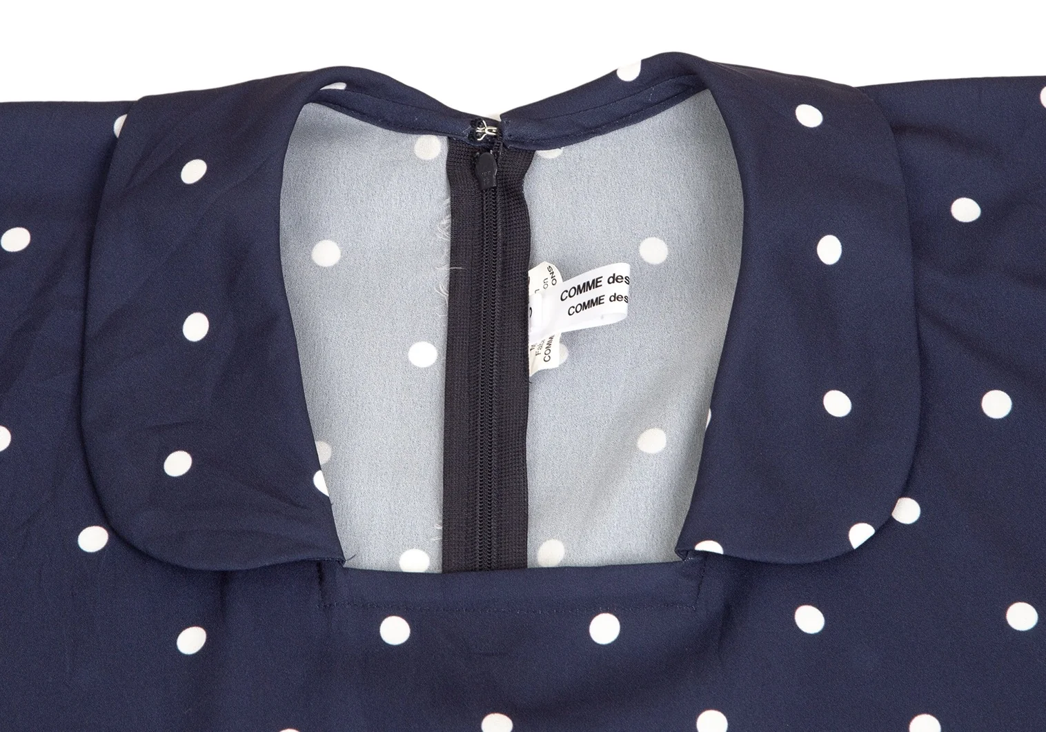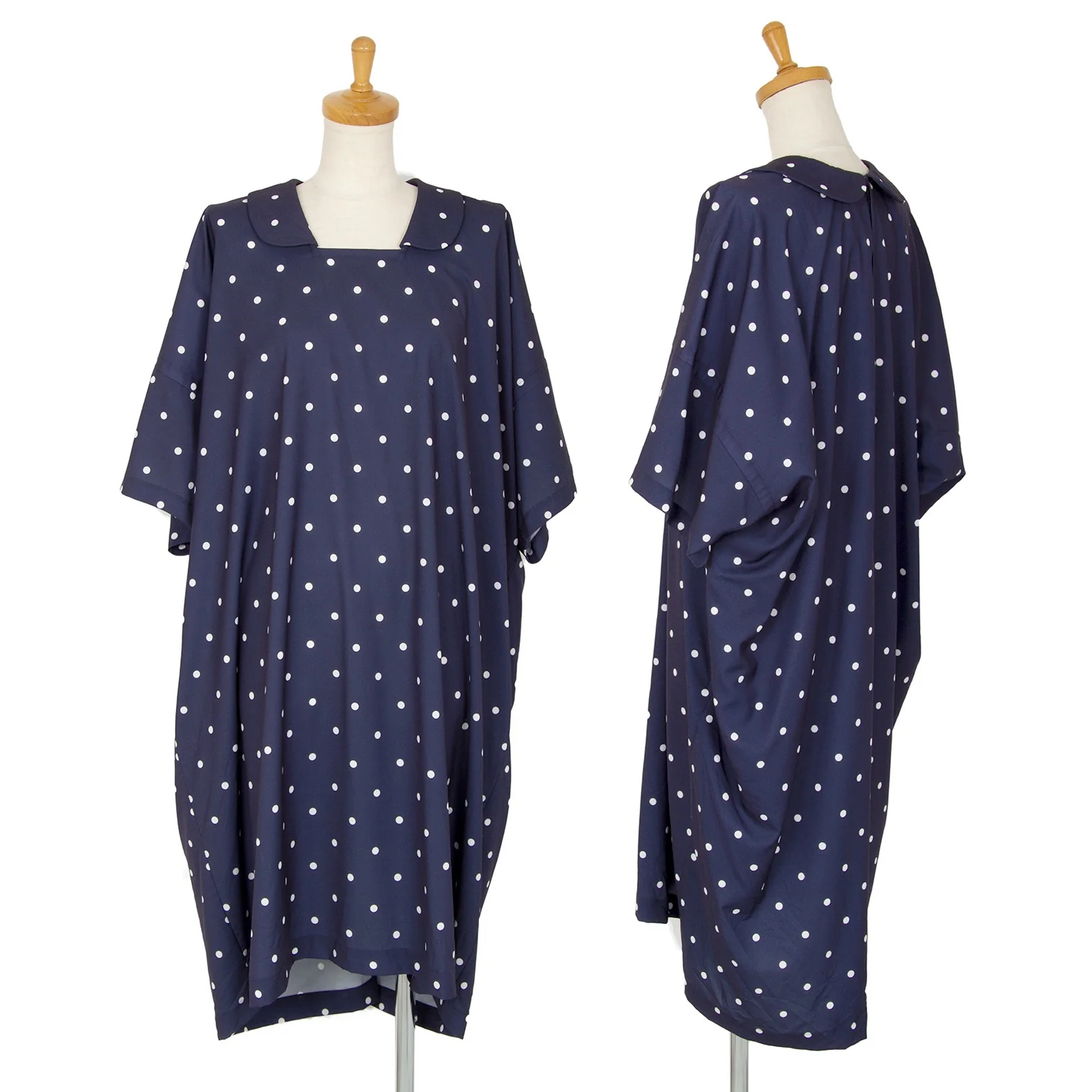 コムコム コムデギャルソンCOMME des GARCONS ポリスクエアネックラウンドカラードット半袖ワンピース 紺S