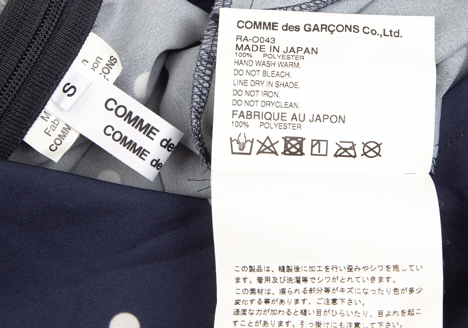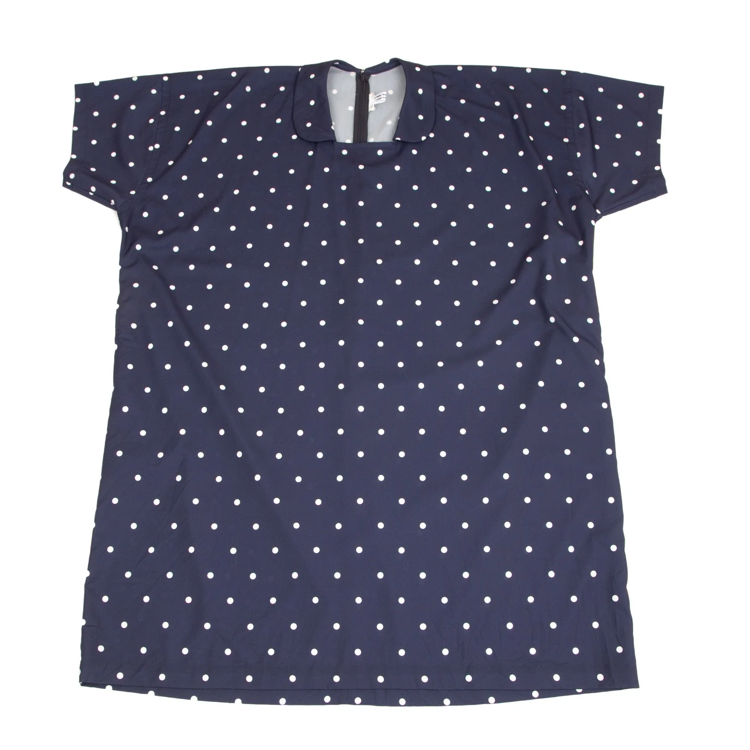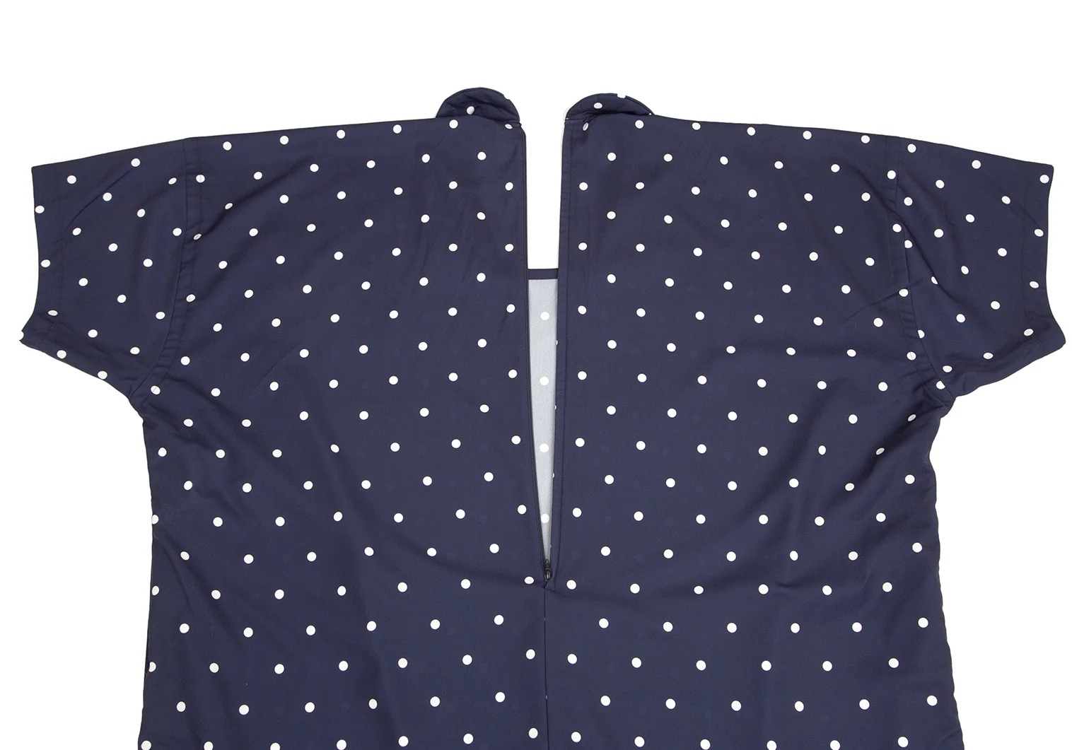 コムコム コムデギャルソンCOMME des GARCONS ポリスクエアネックラウンドカラードット半袖ワンピース 紺S