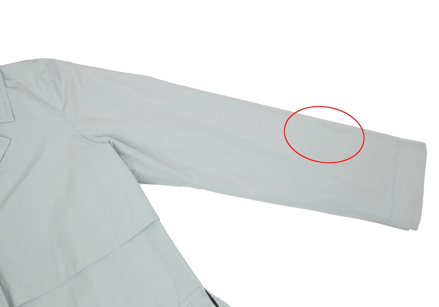 襟元・袖口に薄汚れ、左袖にダメージがあります(写真参照)その他目立ったシミ、汚れ、ほつれ等はないです。クリーニング済み
