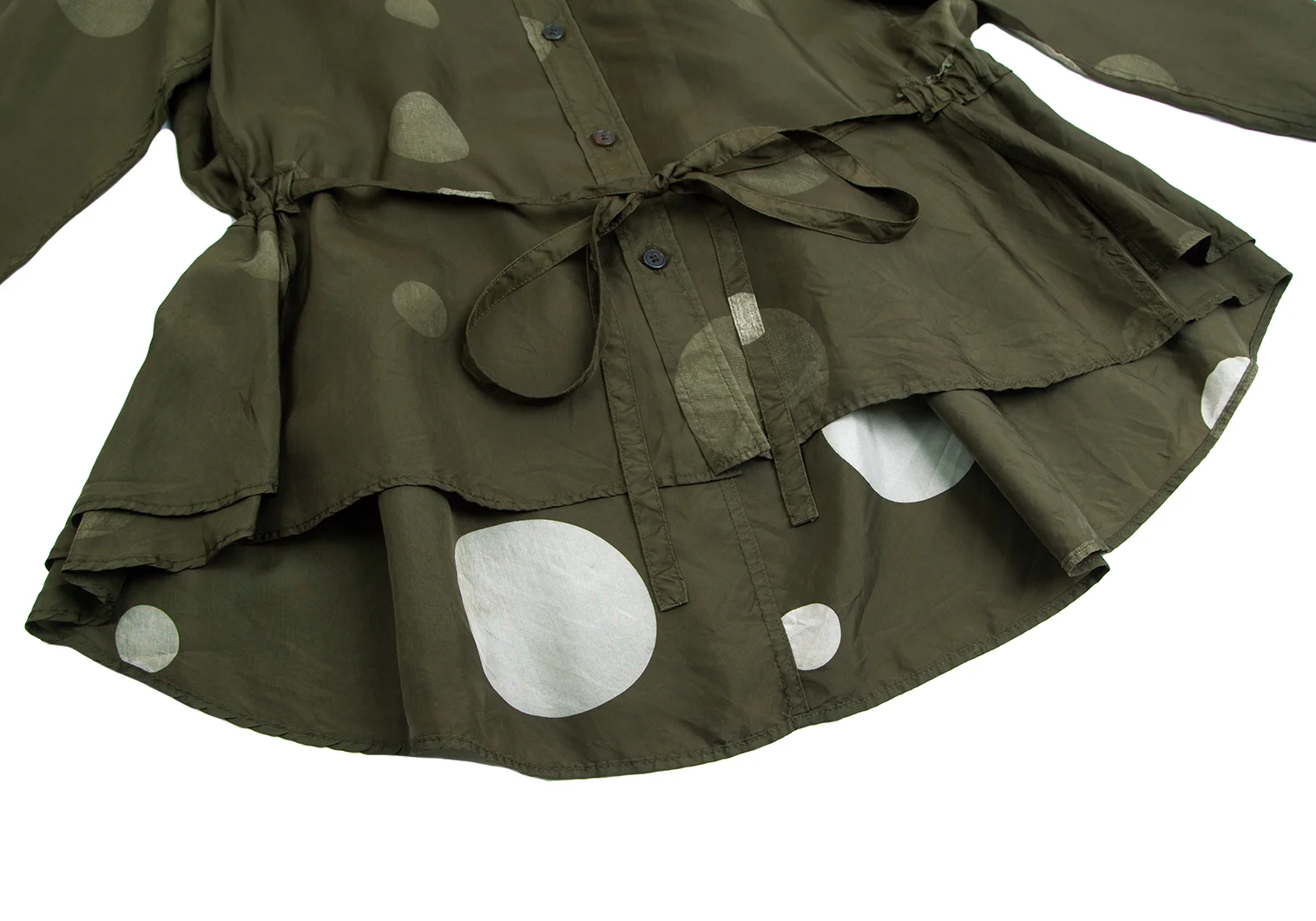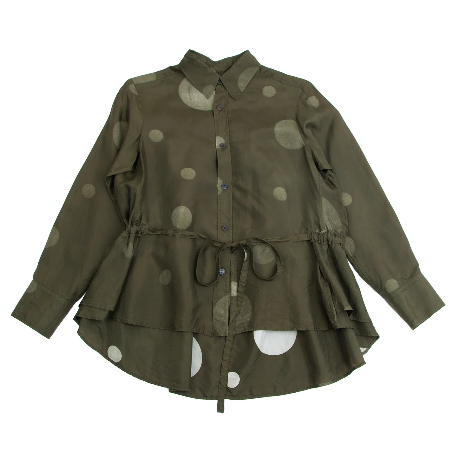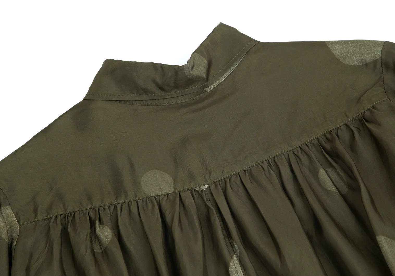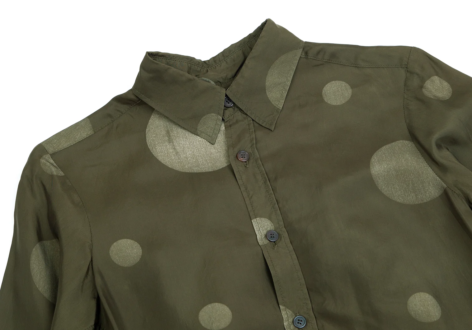 ワイズY's キュプラドットプリント裏使いシャツ カーキ1