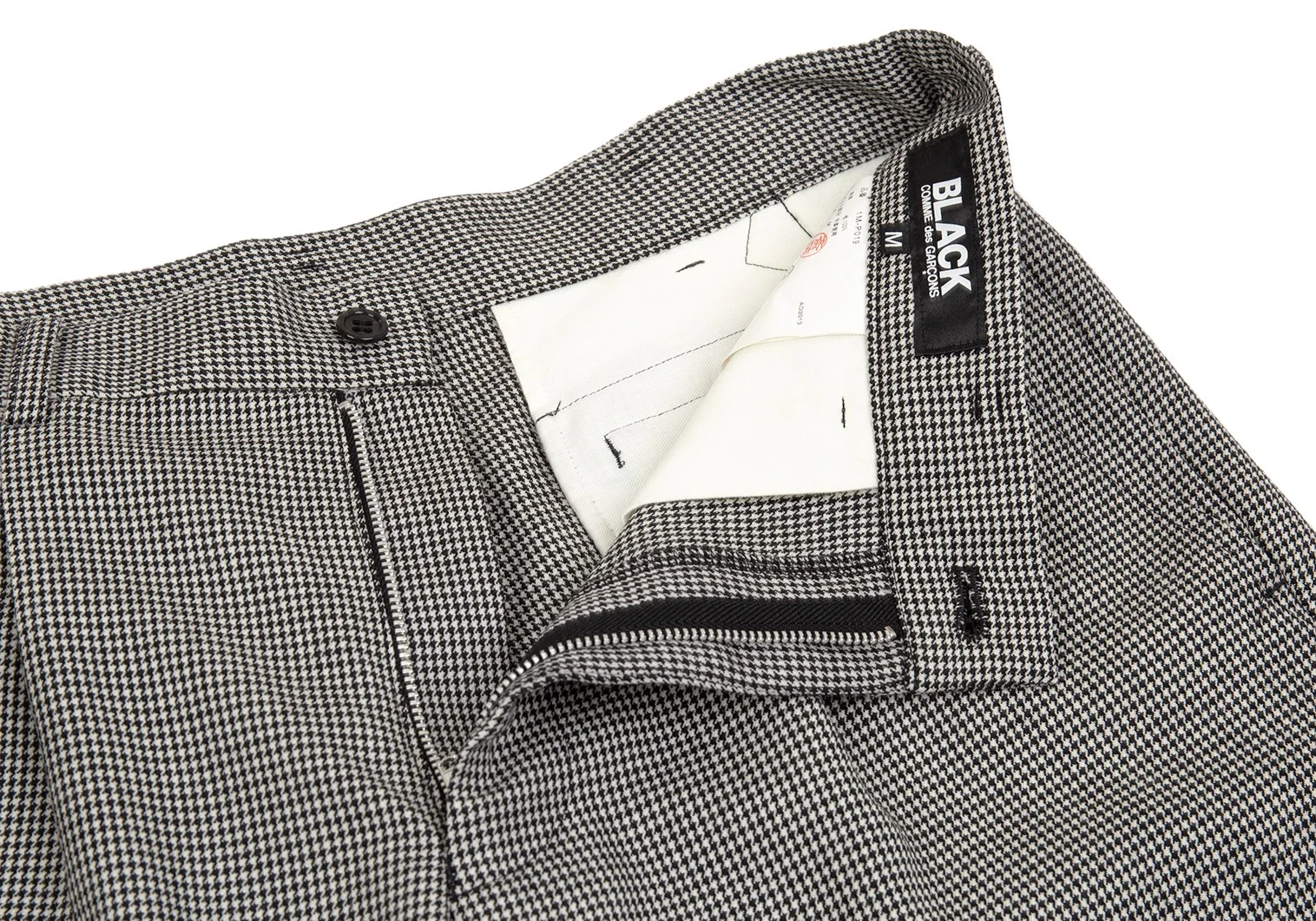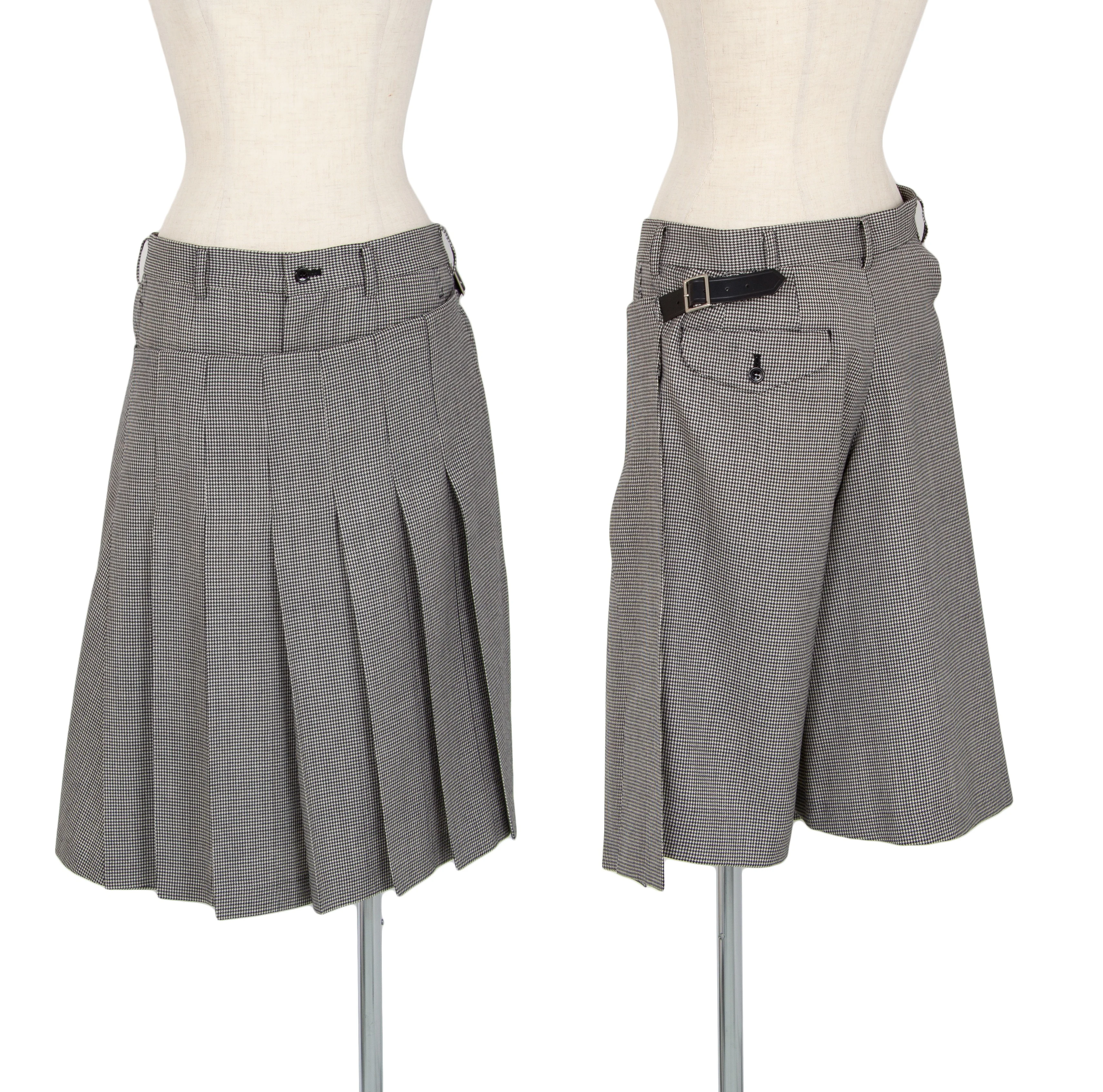 ブラック コムデギャルソンBLACK COMME des GARCONSウールハウンドトゥースラッププリーツスカート風パンツ 白黒M