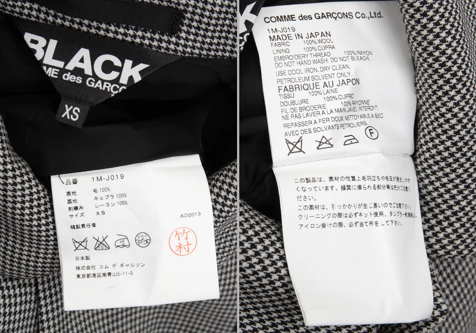 ブラック コムデギャルソンBLACK COMME des GARCONS ウールハウンドトゥースセットアップスーツ 白黒XS/M