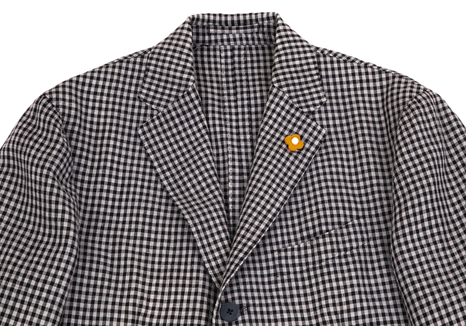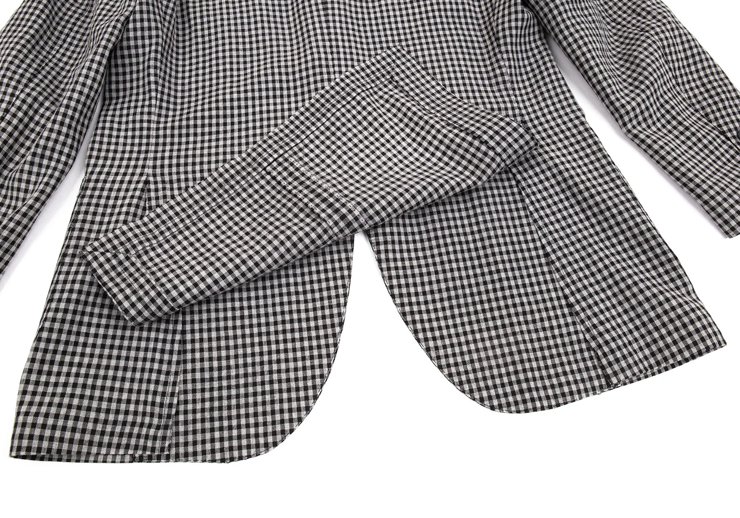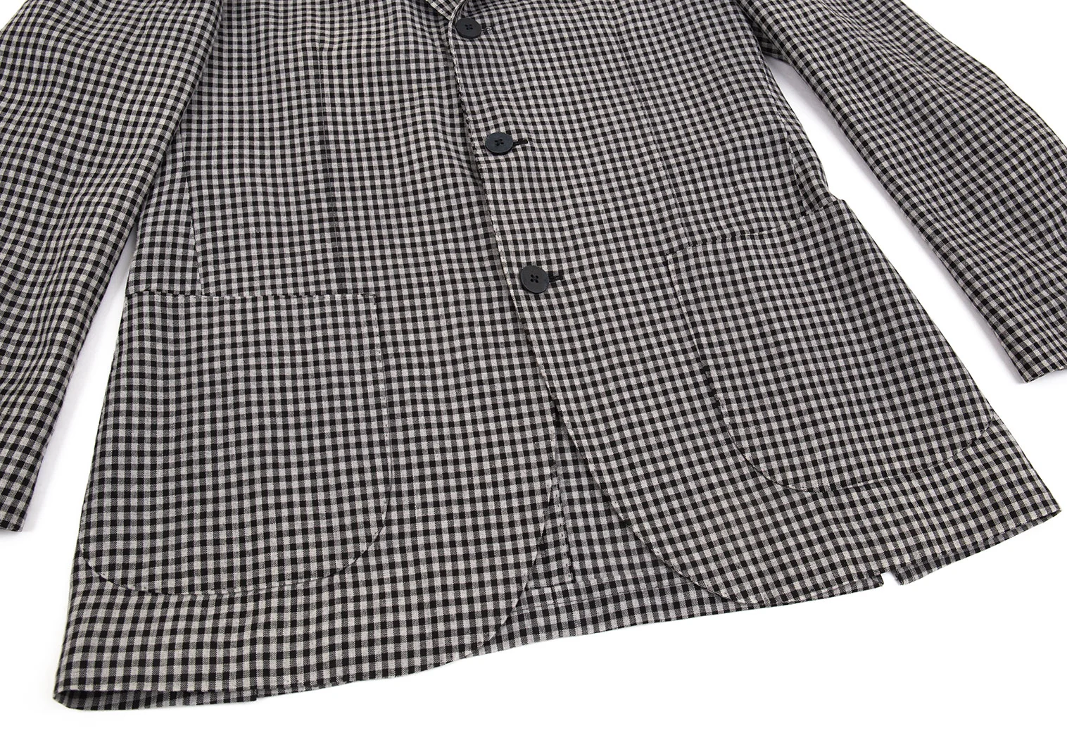 ラルディーニLARDINI 染めリネンウール花柄ボタンワンポイントギンガムチェックジャケット グレー黒50