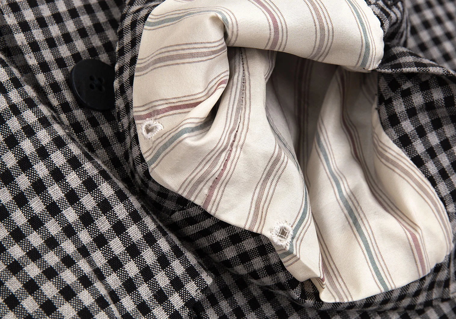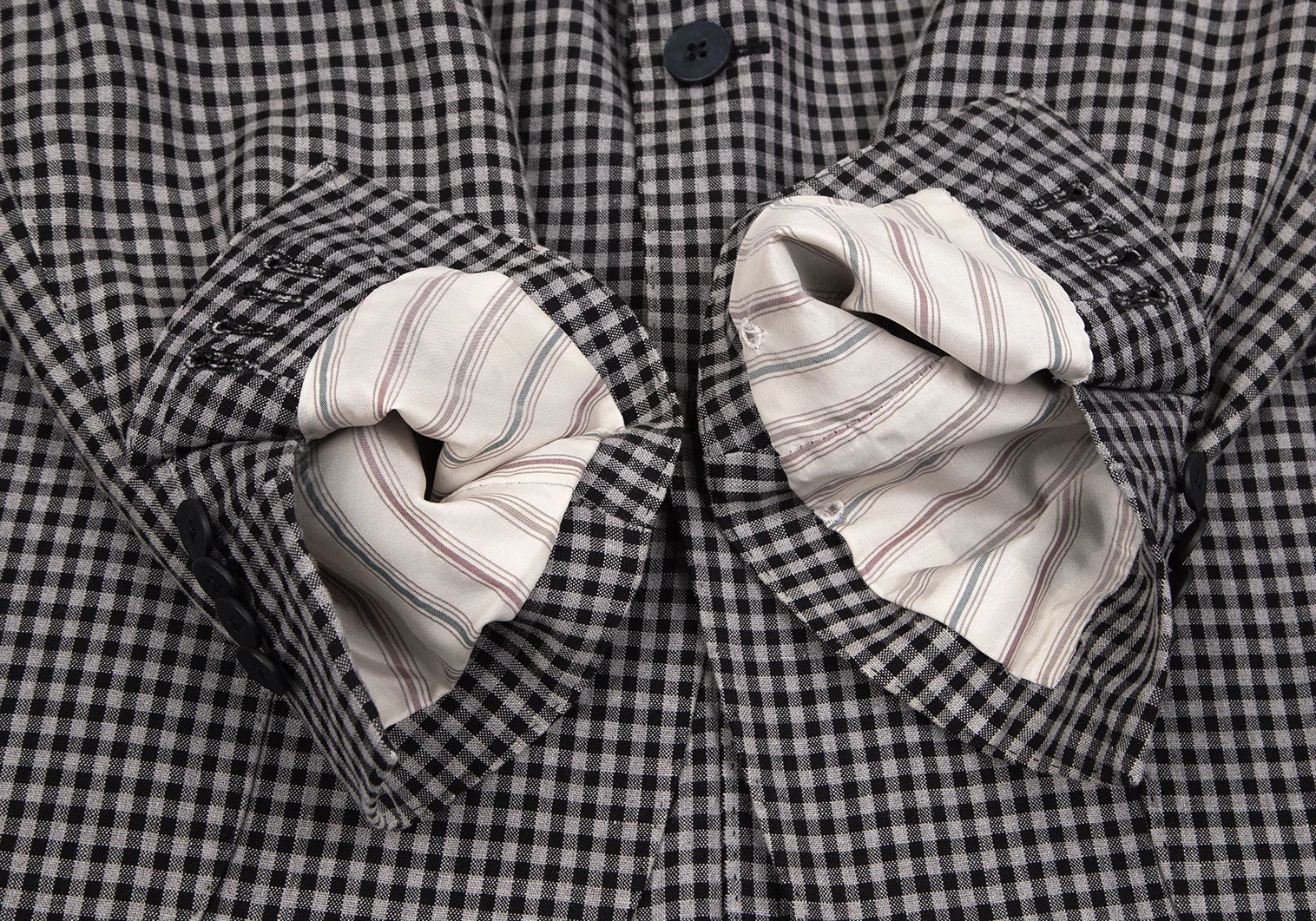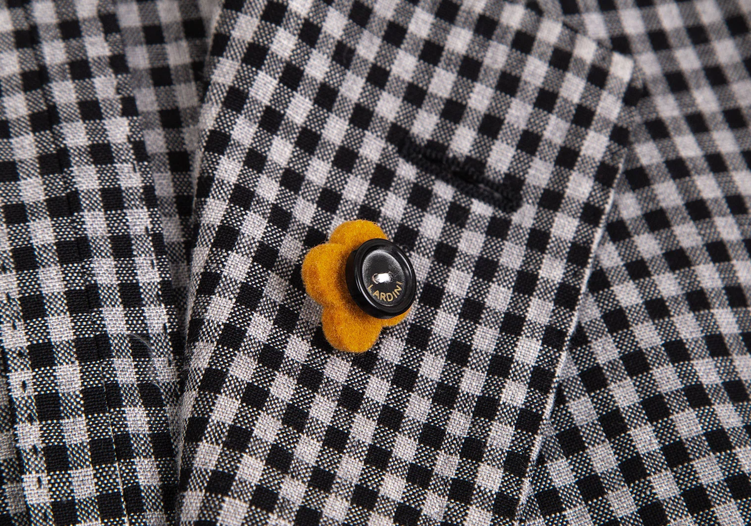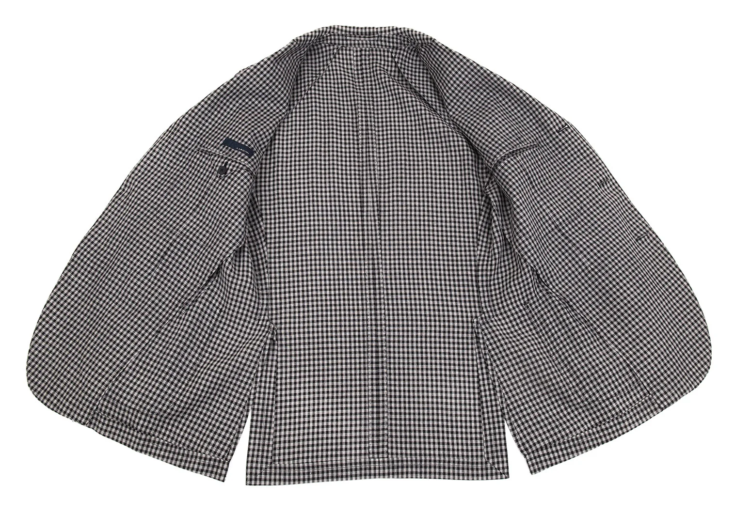 ラルディーニLARDINI 染めリネンウール花柄ボタンワンポイントギンガムチェックジャケット グレー黒50