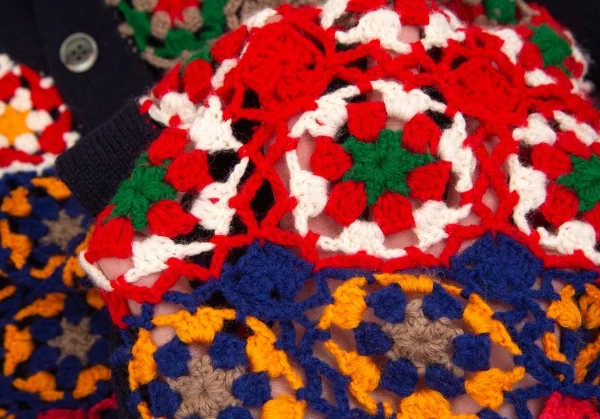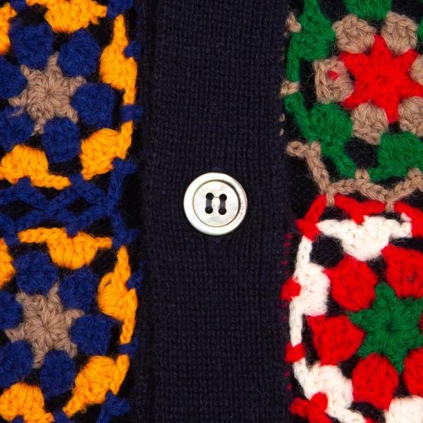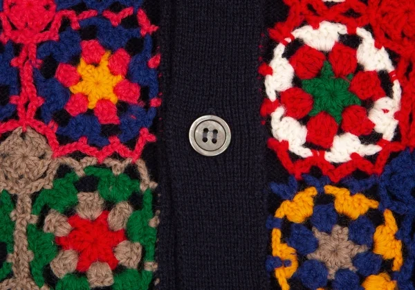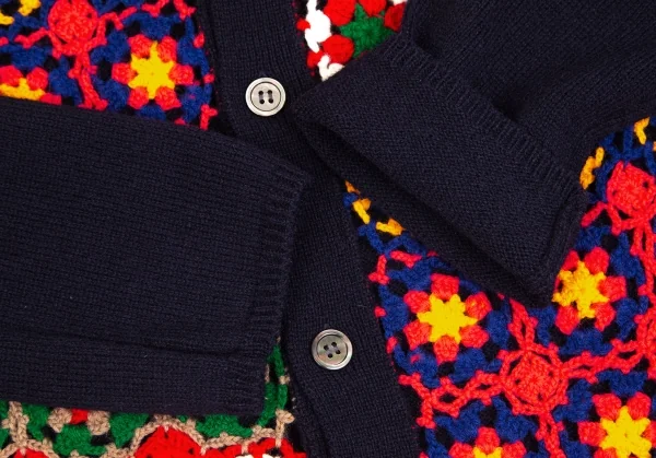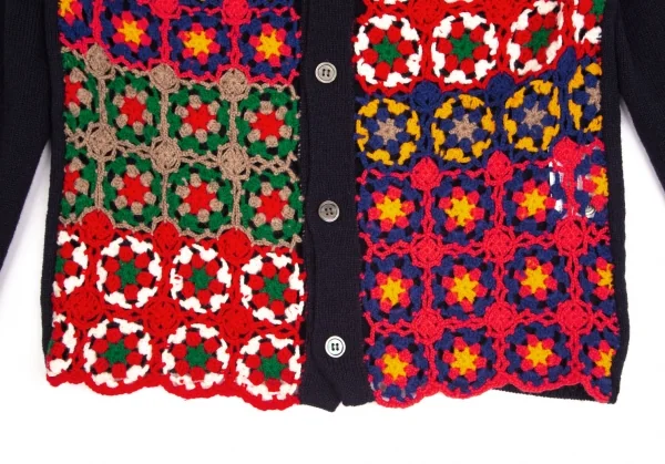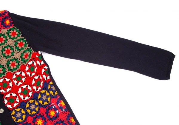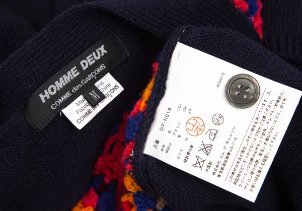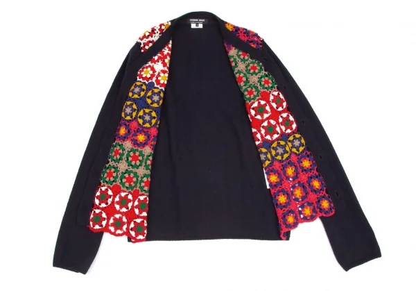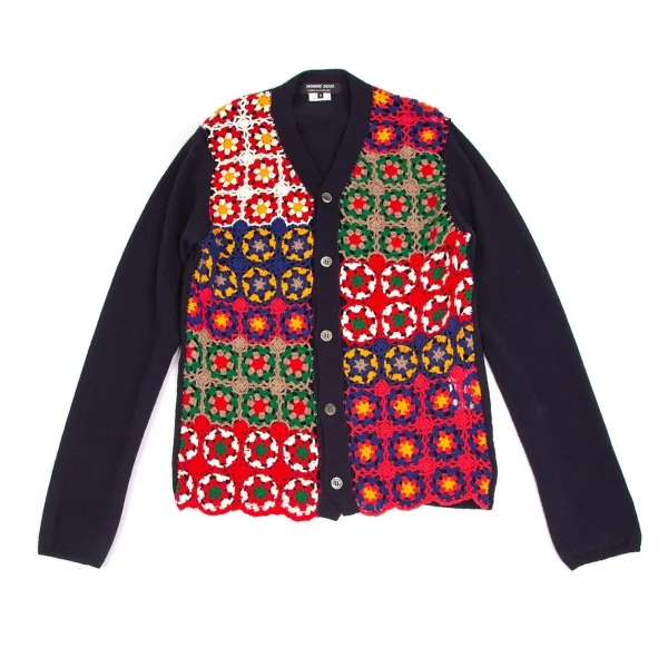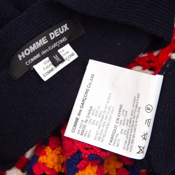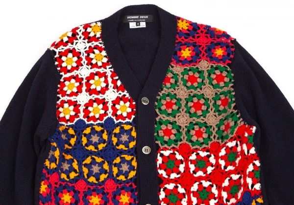 コムデギャルソン オムドゥCOMME des GARCONS HOMME DEUX 花柄編み込みニットカーディガン 紺マルチM