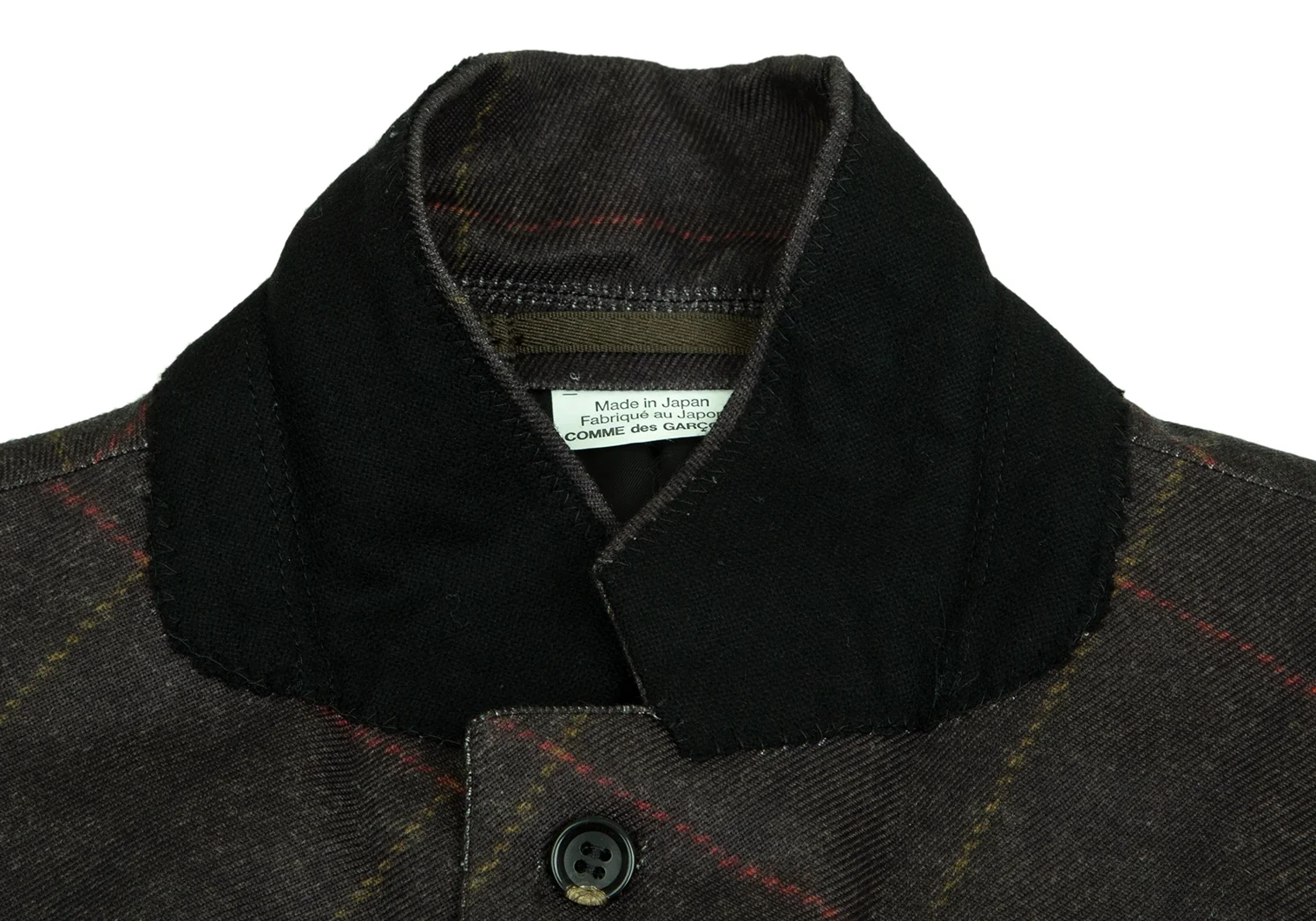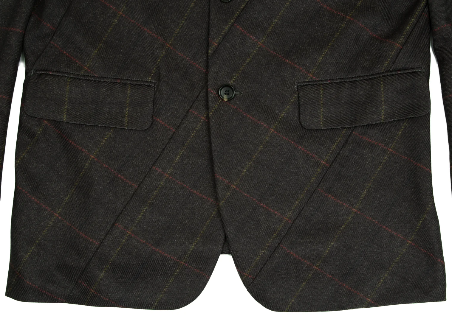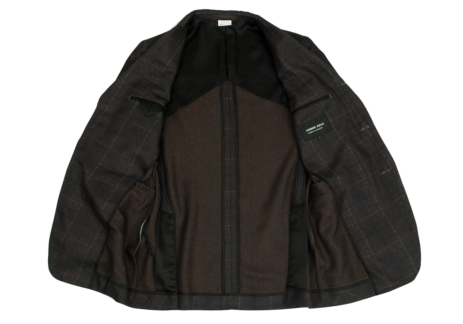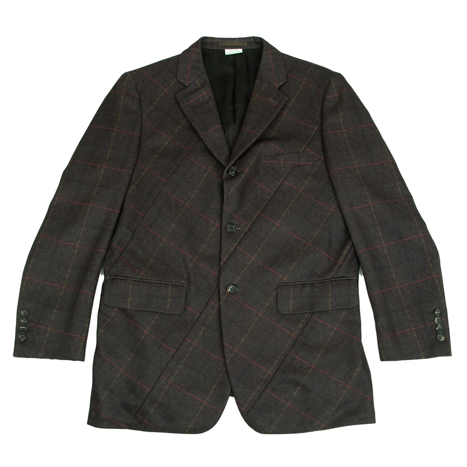 コムデギャルソン オムドゥCOMME des GARCONS HOMME DEUX ポリ斜行切替チェック3Bジャケット カーキL