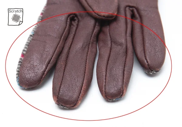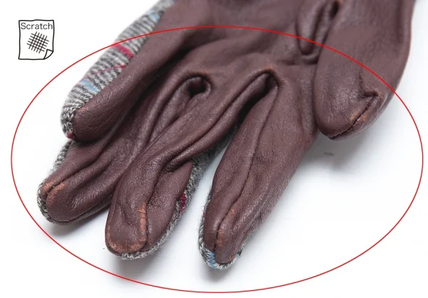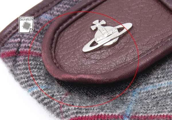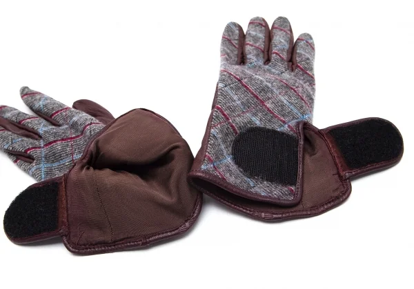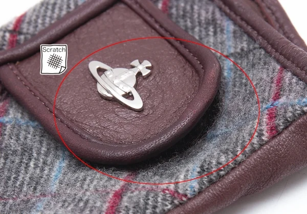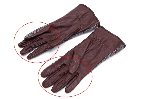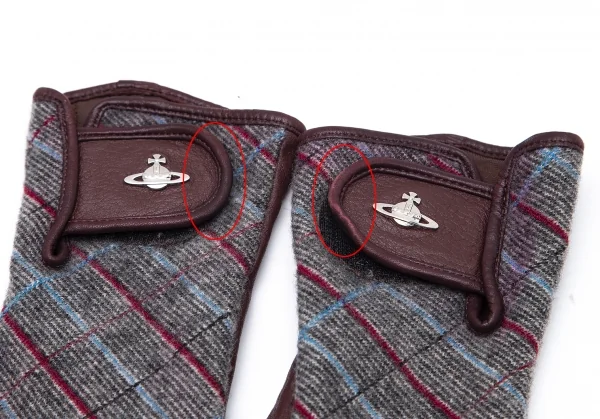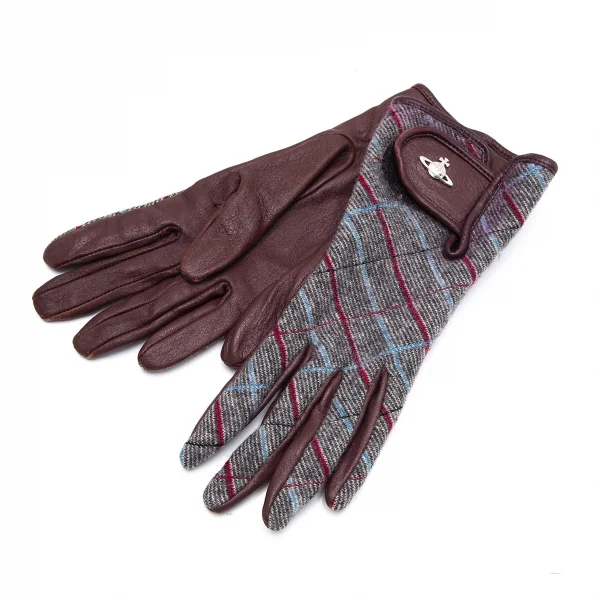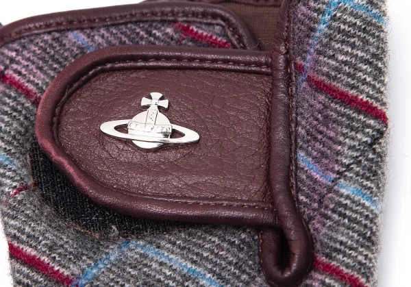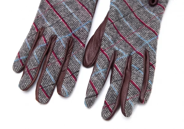 ヴィヴィアンウエストウッドVivienne Westwood バイアスチェック切替レザーグローブ グレー茶