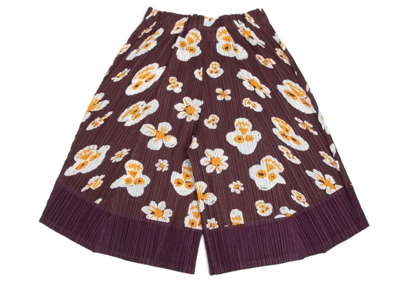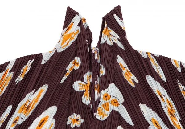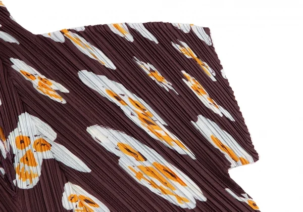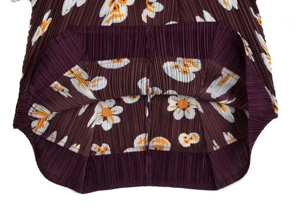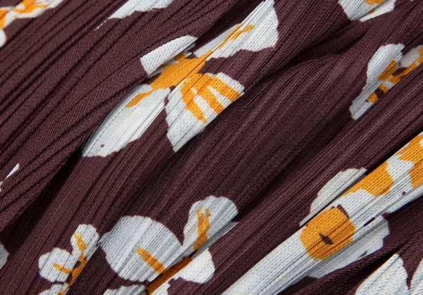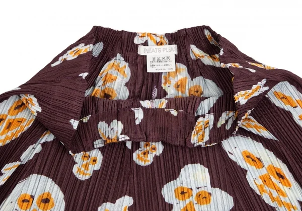 プリーツプリーズPLEATS PLEASE スカルフラワープリントセットアップ 赤茶3・5