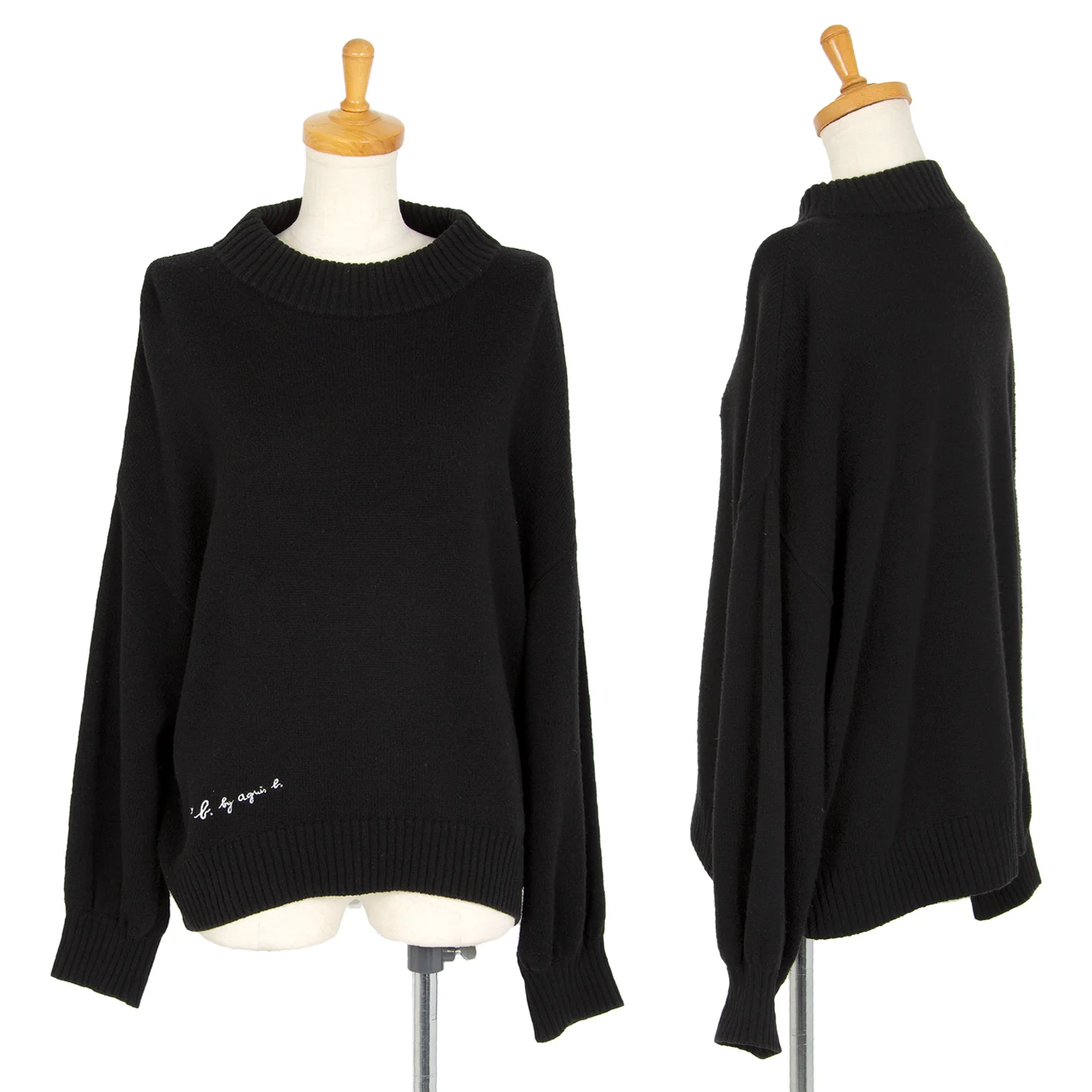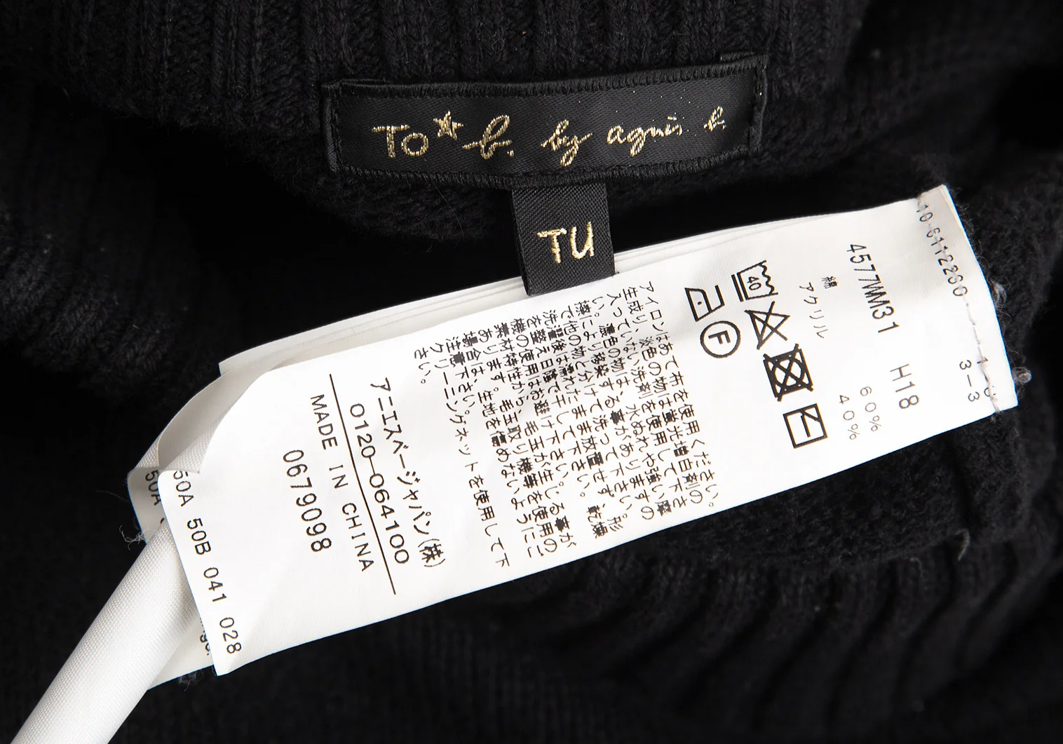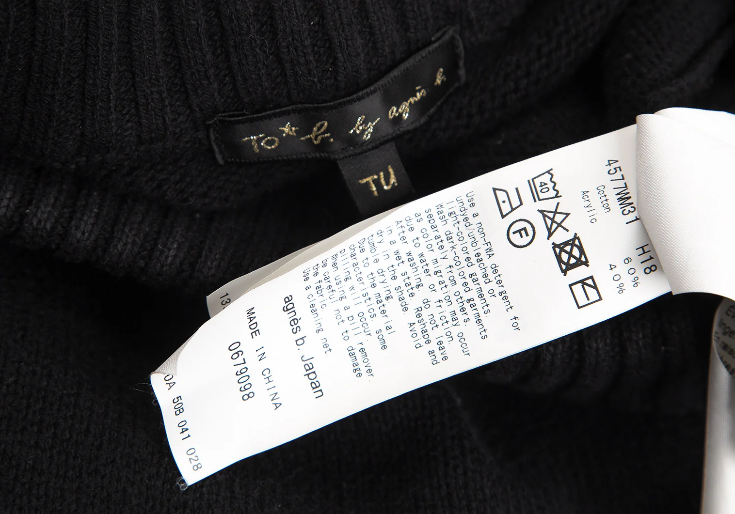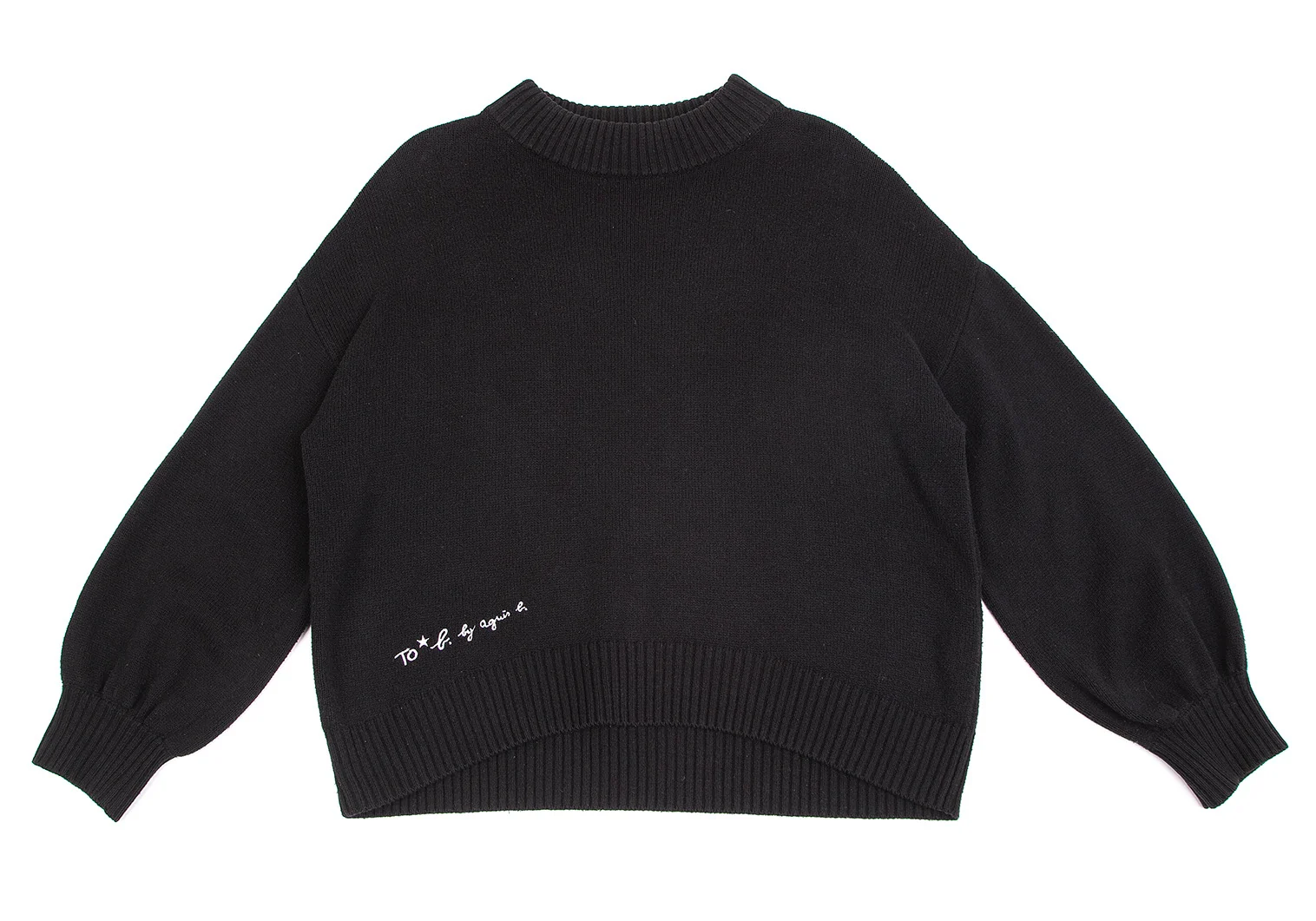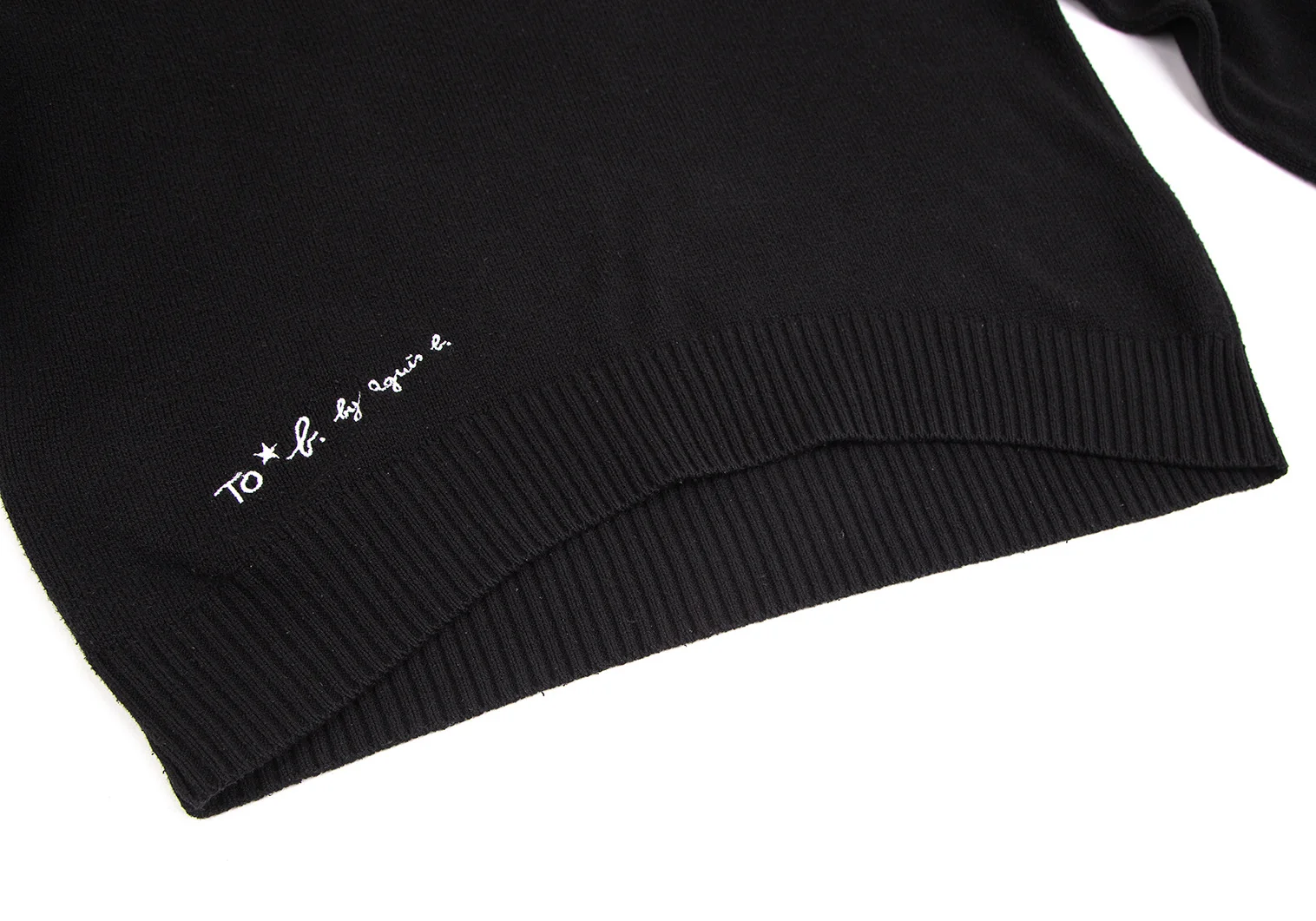 トゥービー バイ アニエスベーTo b.by agnes b. コットンアクリルロゴ刺繍ドルマンニットセーター 黒TU