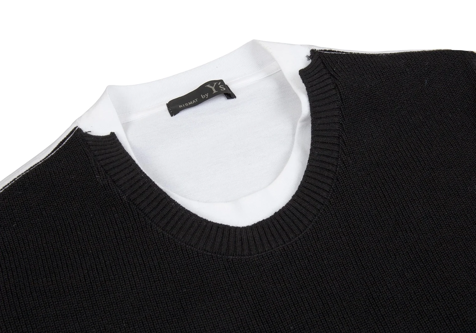 リスマット バイ ワイズRISMAT by Y's フロントニットレイヤードデザインビッグシルエットTシャツ 白黒2