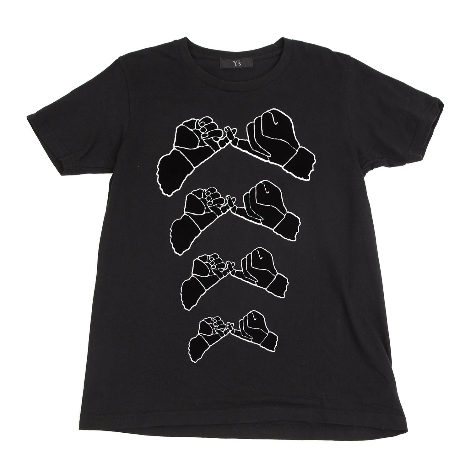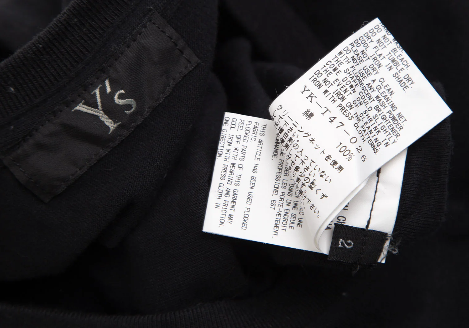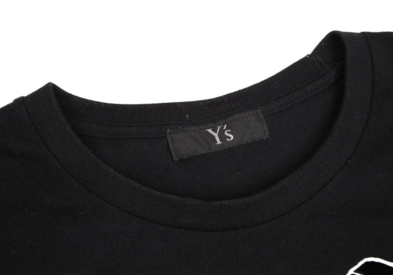 ワイズY's 指切りフロッキープリントTシャツ 黒2