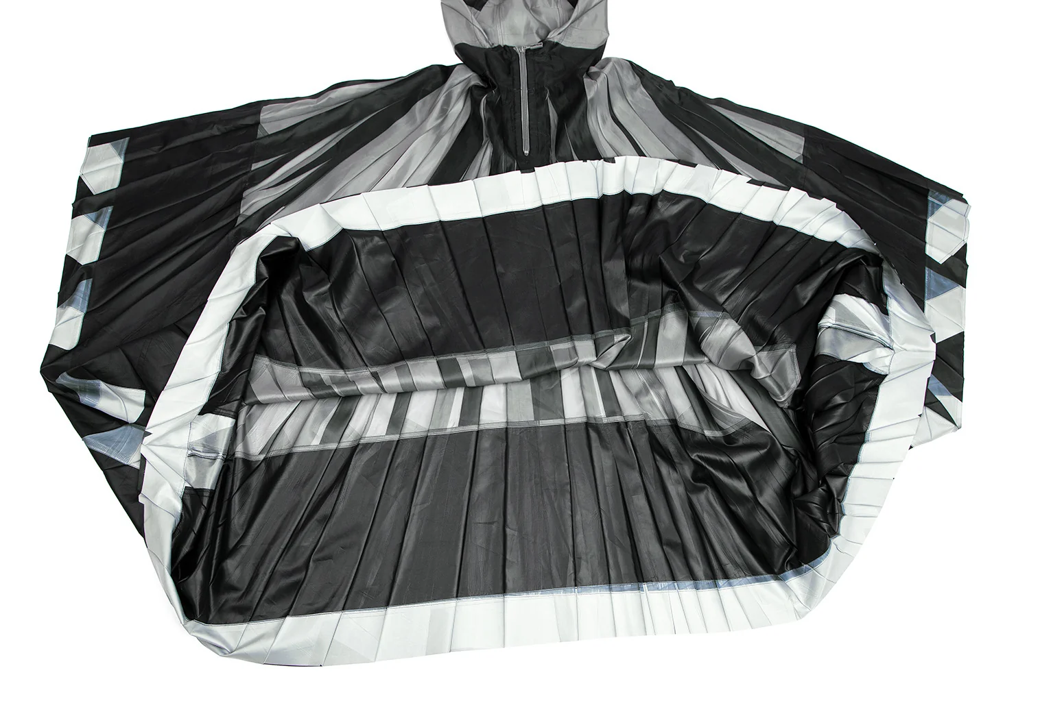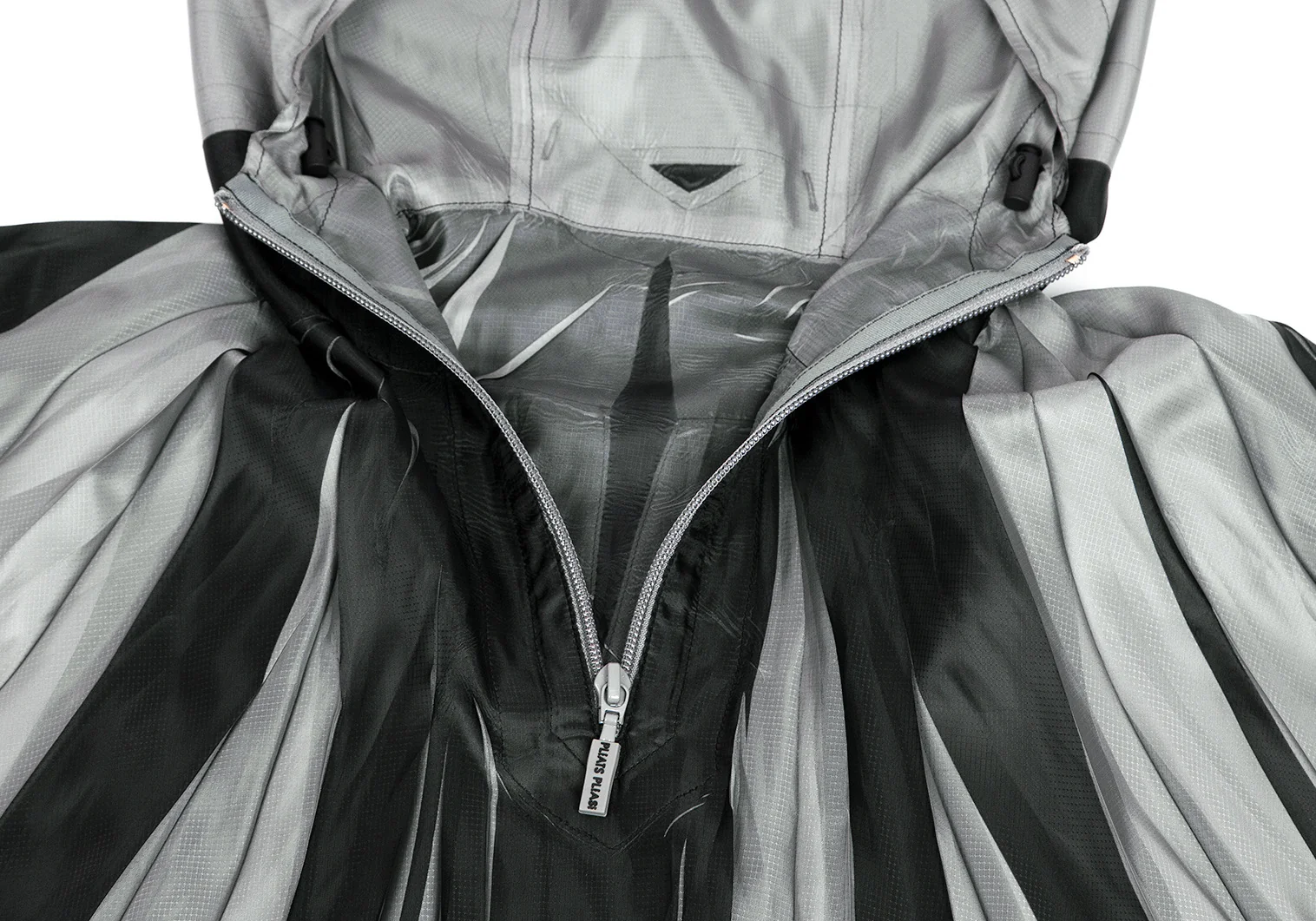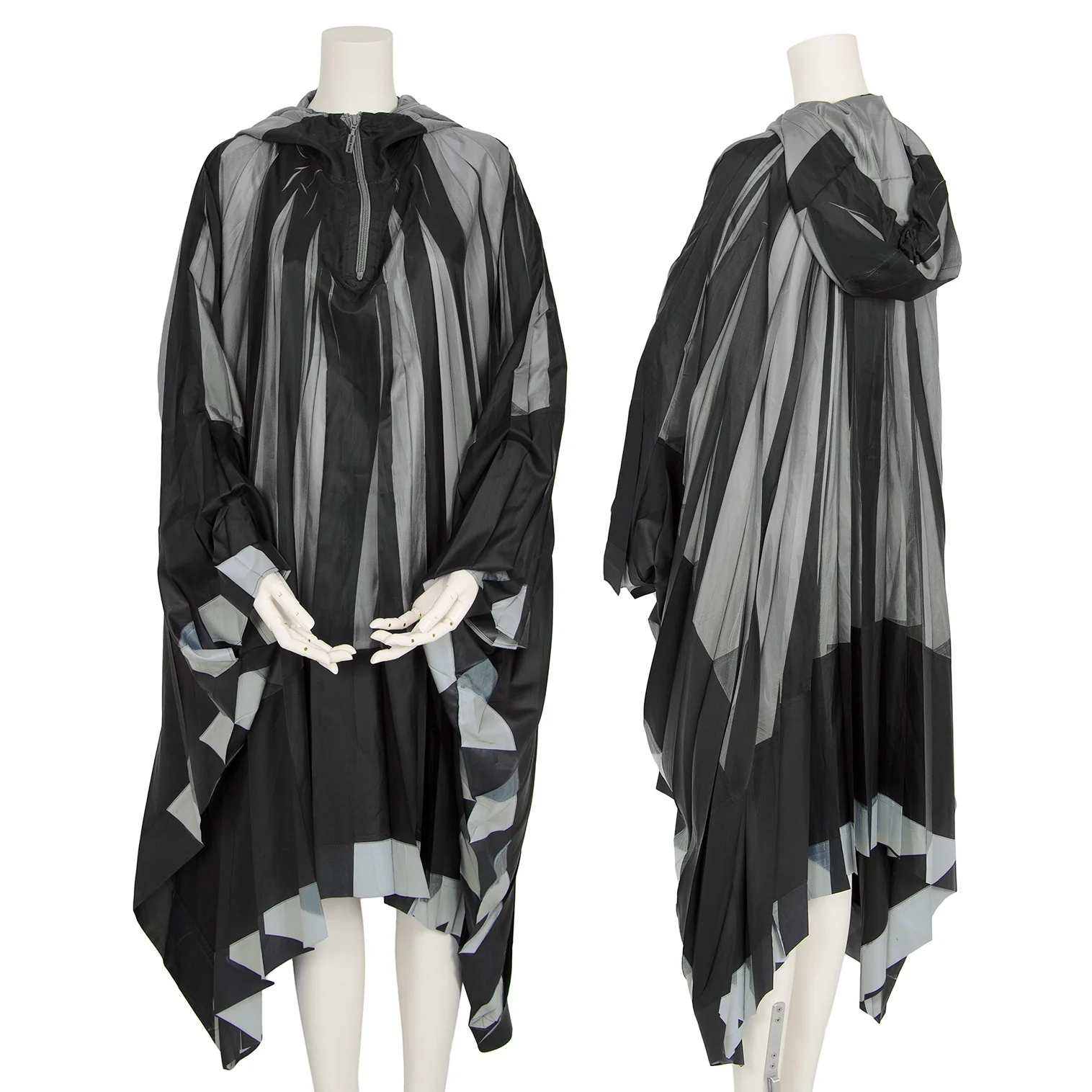 プリーツプリーズPLEATS PLEASE ルーズシルエットハーフジップフードポンチョ グレー濃淡F