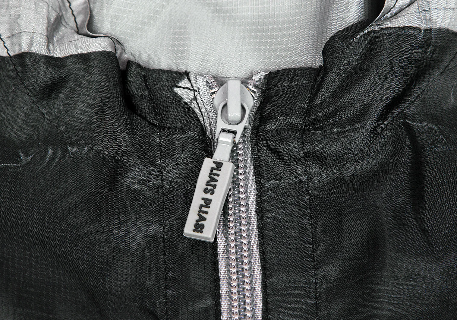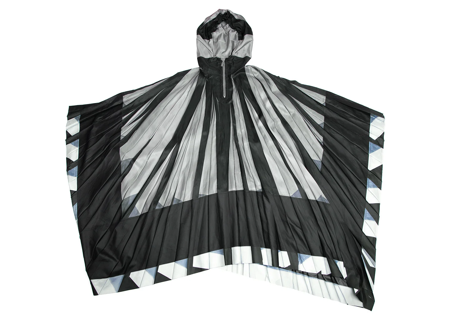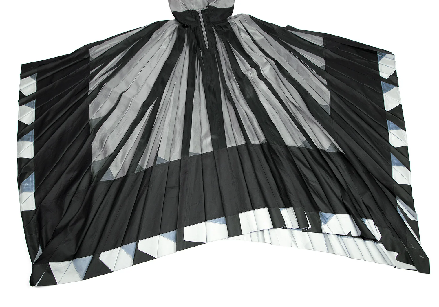 プリーツプリーズPLEATS PLEASE ルーズシルエットハーフジップフードポンチョ グレー濃淡F