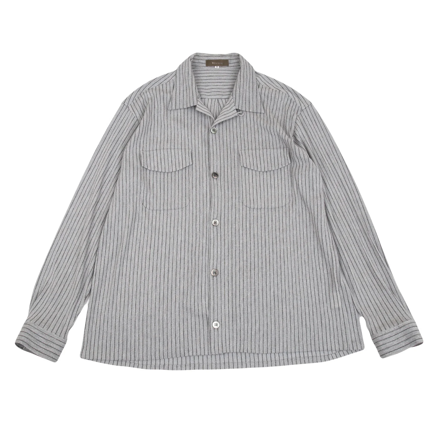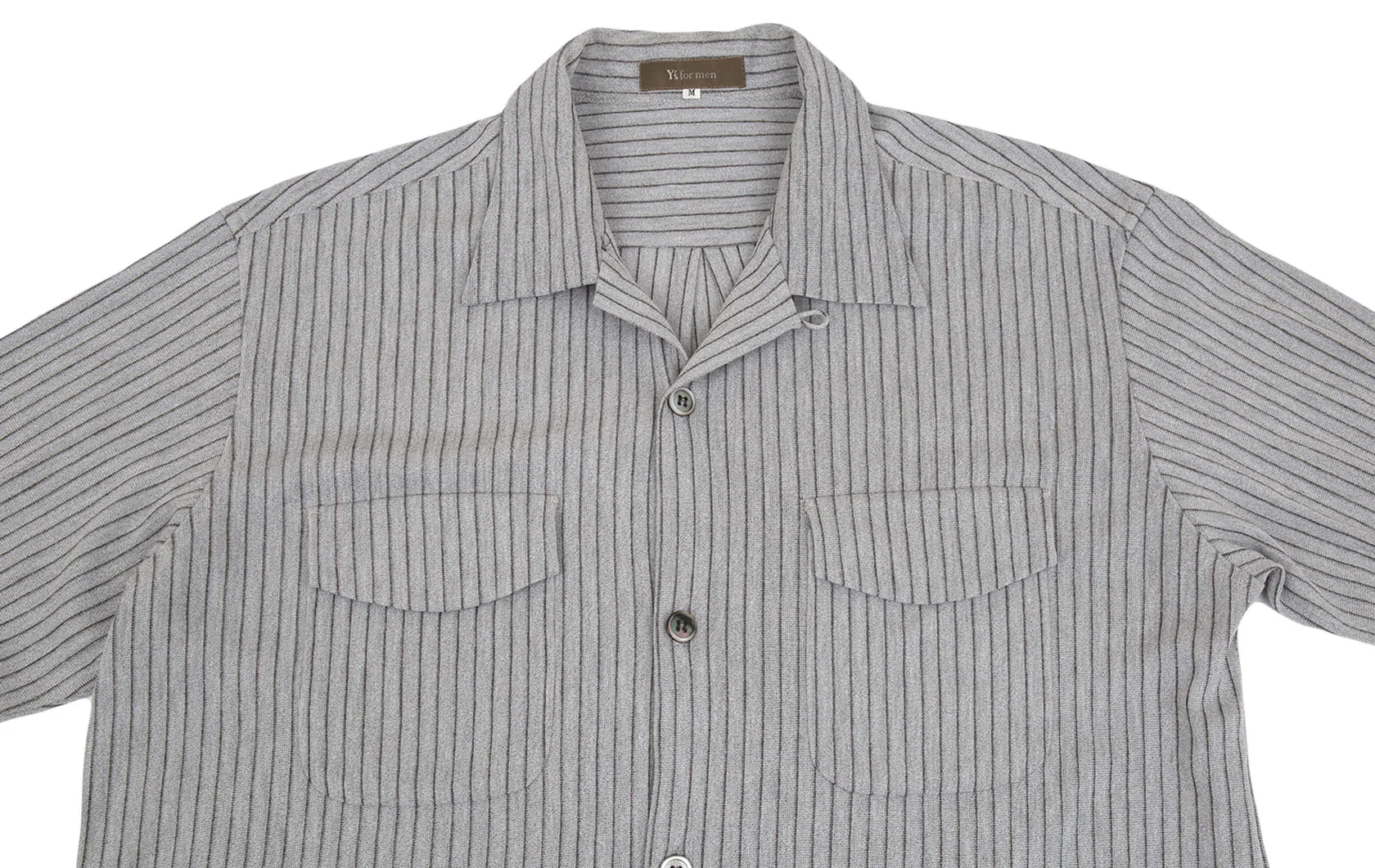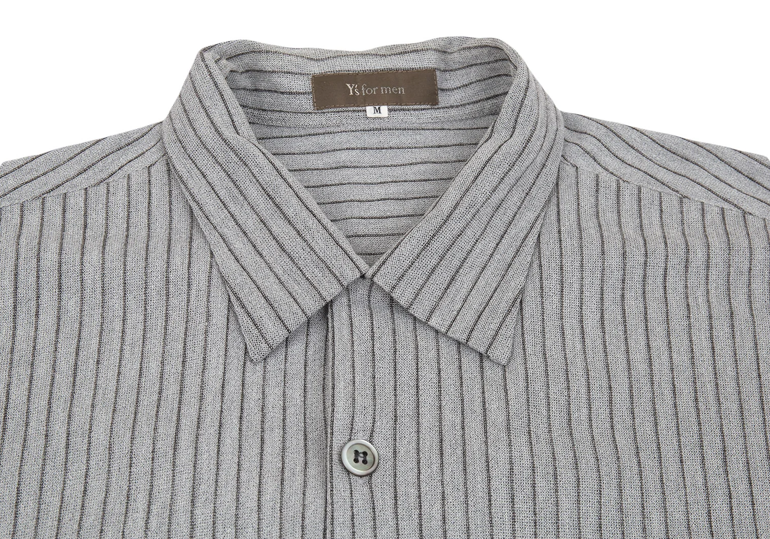ワイズフォーメンY's for men レーヨンポリストライプオープンカラーシャツ ライトグレーM