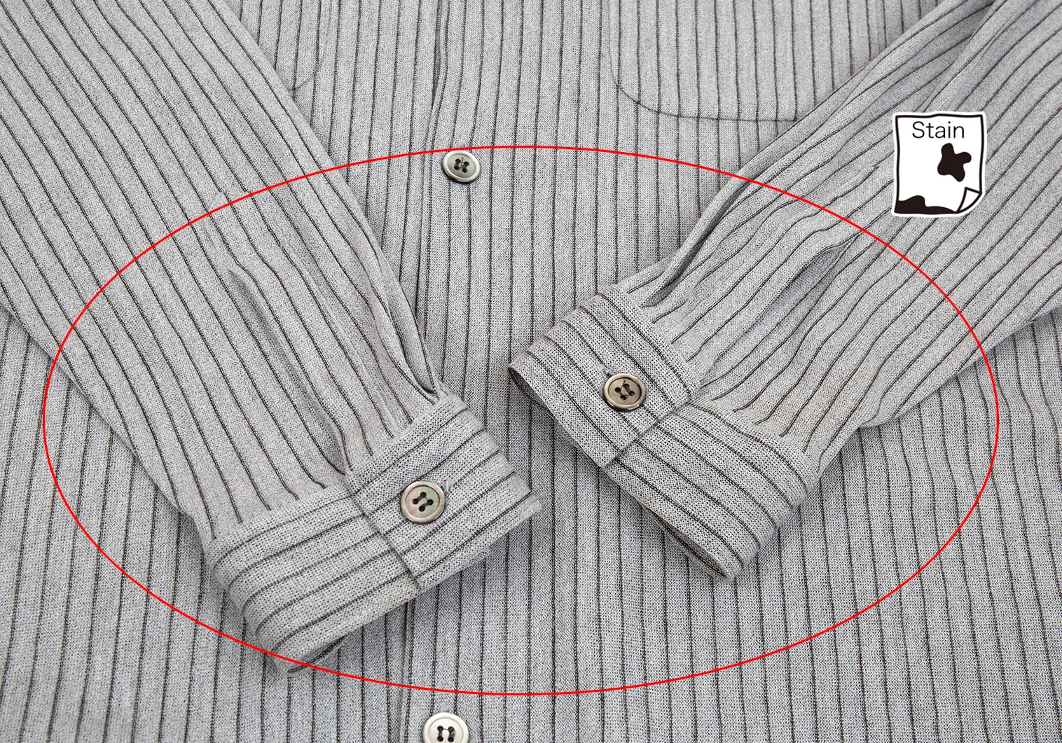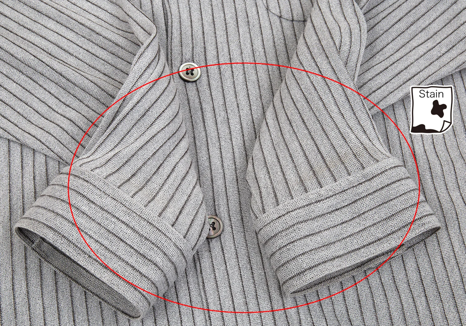 若干の透け感があります。襟裏・袖先・袖裏に汚れがあります(写真参照)。その他に目立ったシミ、汚れ、ほつれ等はありません。クリーニング済み