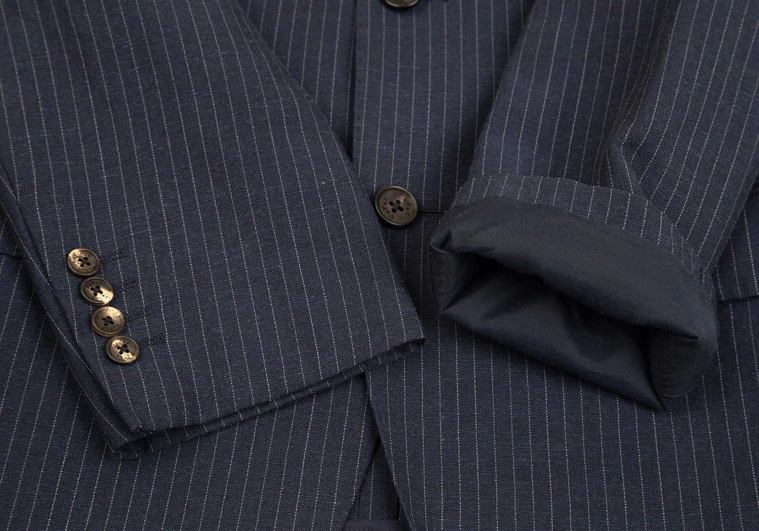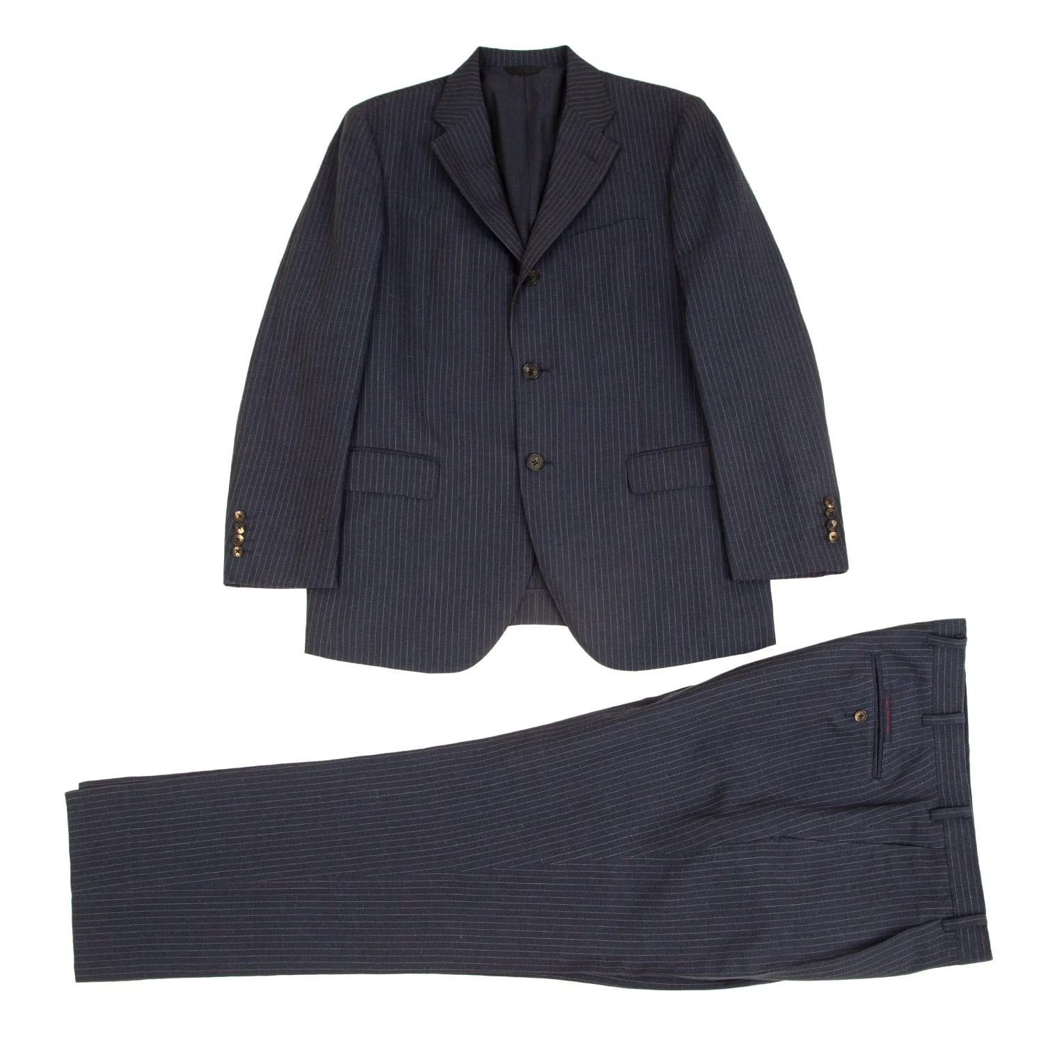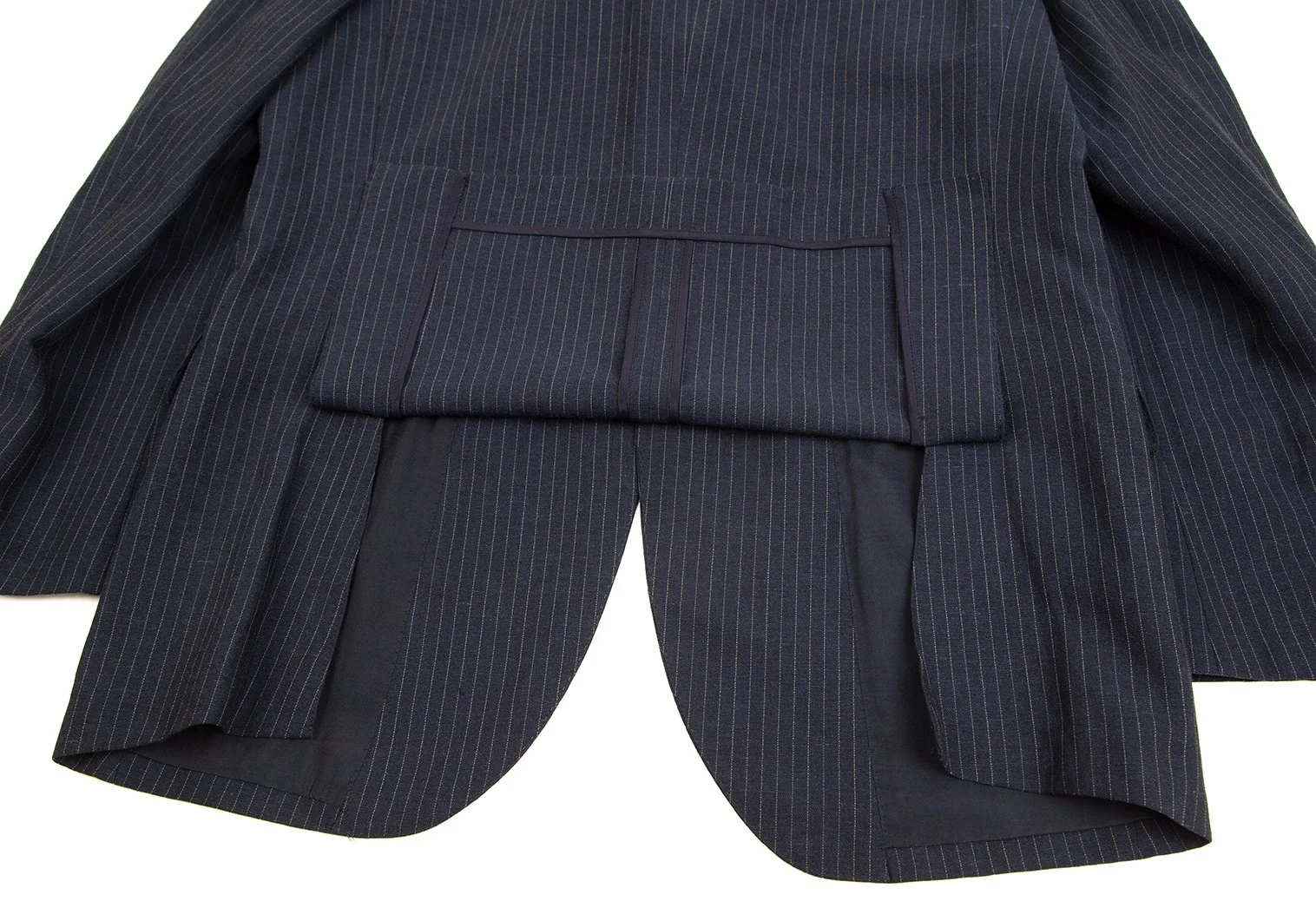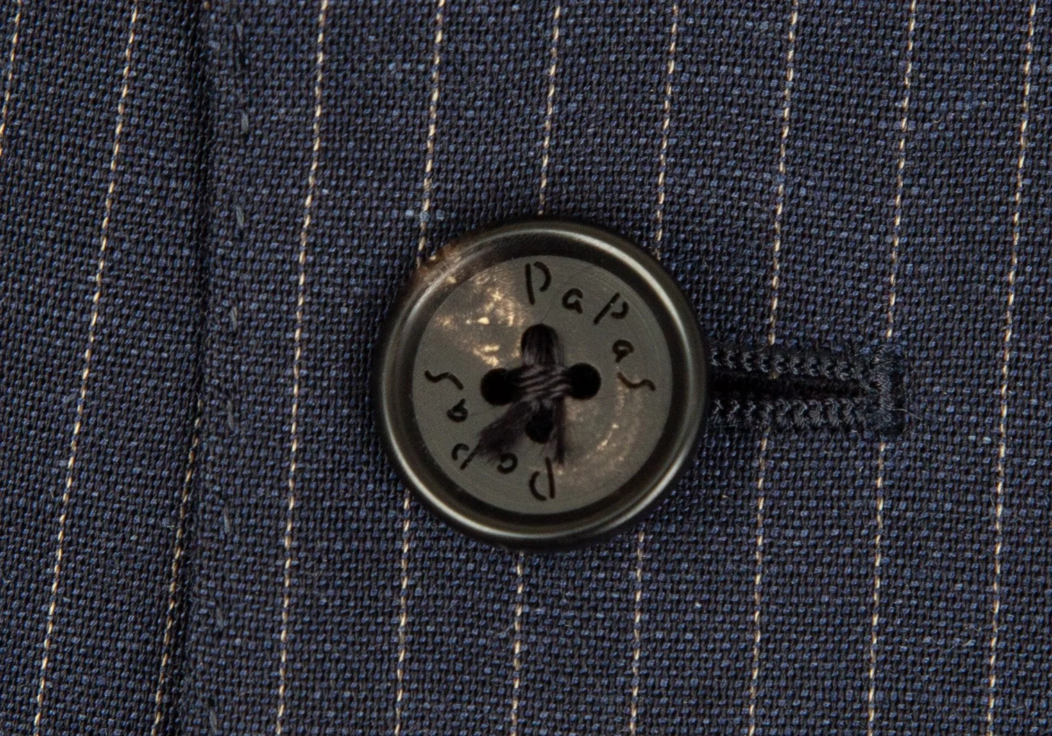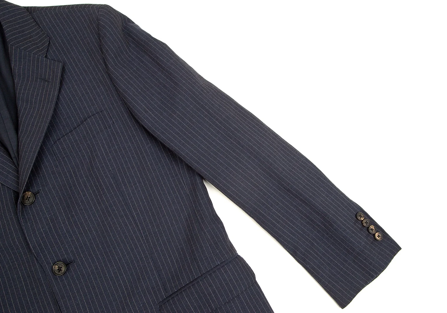 パパスPapas テッスーティディソンドリオESSUTI DI SONDRIO社ファブリックストライプ3Bジャケット 紺48M