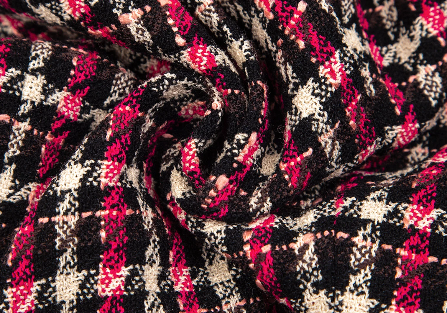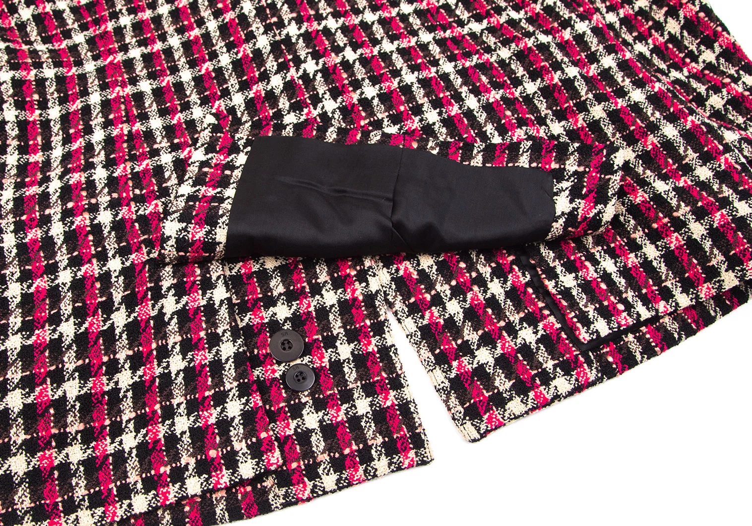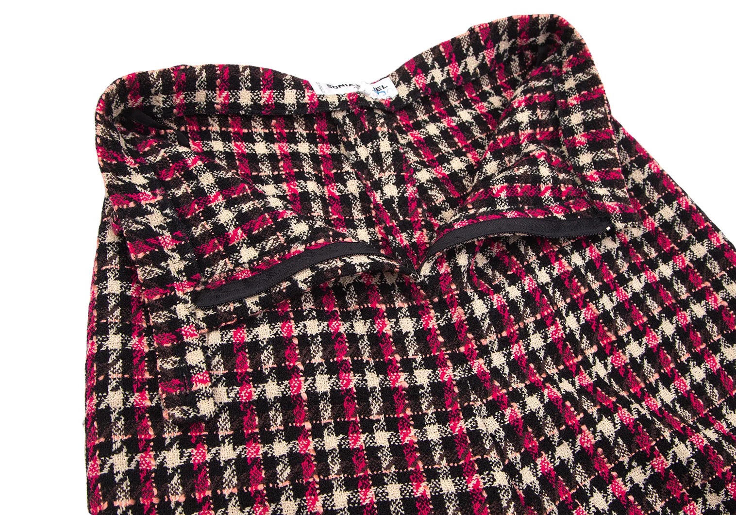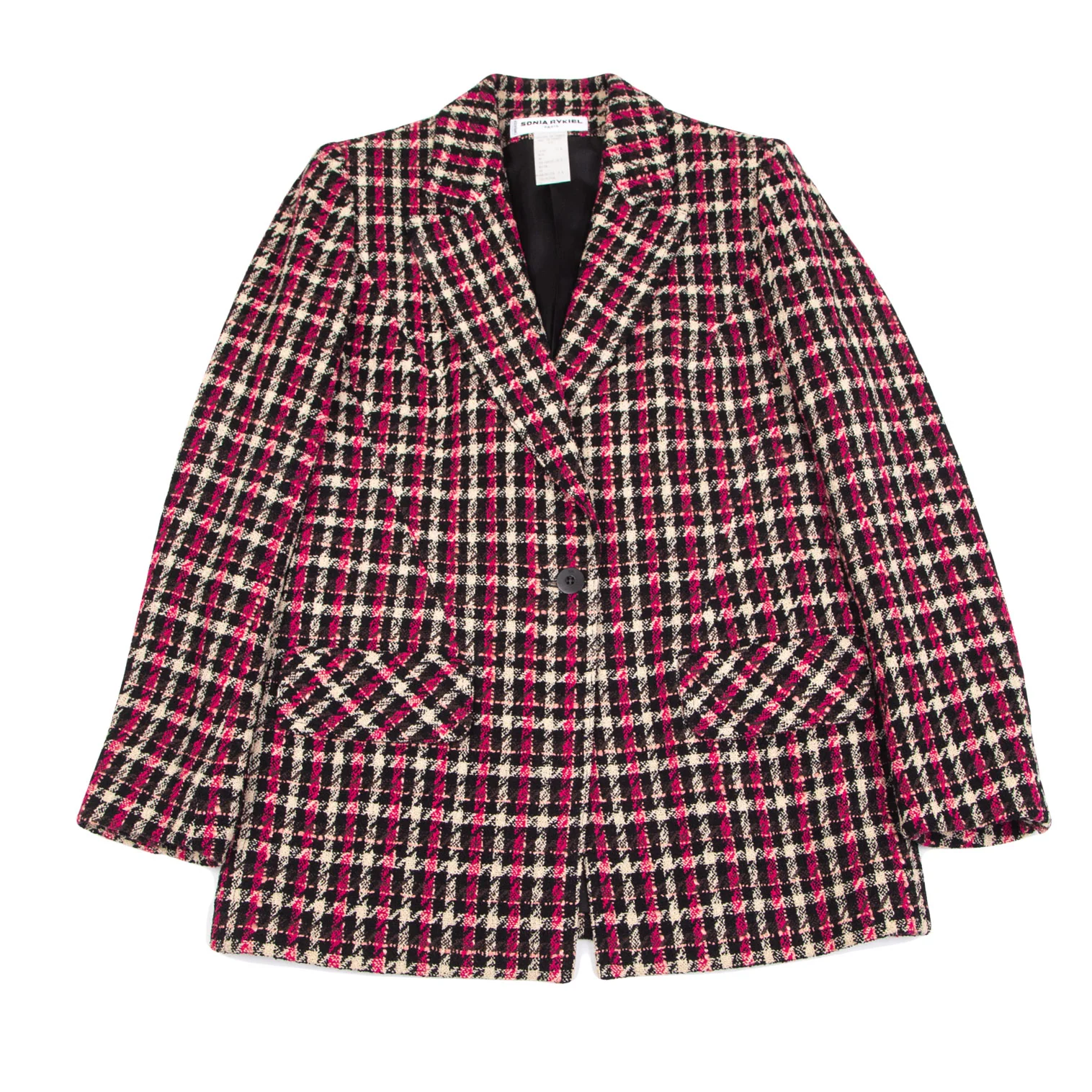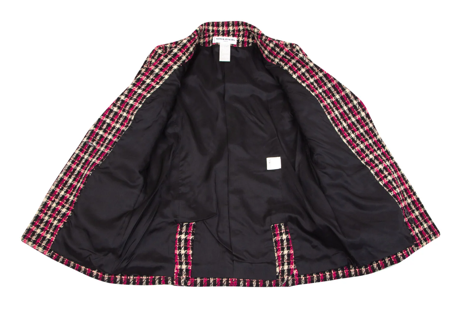 ソニアリキエルSONIA RYKIEL ウールナイロンツイードチェック1Bセットアップスーツ 黒オフピンク40・38