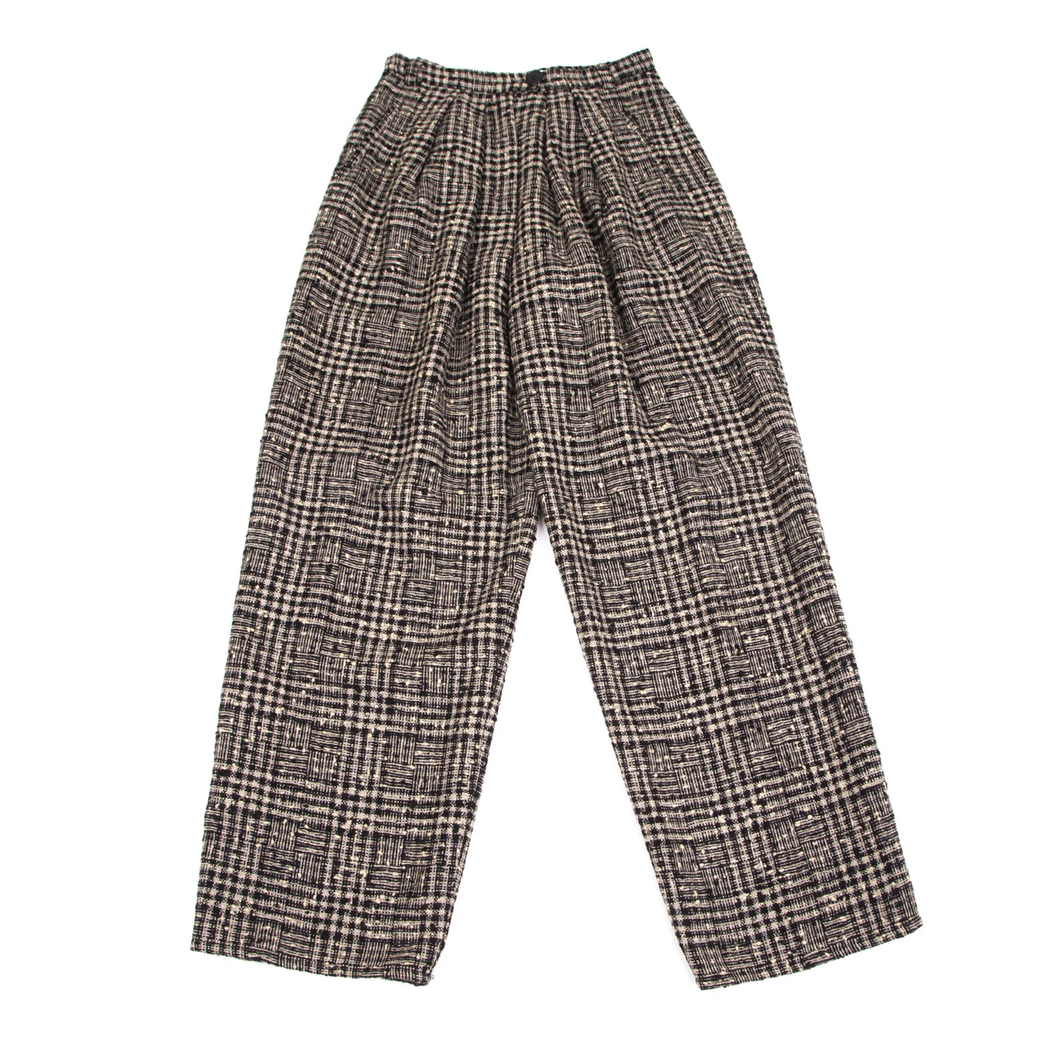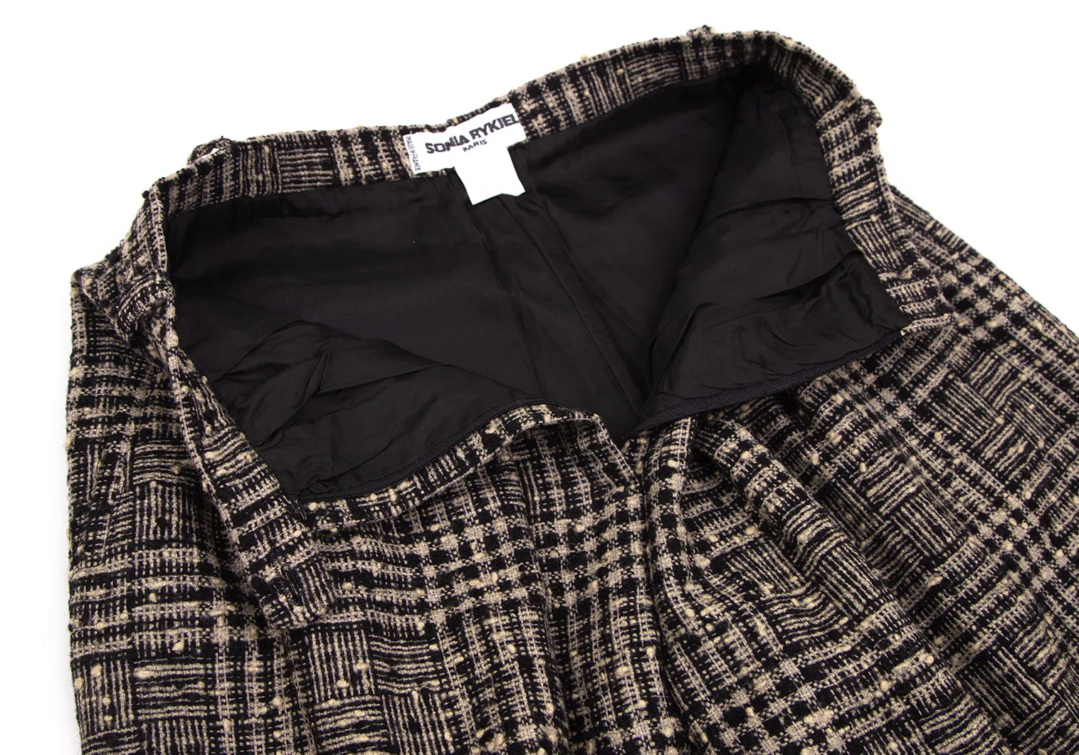 ソニアリキエルSONIA RYKIEL ウールナイロンツイードネップチェックパンツ 黒グレー38
