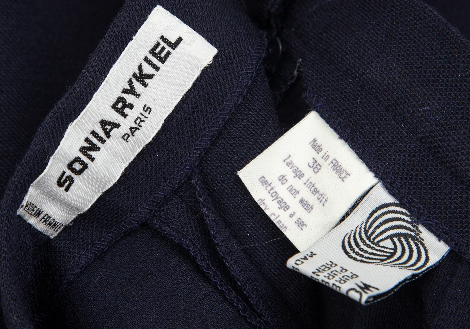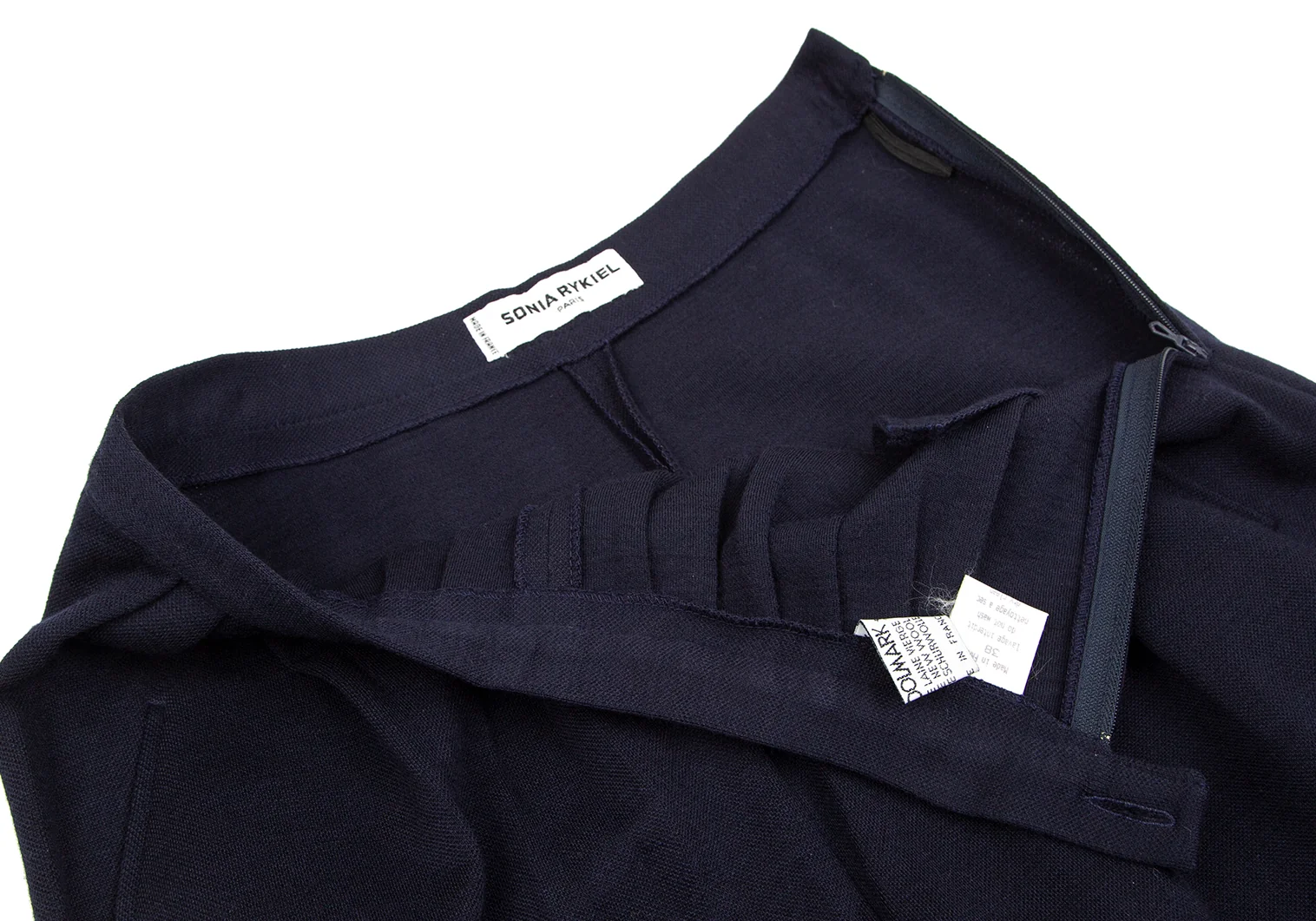 ソニアリキエルSONIA RYKIEL ウールロゴ金ボタンサイドジップテーパードパンツ 紺38