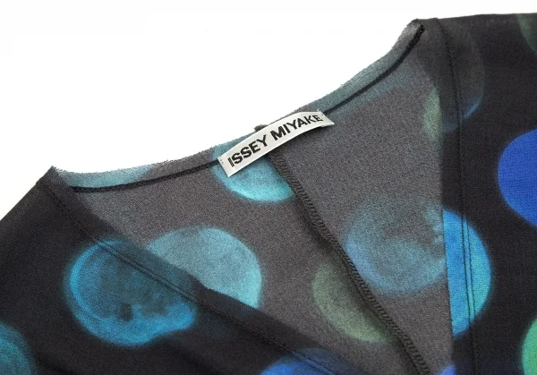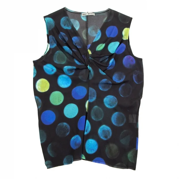 イッセイミヤケISSEY MIYAKE ねじりデザインドットシースルーVネックタンクトップ チャコール水色2