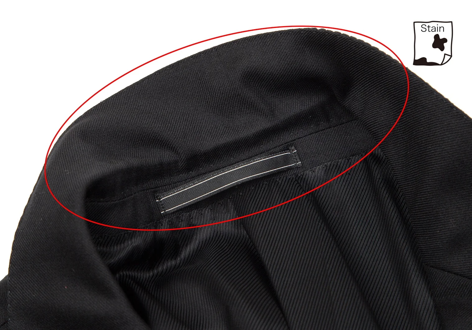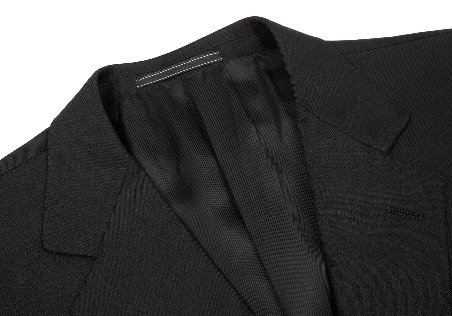 肩パッドあり。首裏に薄汚れ、袖裏にシミがあります。胸ポケットタグにネーム印字、タグにネーム刺繍があります(画像参照)。目立ったシミ、汚れ、ほつれ等なくいい状態です。クリーニング済み