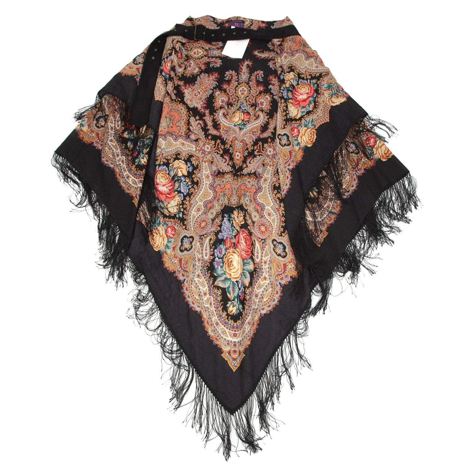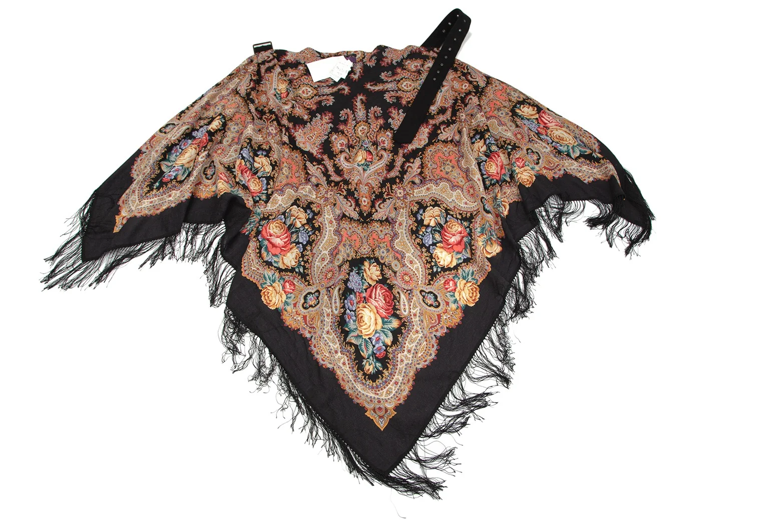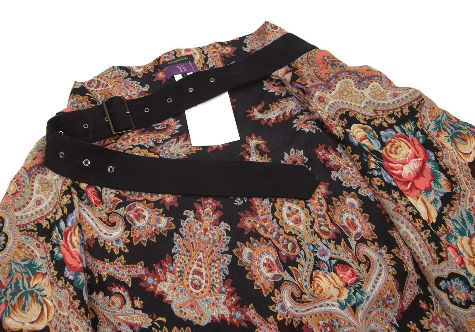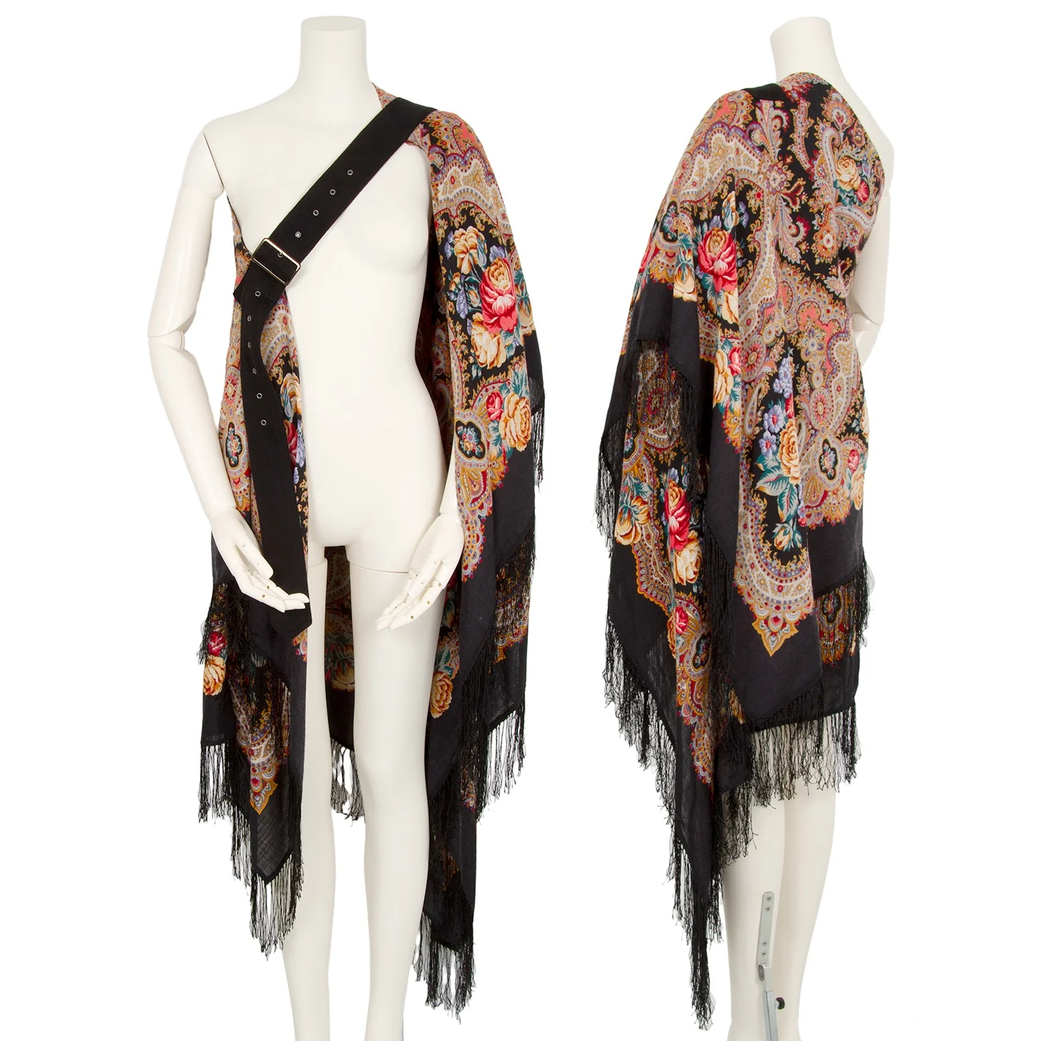 タケシコウサカバイ ワイズ ピンクレーベルTAKESHI KOSAKA by Y's Pink Label フラワープリントフリンジスカーフショール 黒マルチ2