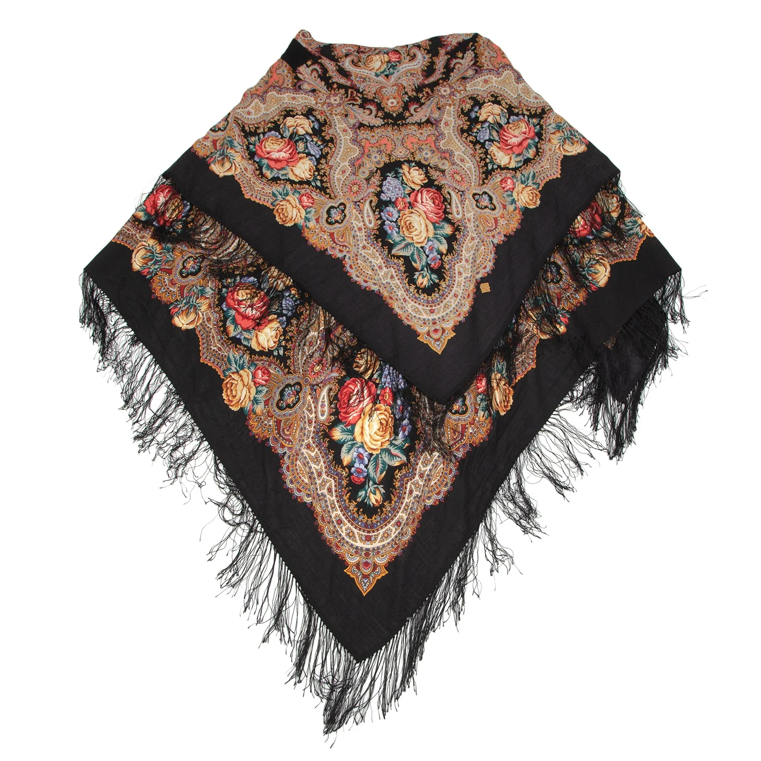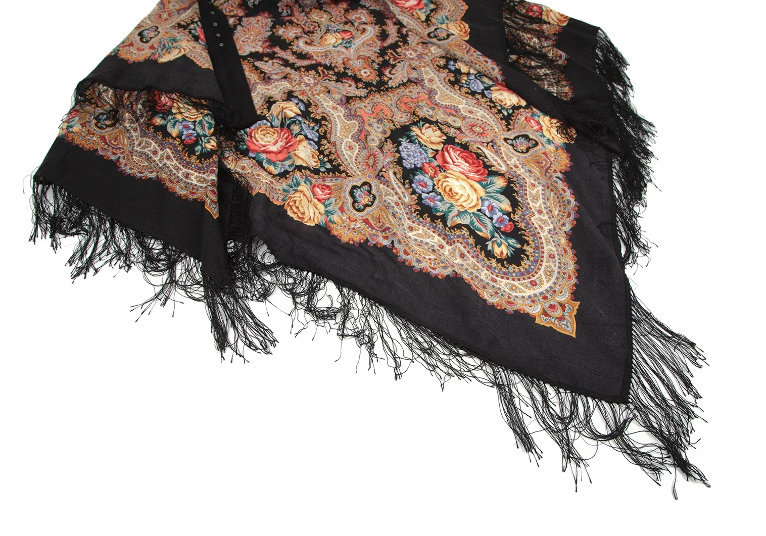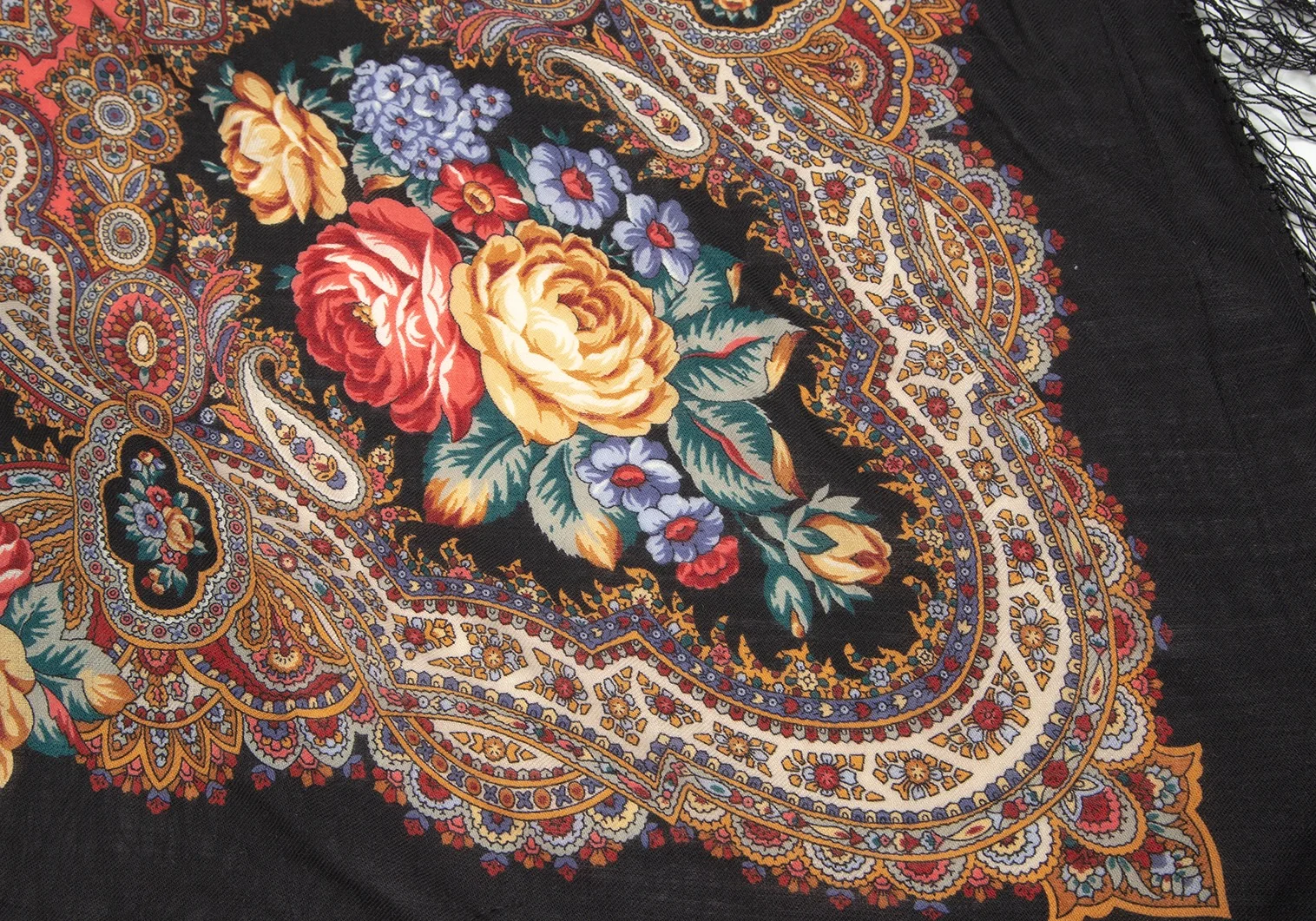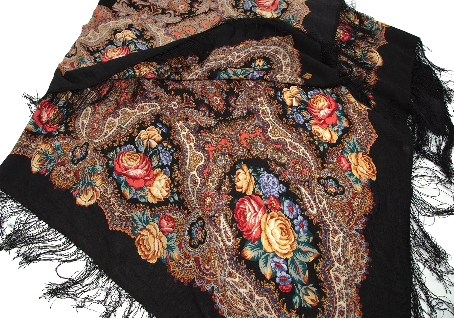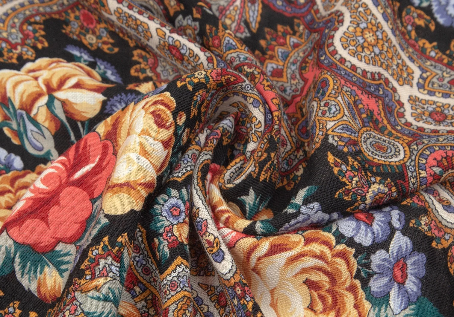 タケシコウサカバイ ワイズ ピンクレーベルTAKESHI KOSAKA by Y's Pink Label フラワープリントフリンジスカーフショール 黒マルチ2