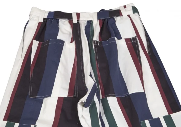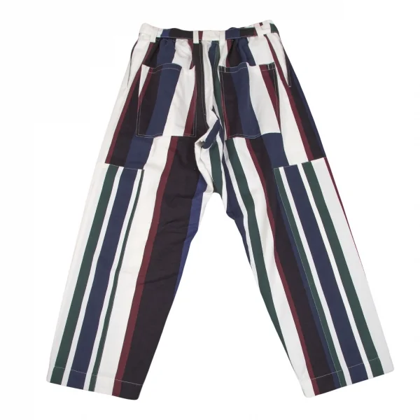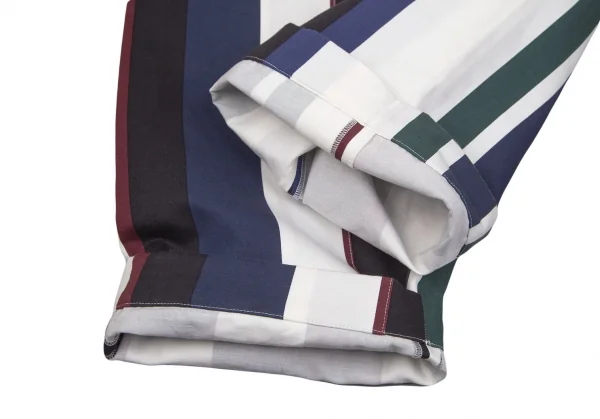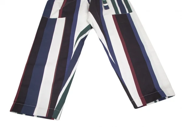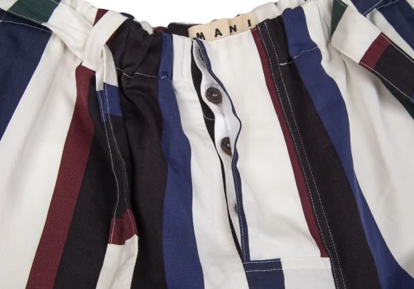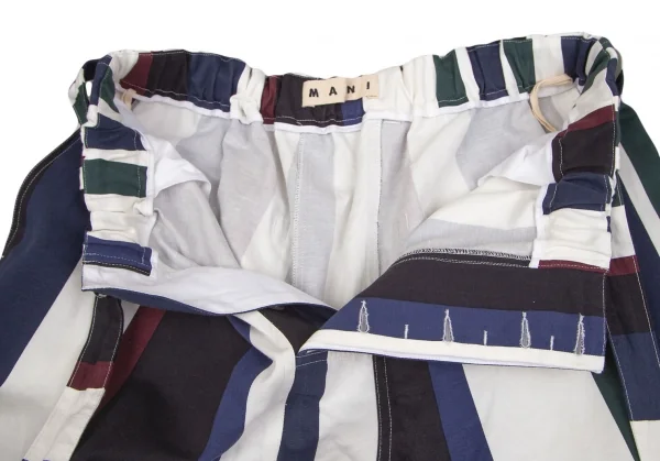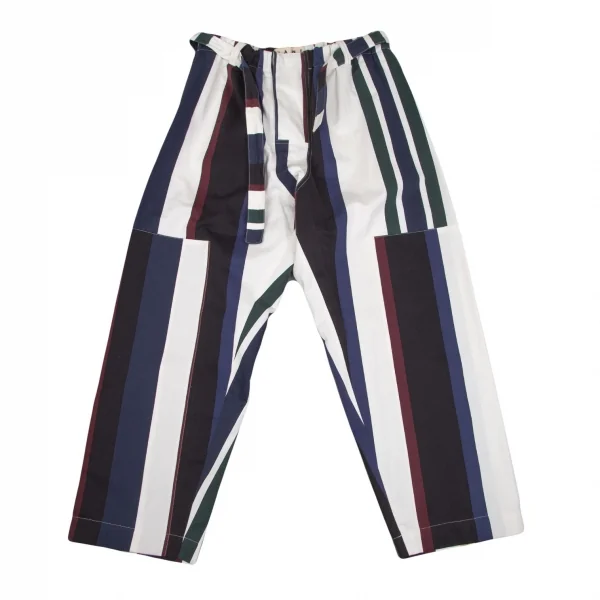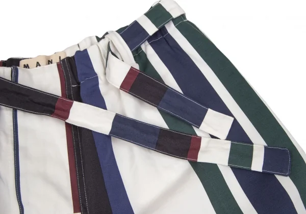 マルニMARNI コットンストライプウエストベルトパンツ 白紺緑46