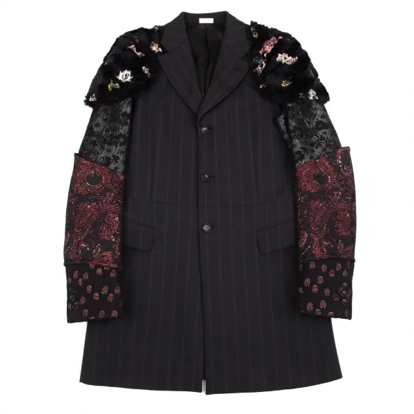 コムデギャルソン オムプリュスCOMME des GARCONS HOMME PLUS 袖ジャガード切替平和の鎧ジャケット 黒M