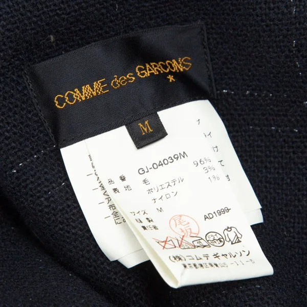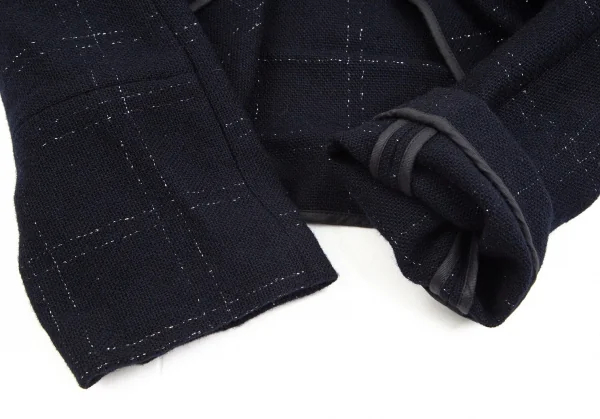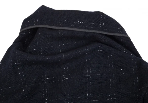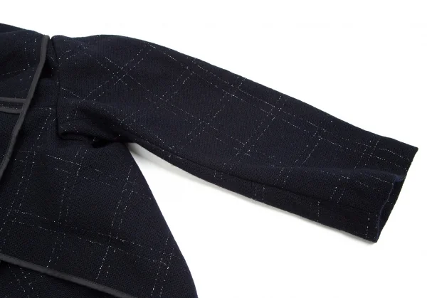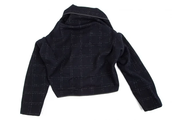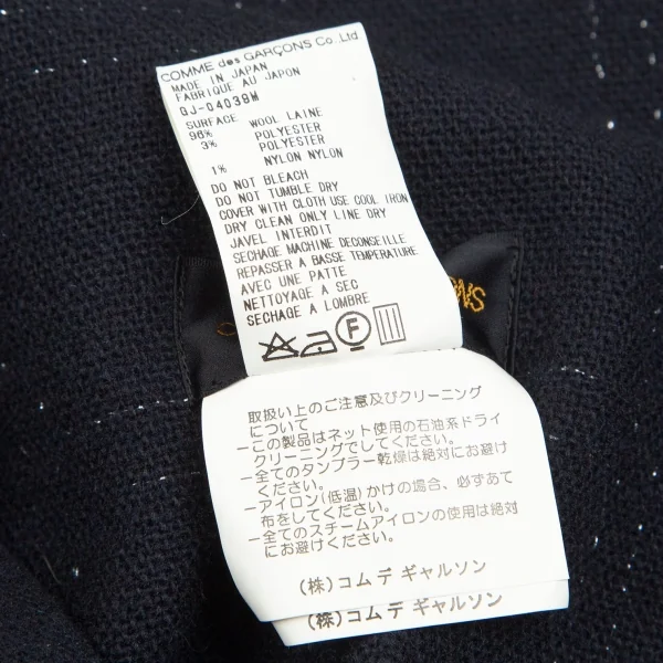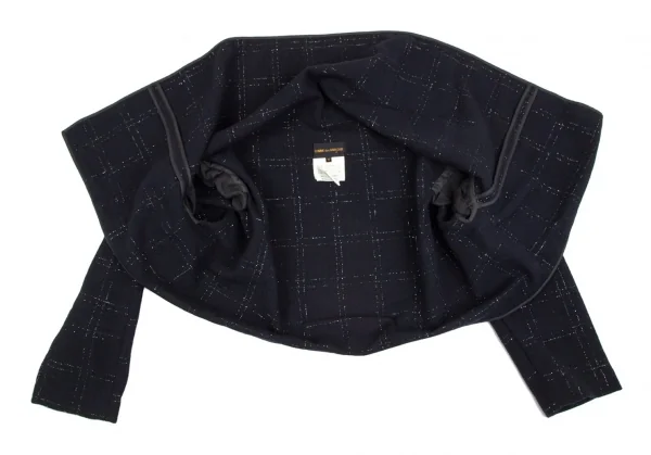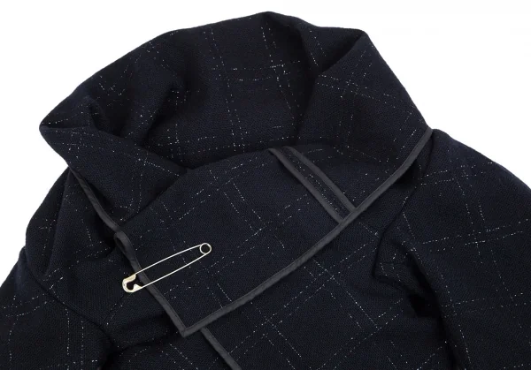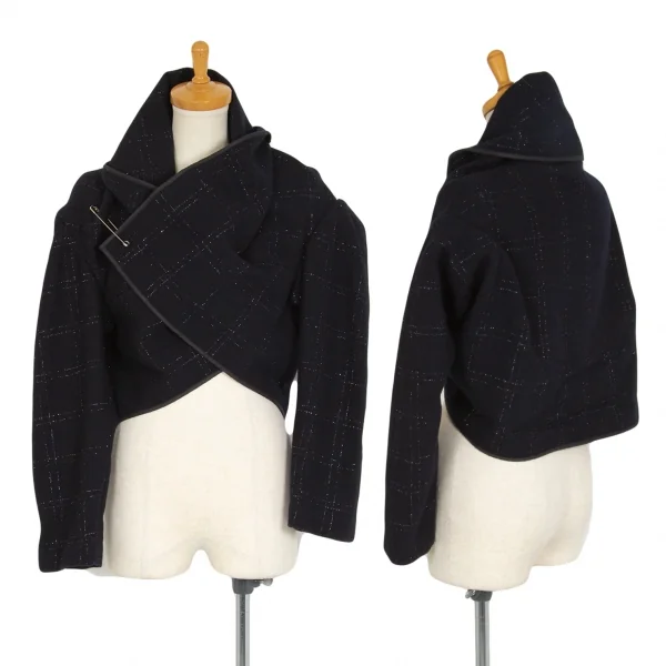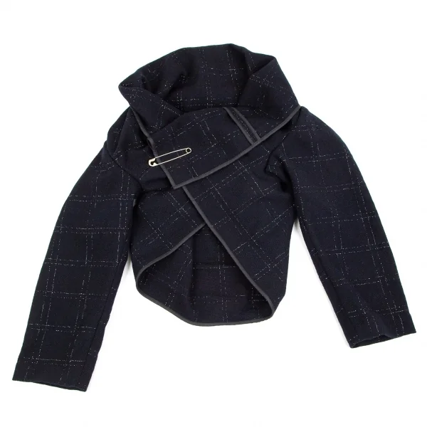 コムデギャルソンCOMME des GARCONSウールラメ格子チェックピン留めラップデザインボレロ 紺M