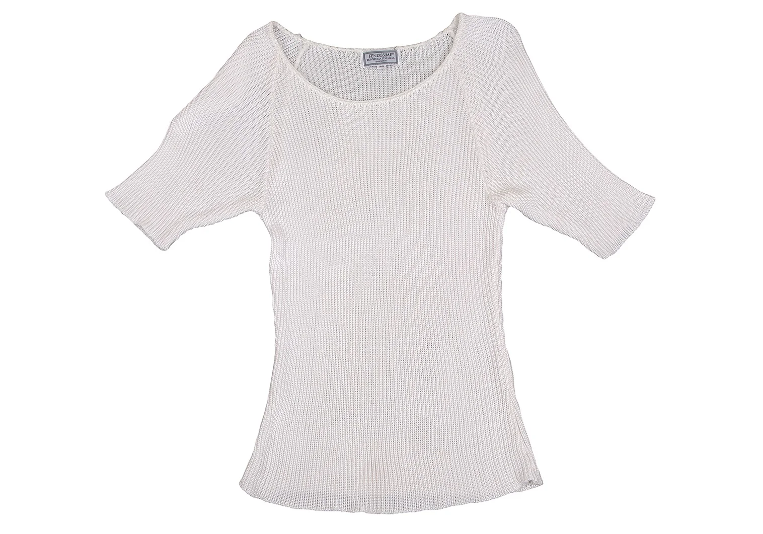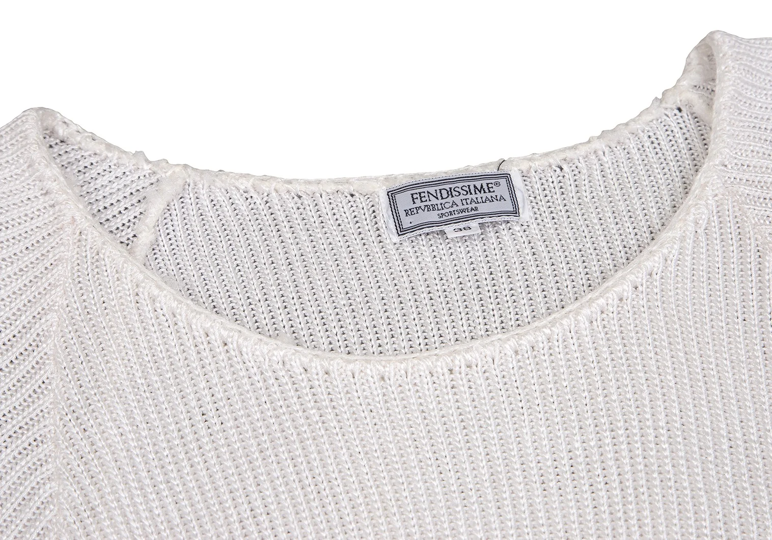 フェンディシメFENDISSIME レーヨンクルーネック半袖ニット 白38