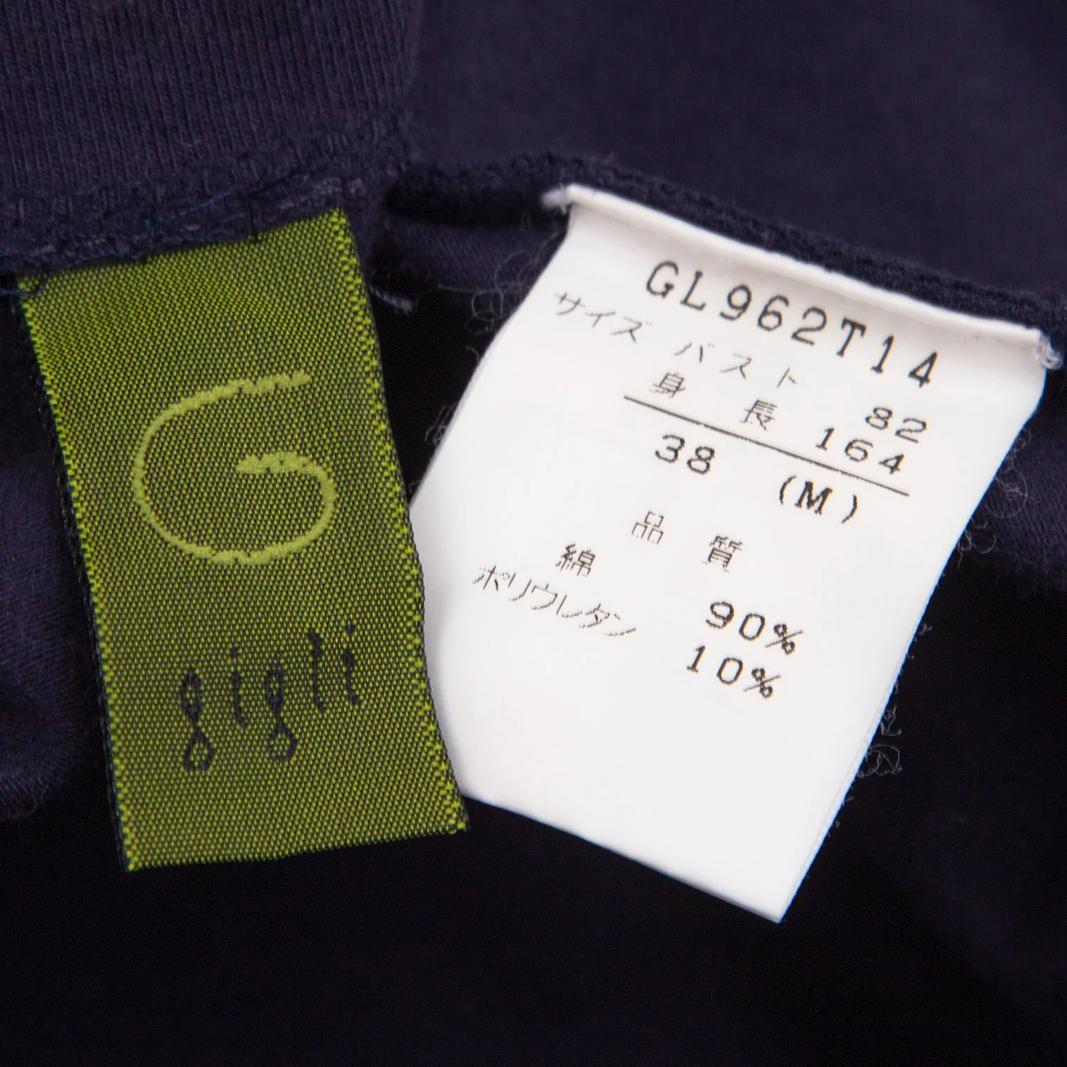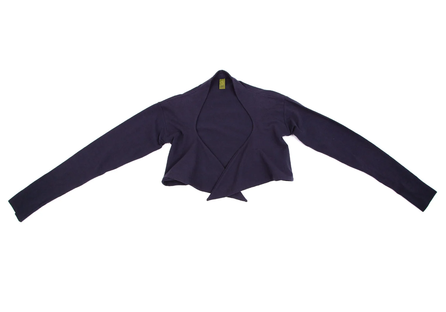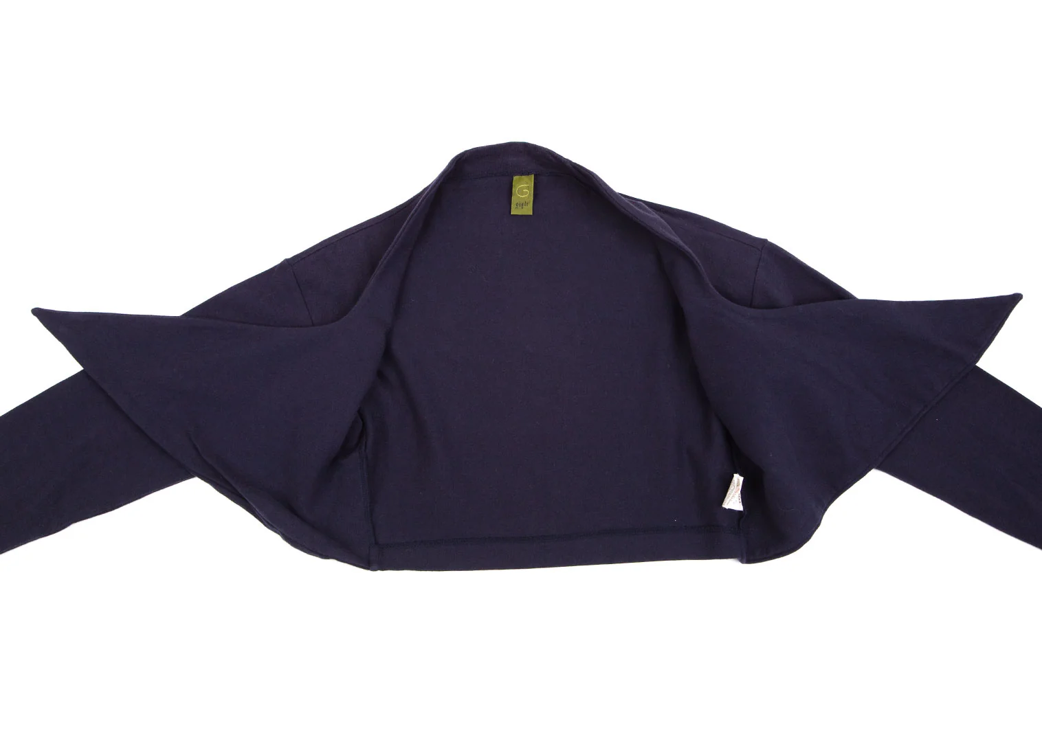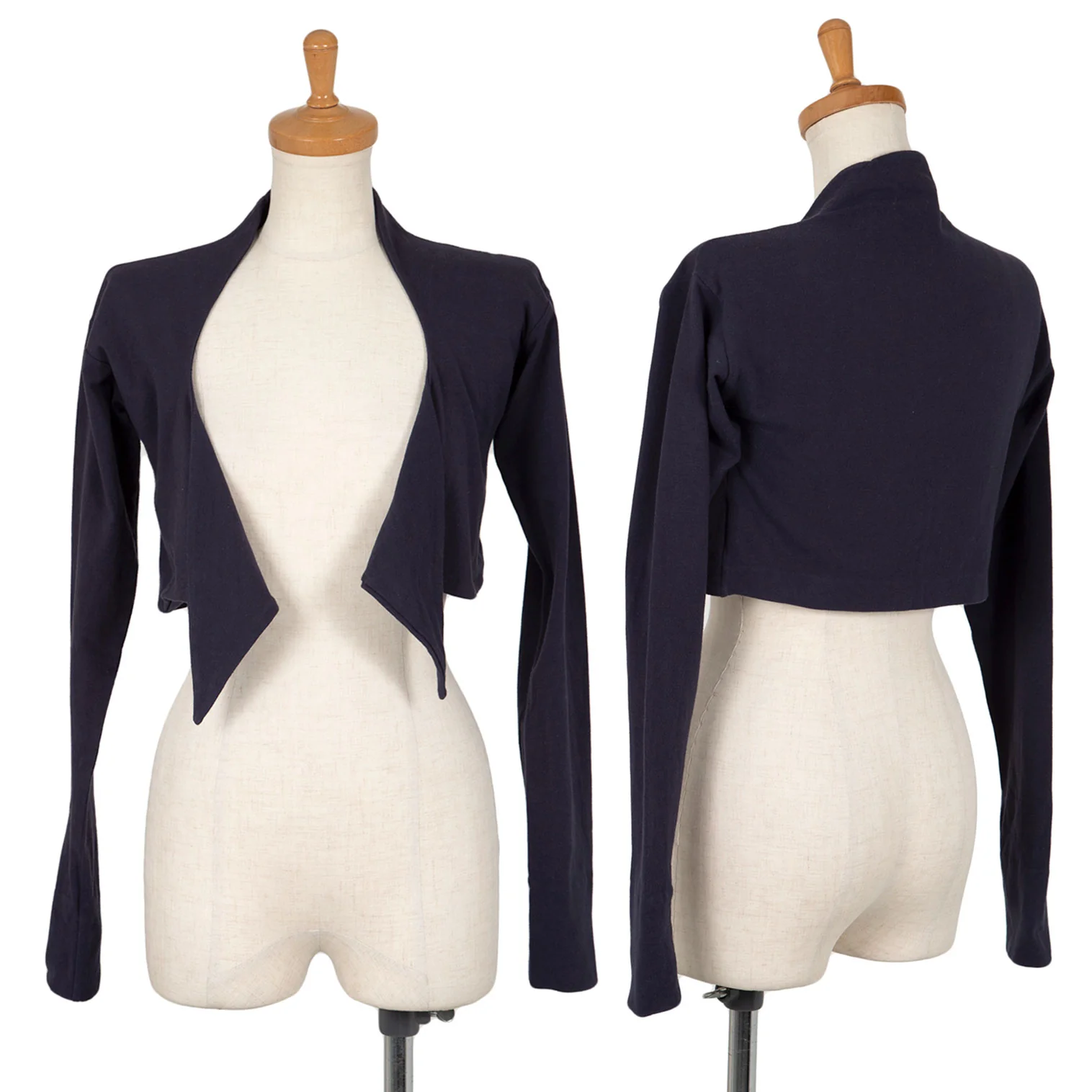 ジジリgigli コットン裾デザインボタンレスストレッチショートカーディガン 紺38(M)
